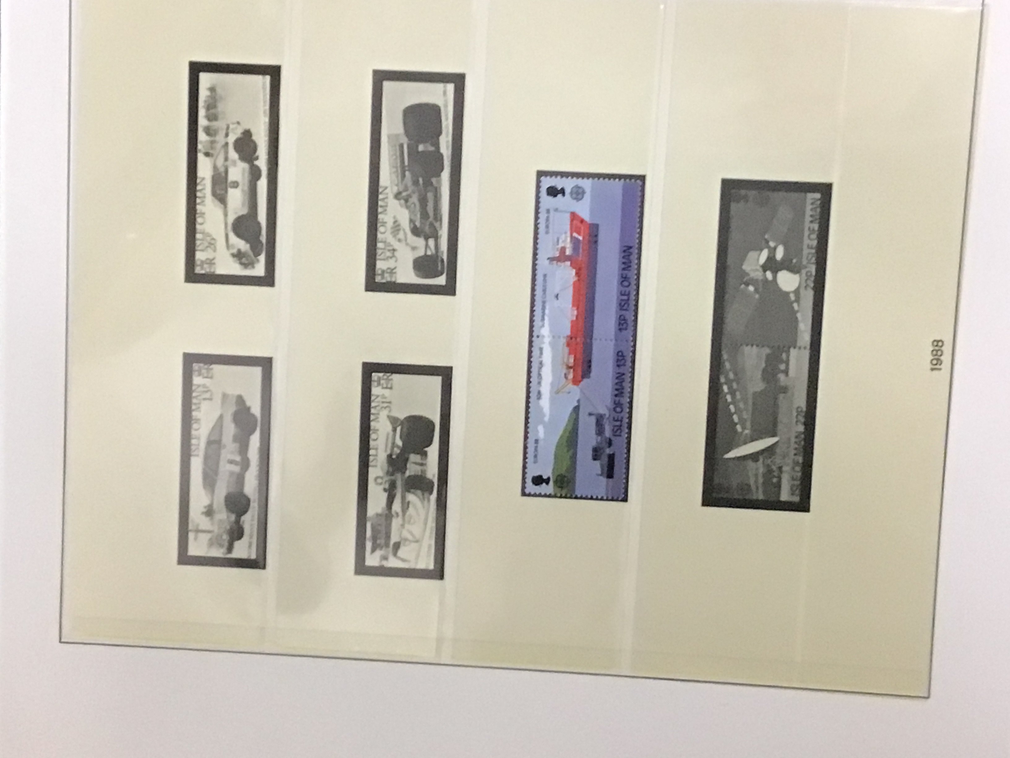 A box containing stamp albums. Including Many unused pictorial stamps Isle of Man Jersey Guernsey and others.