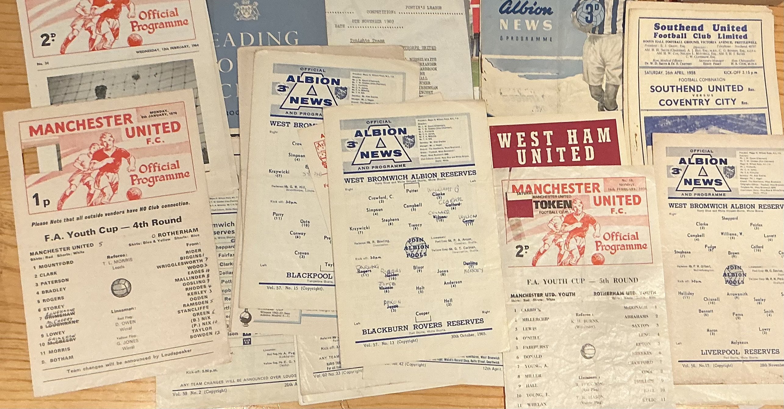 Reserve and Youth Football Programmes: Approximately 190 different programmes from 1948 onwards featuring a variety of clubs. Many youth cup issues(190 aprox)
