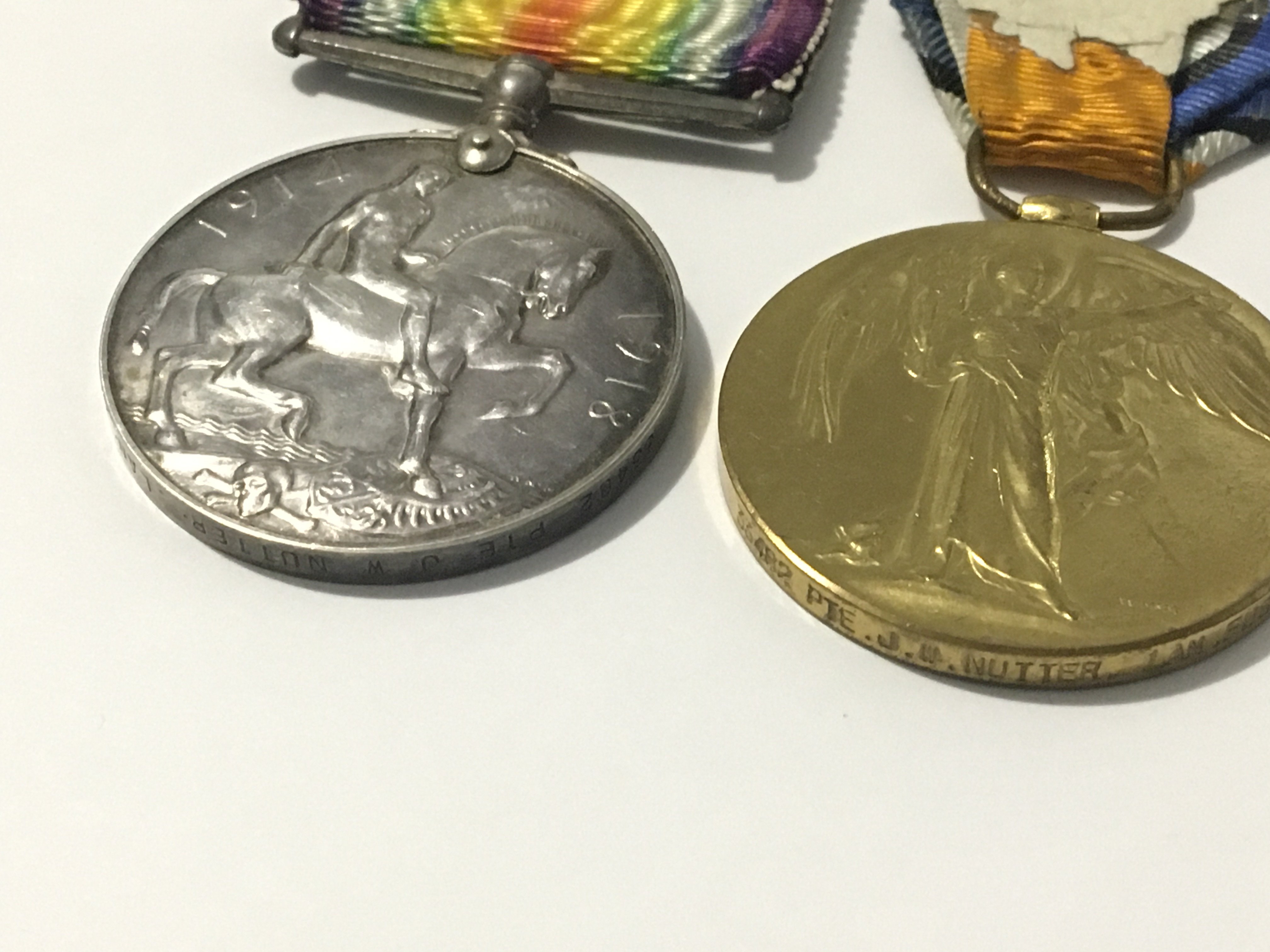Two l World war medals and a bronze memorial plaque death penny an awarded to 33482 PTE J W Nutter LAN FUS.