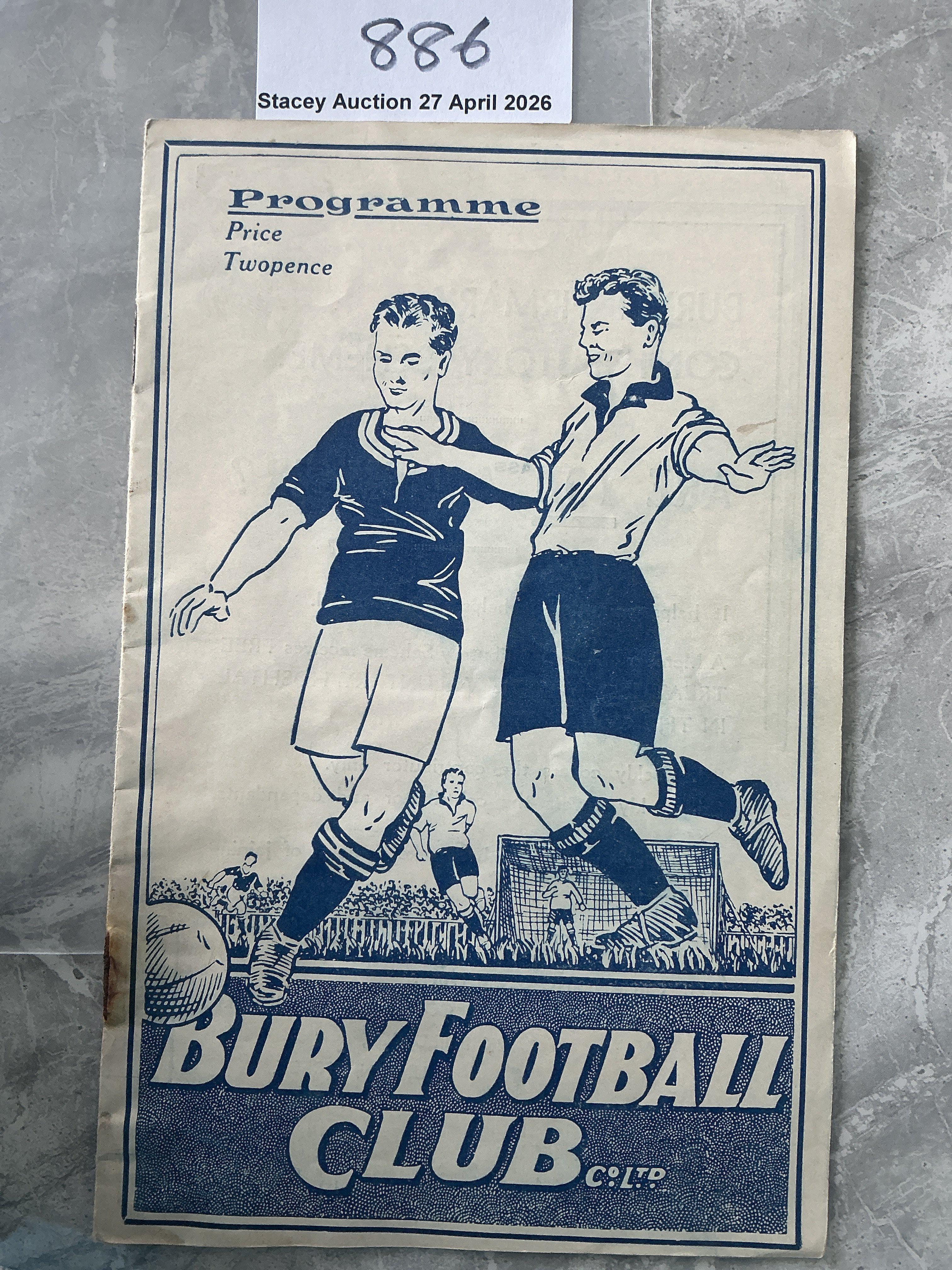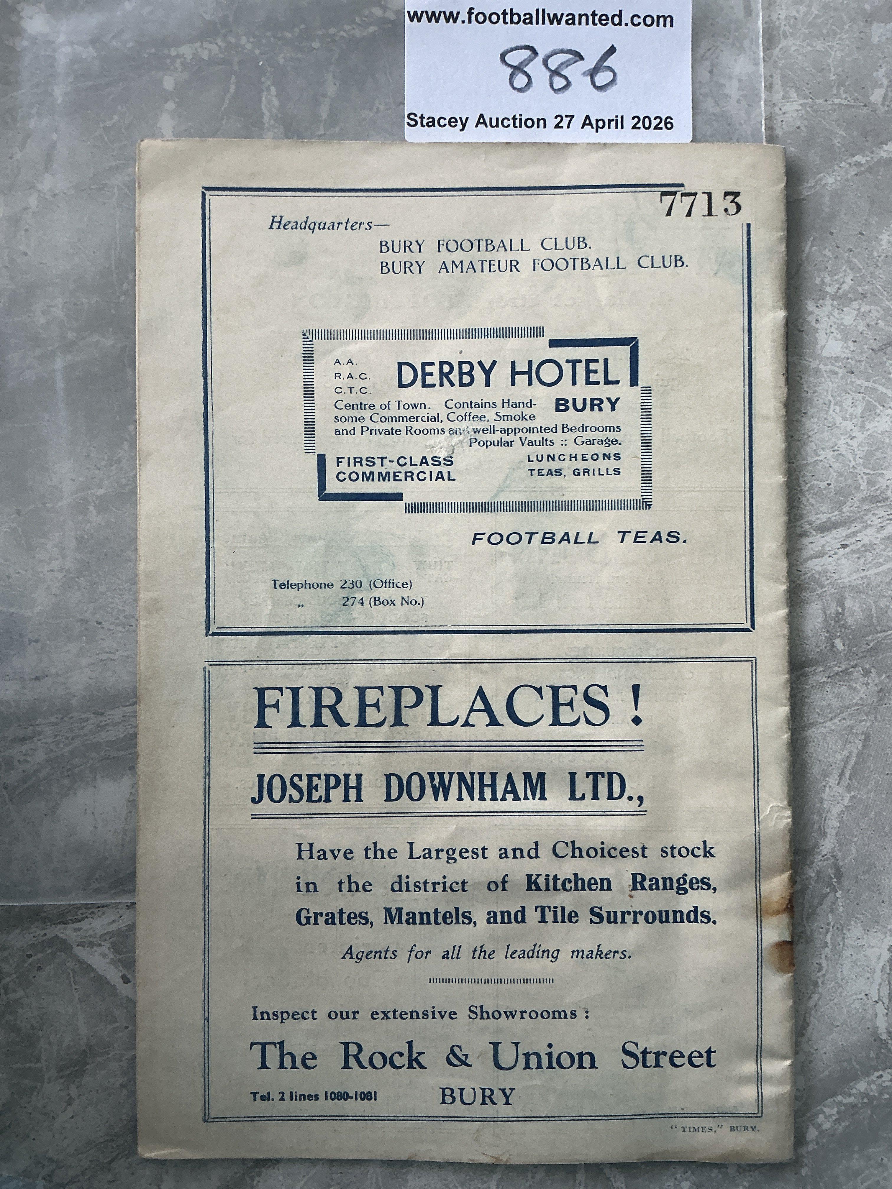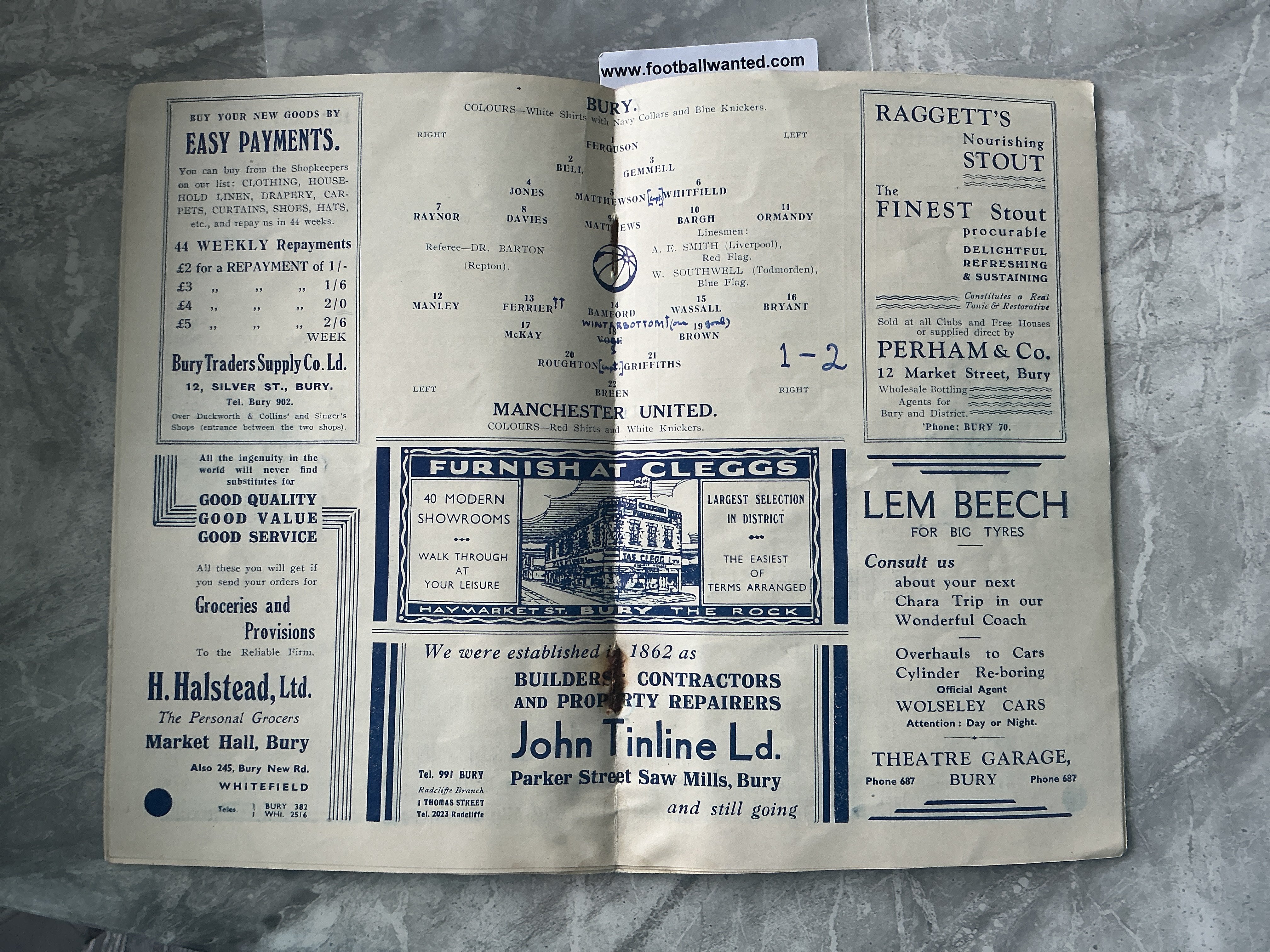1937 - 1938 Bury v Manchester United Football Programme: Good condition 16 page league division 2 match with team changes. Rusty staples holding firm.
