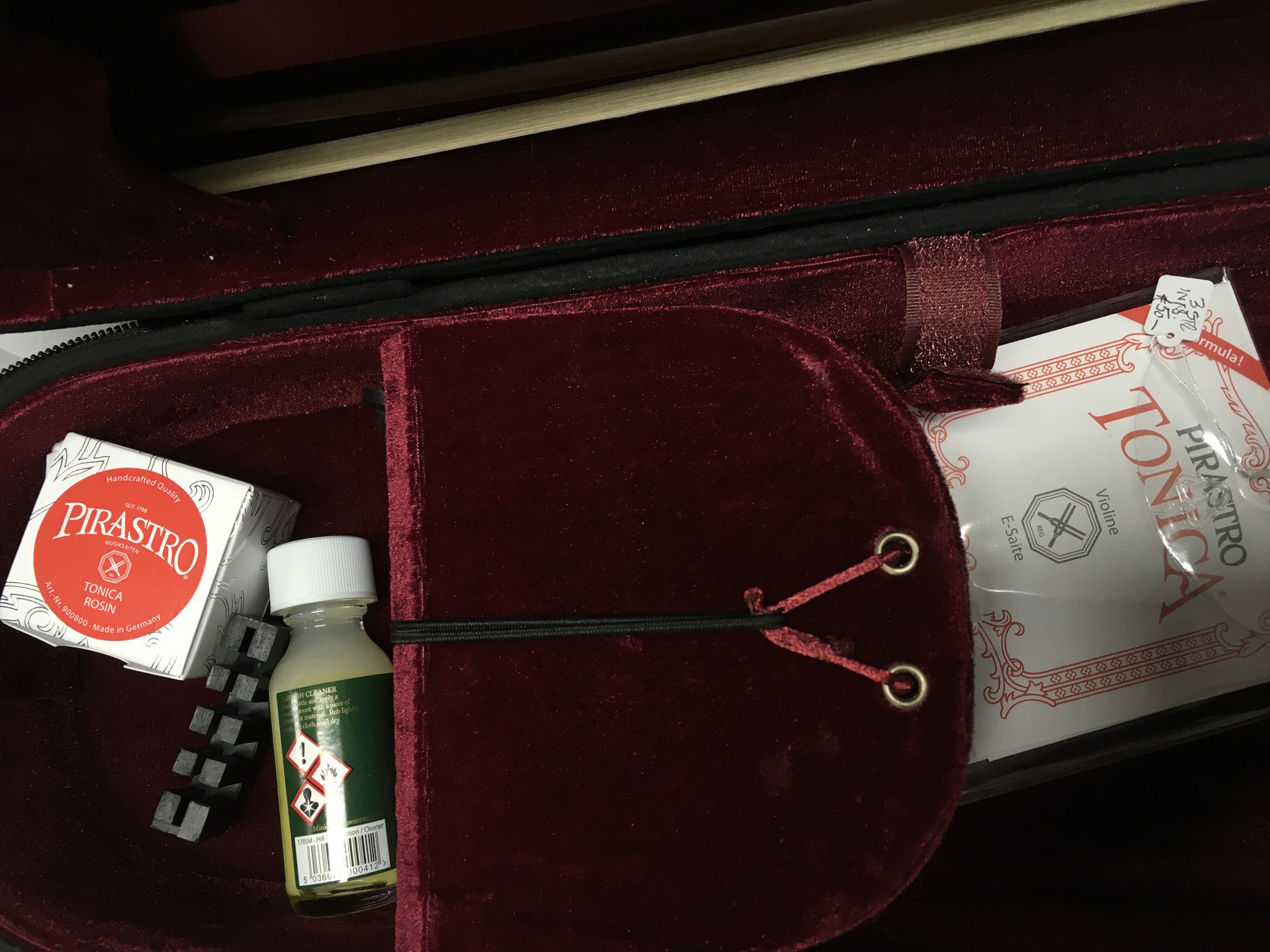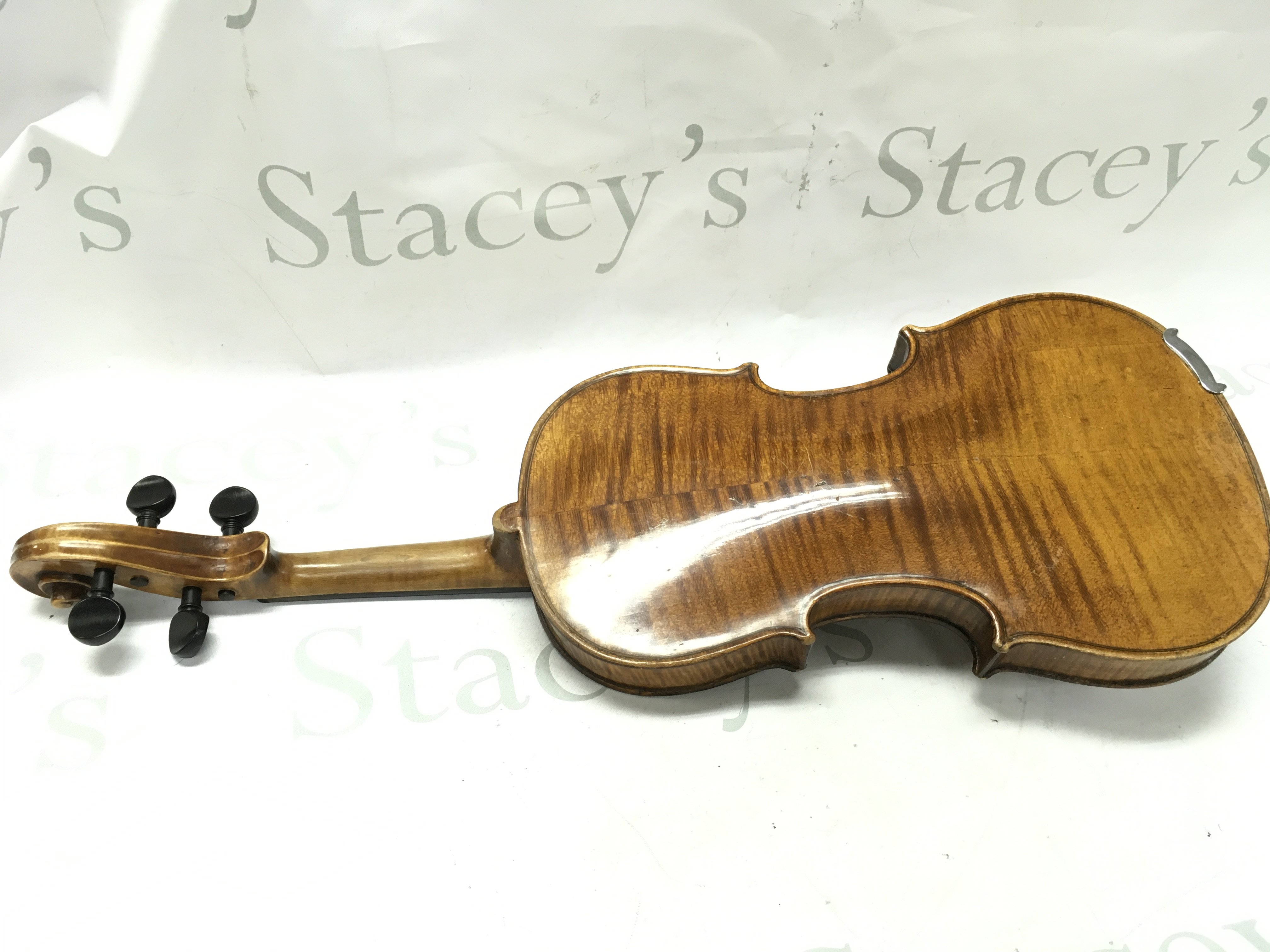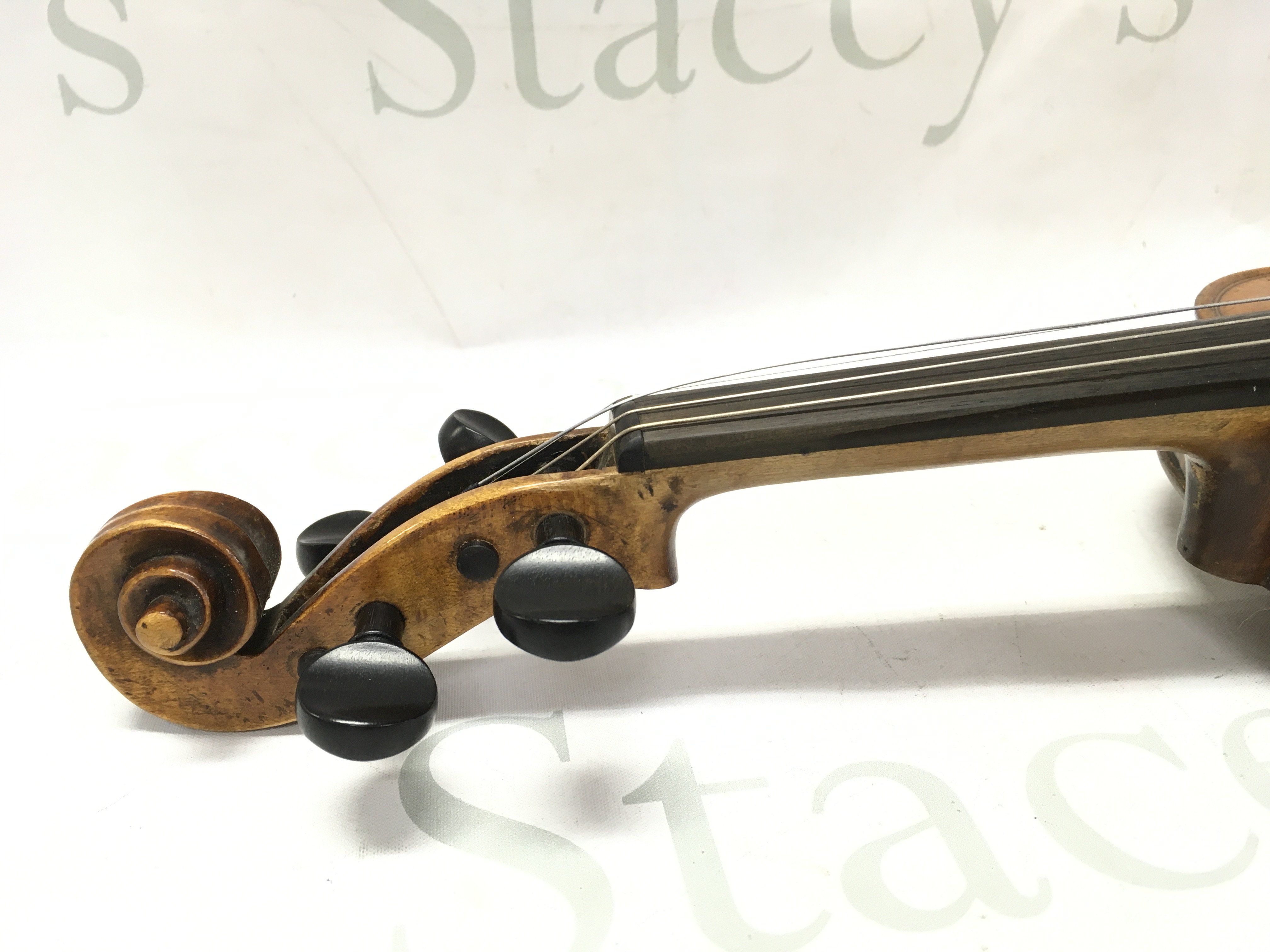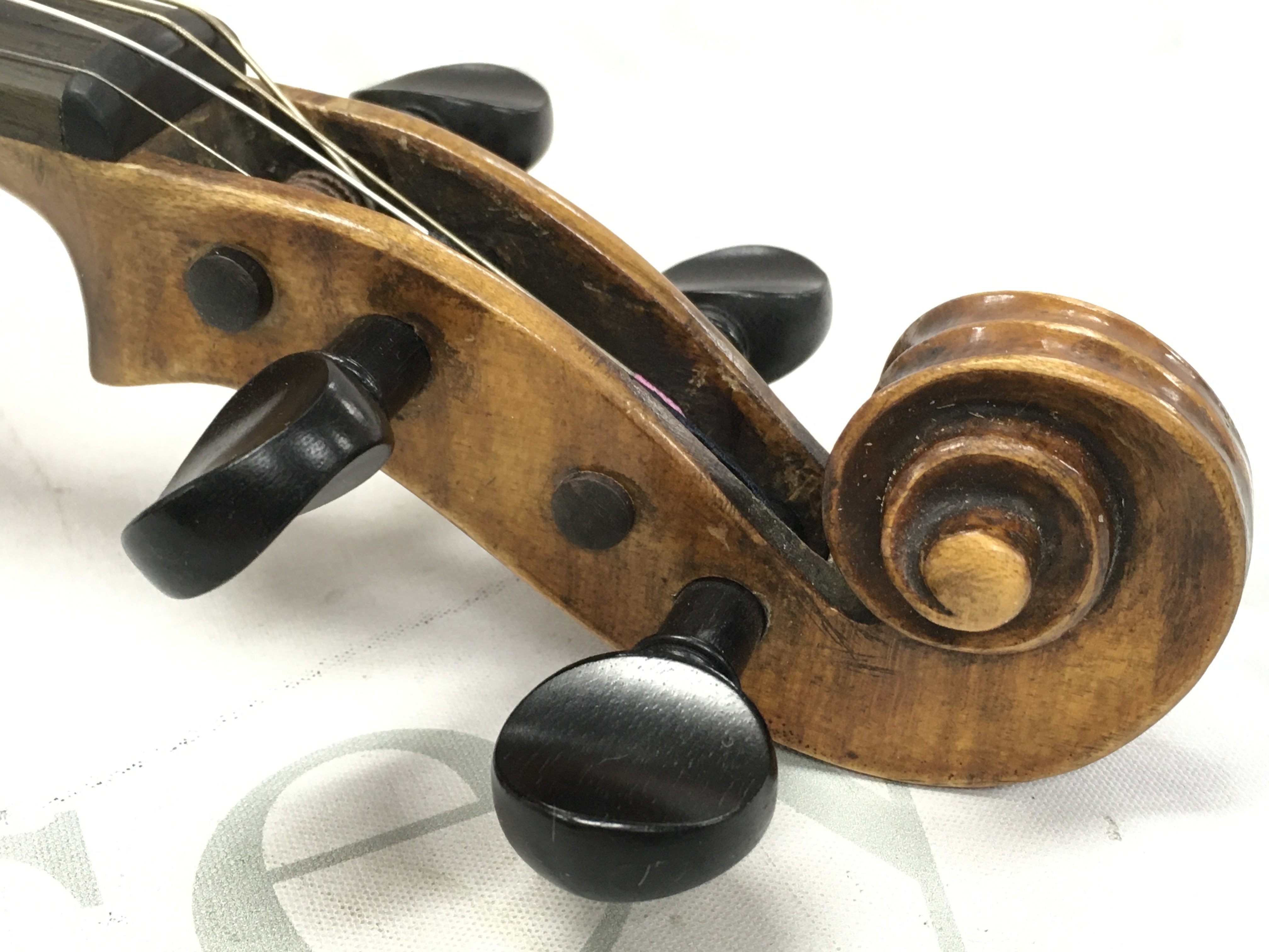 A William Beale 1840 Violin and bow in a fitted case . An interesting antique violin possibly 19th century by William Beale Manchester dated 1840 but may well be a German factory instrument , as a copy of the English, labelled inside the body. This lot cannot be posted