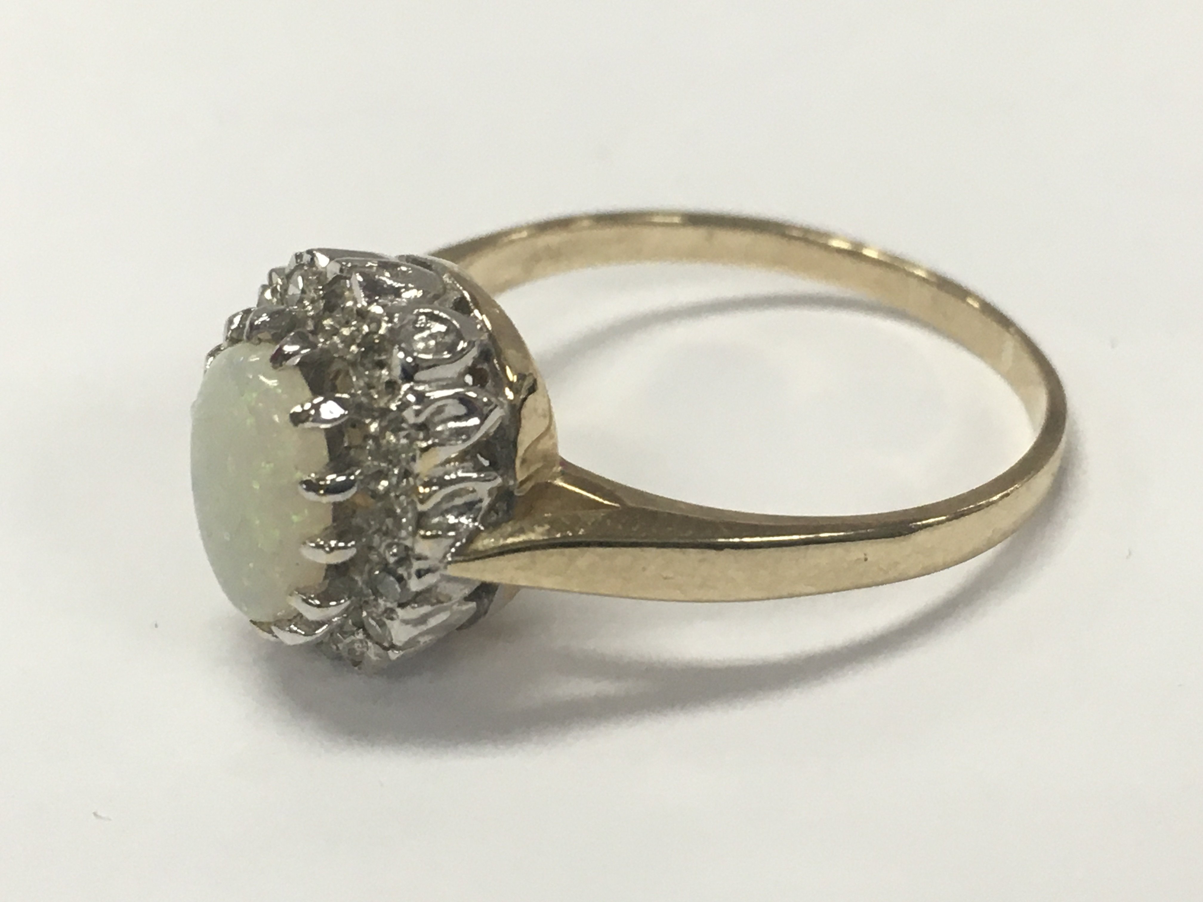 A 9 carat gold opal ring , 3.2g total weight, size O. postage category A