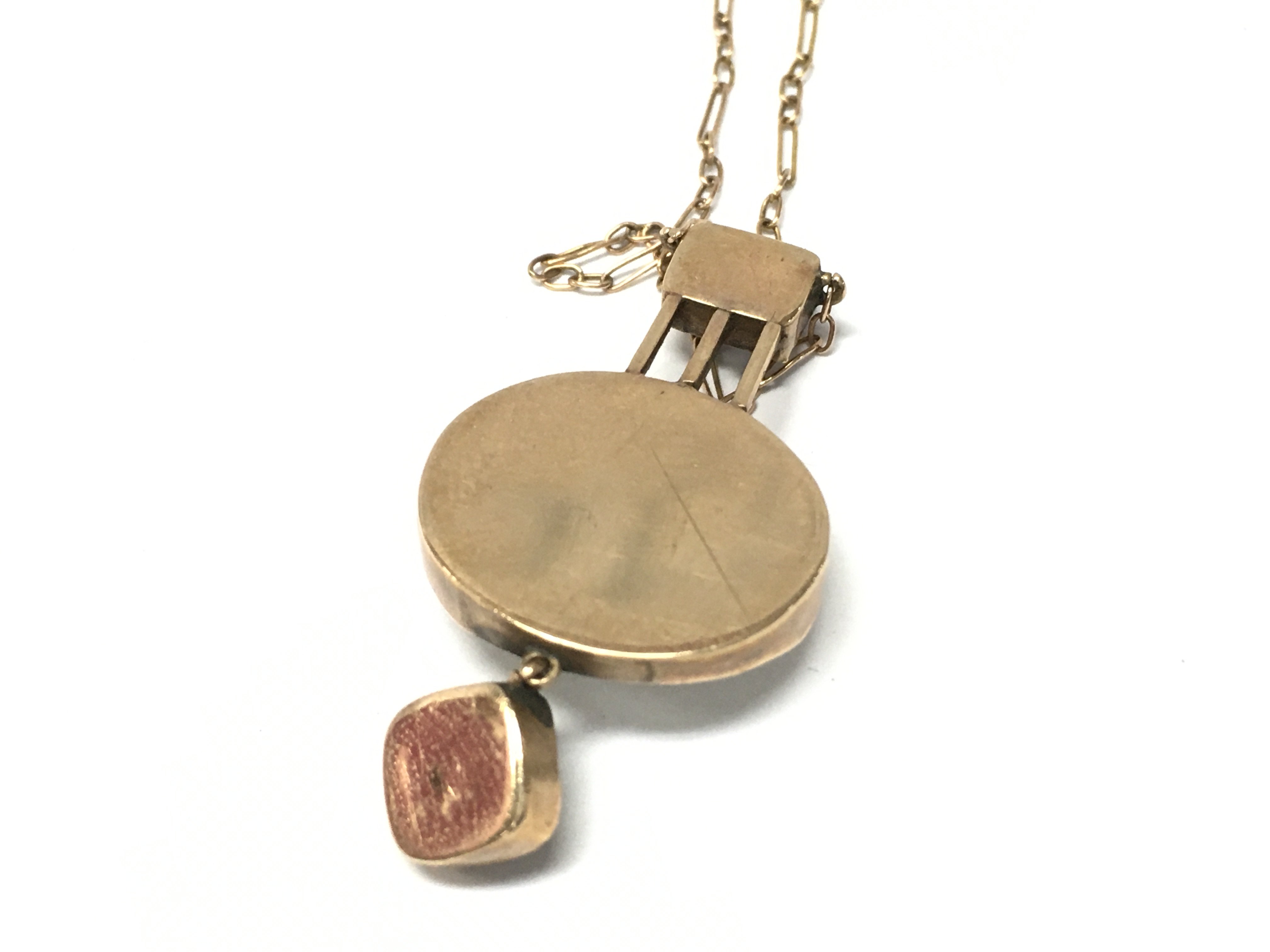 An art deco style necklace with mother of pearl and garnet design . Postage cat a