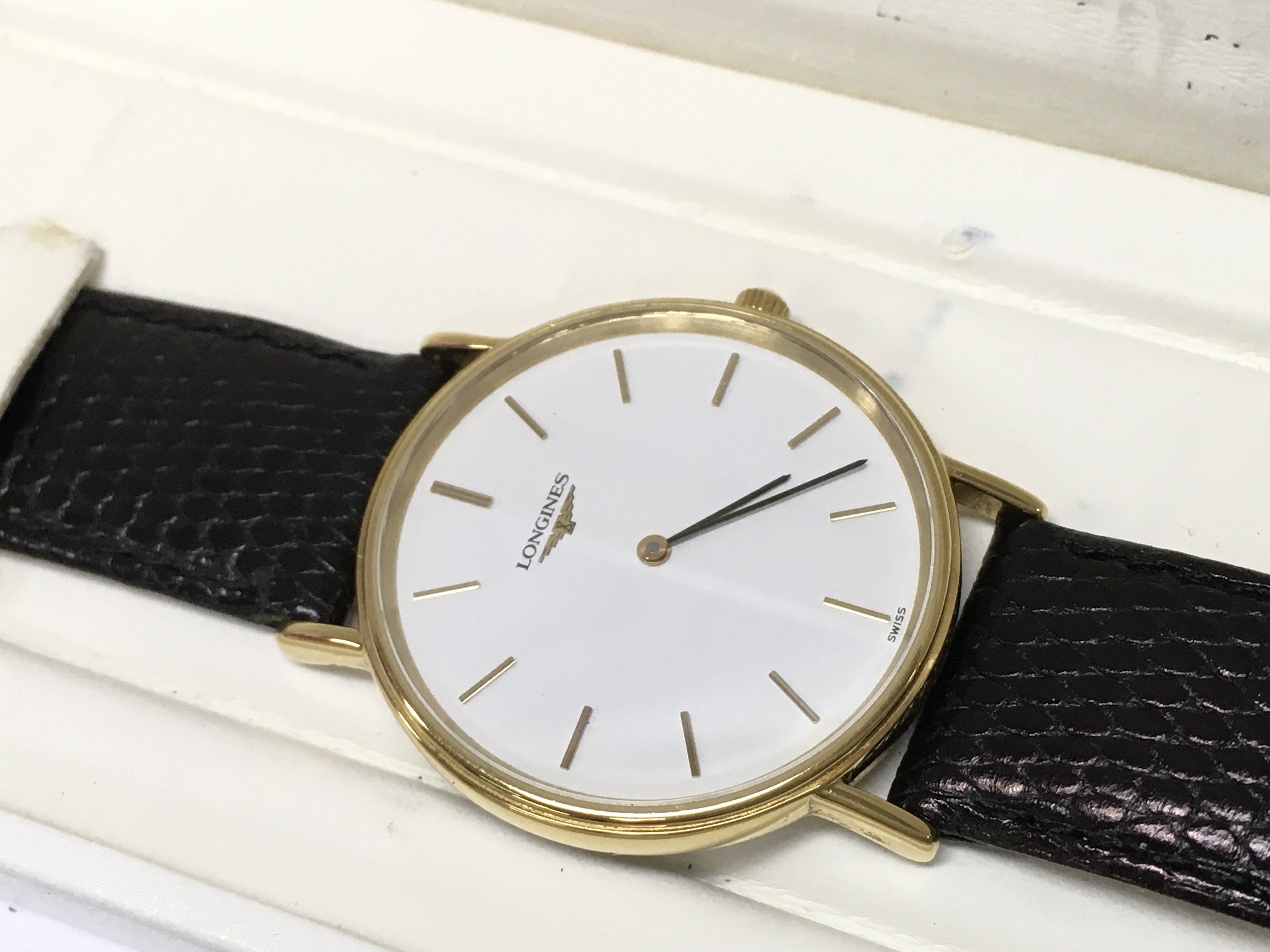 A mens Longines watch, boxed with paperwork . Postage category b