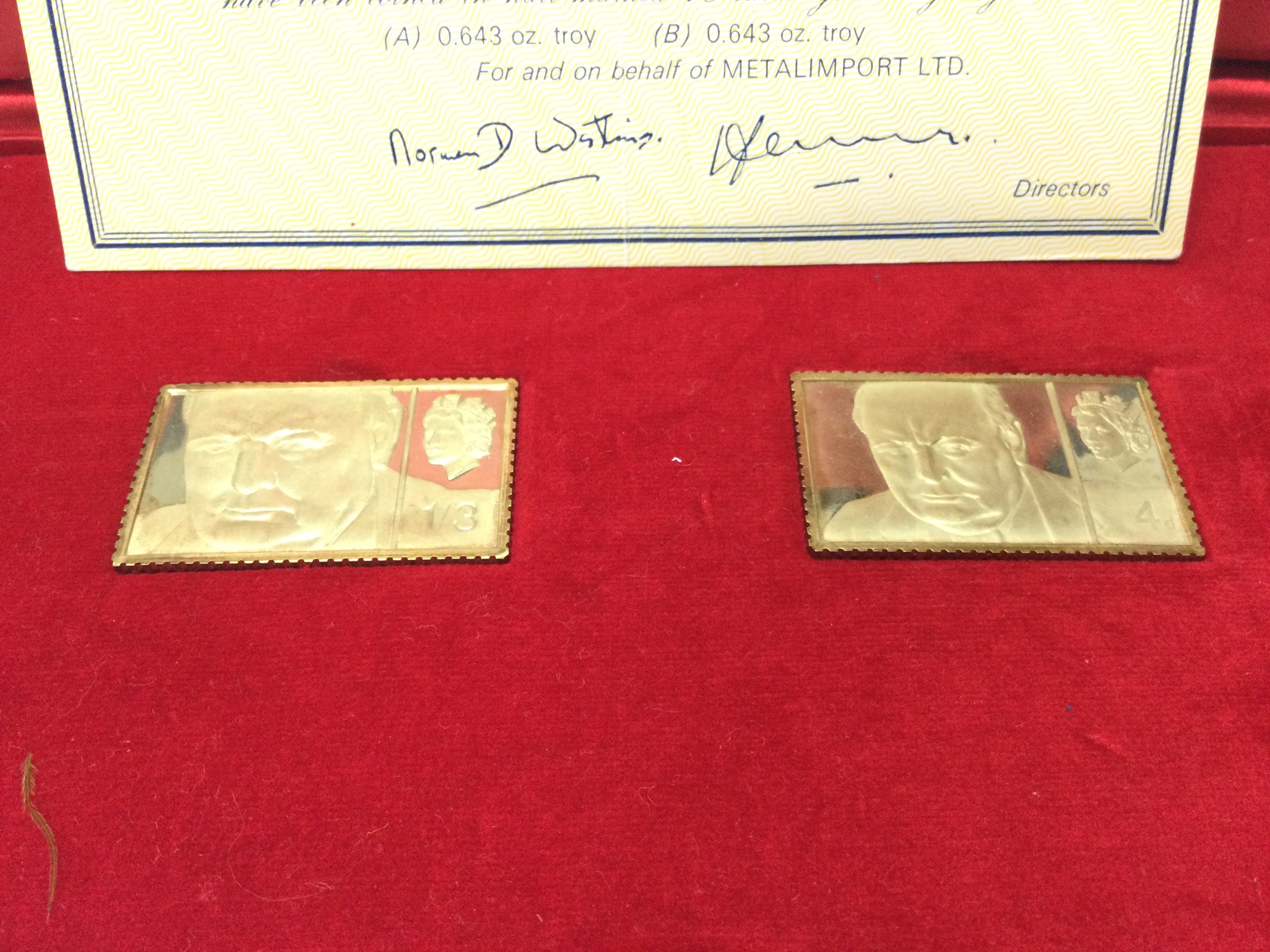 A set of Winston Churchill 18ct gold stamp ingots. 40.35g total. Postage B