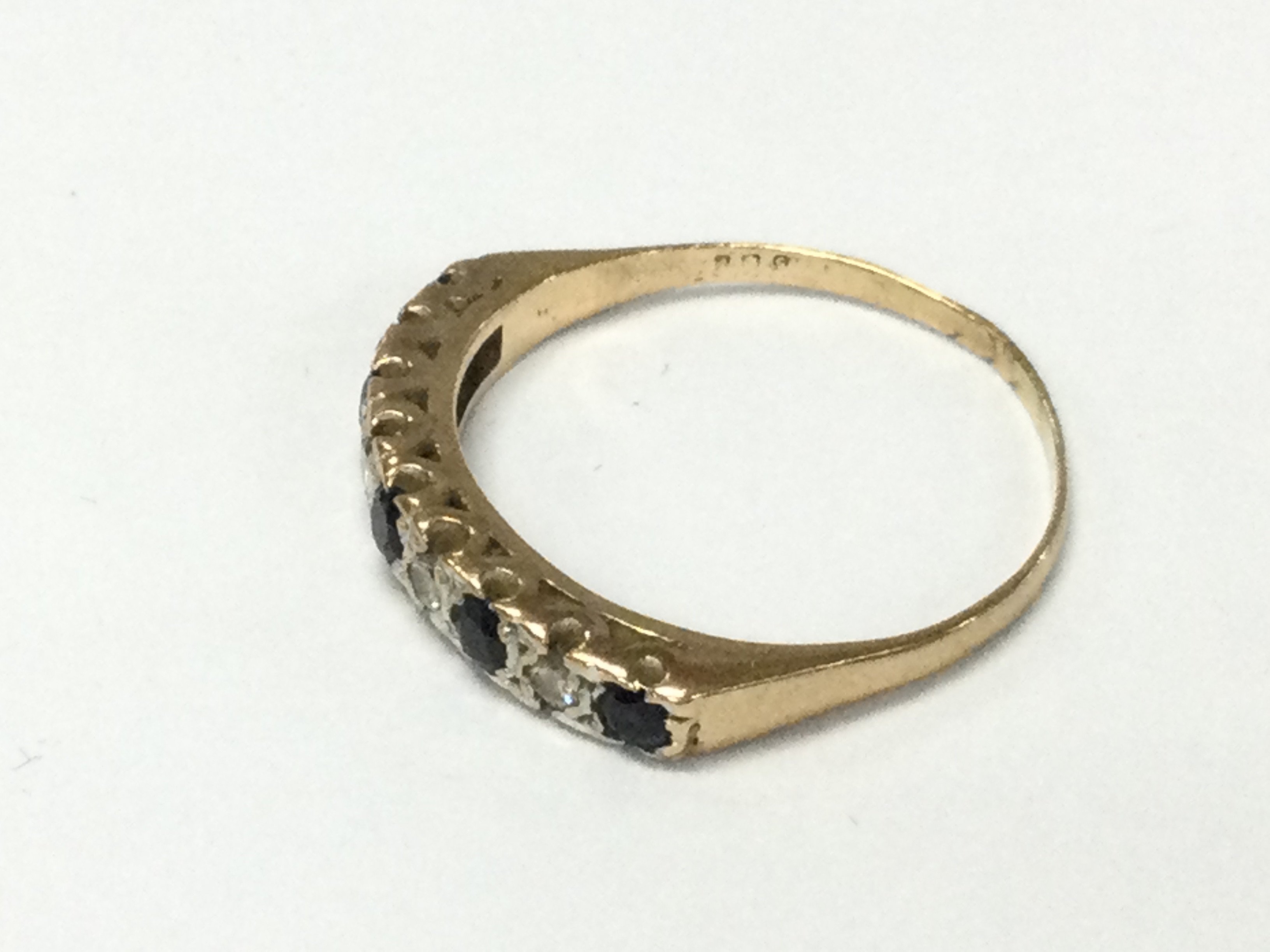 A 9ct gold diamond and sapphire set ring. V 1/2 and 2.67g