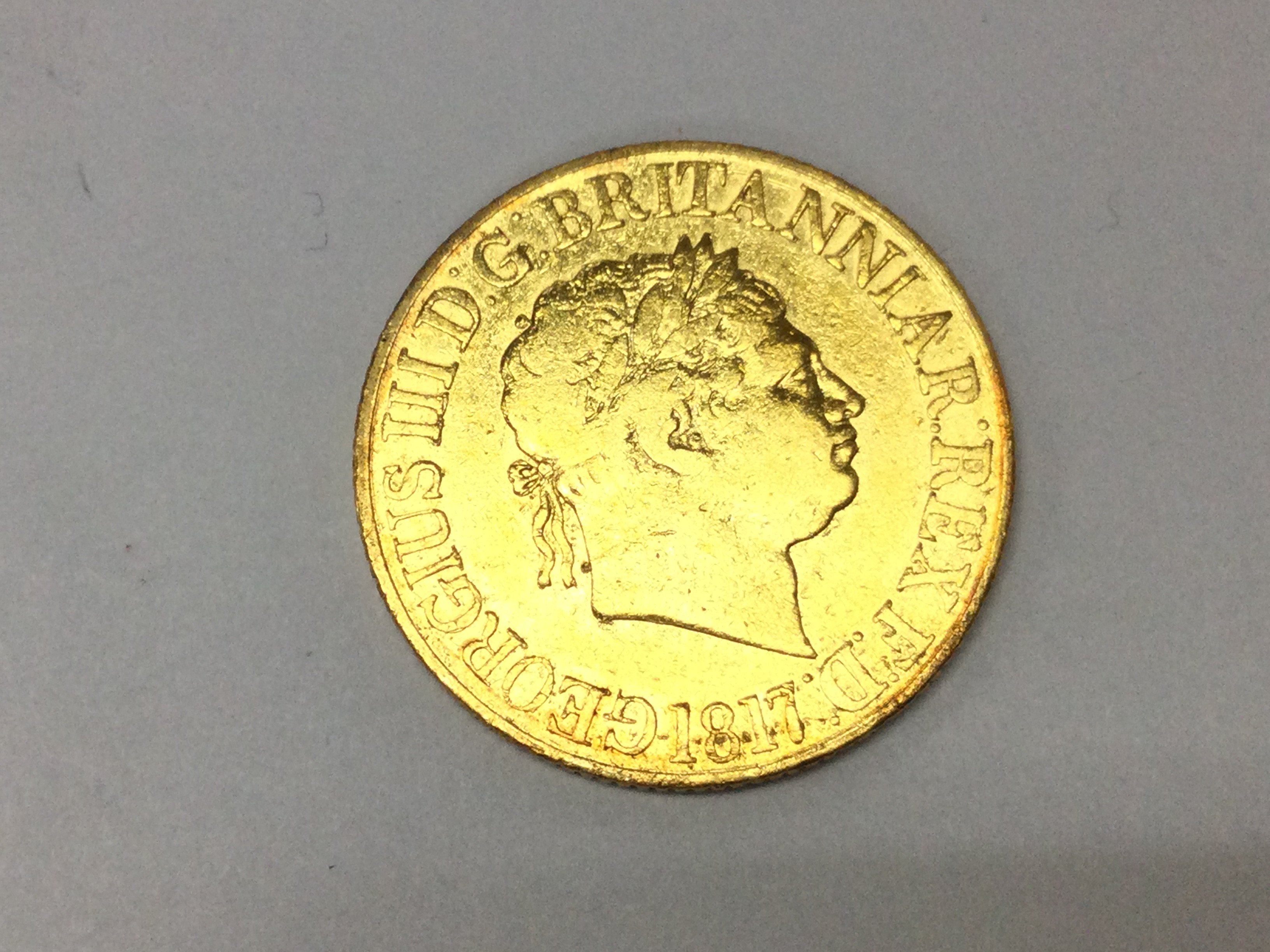 An 1817 full sovereign. First modern sovereign issue. Postage B
