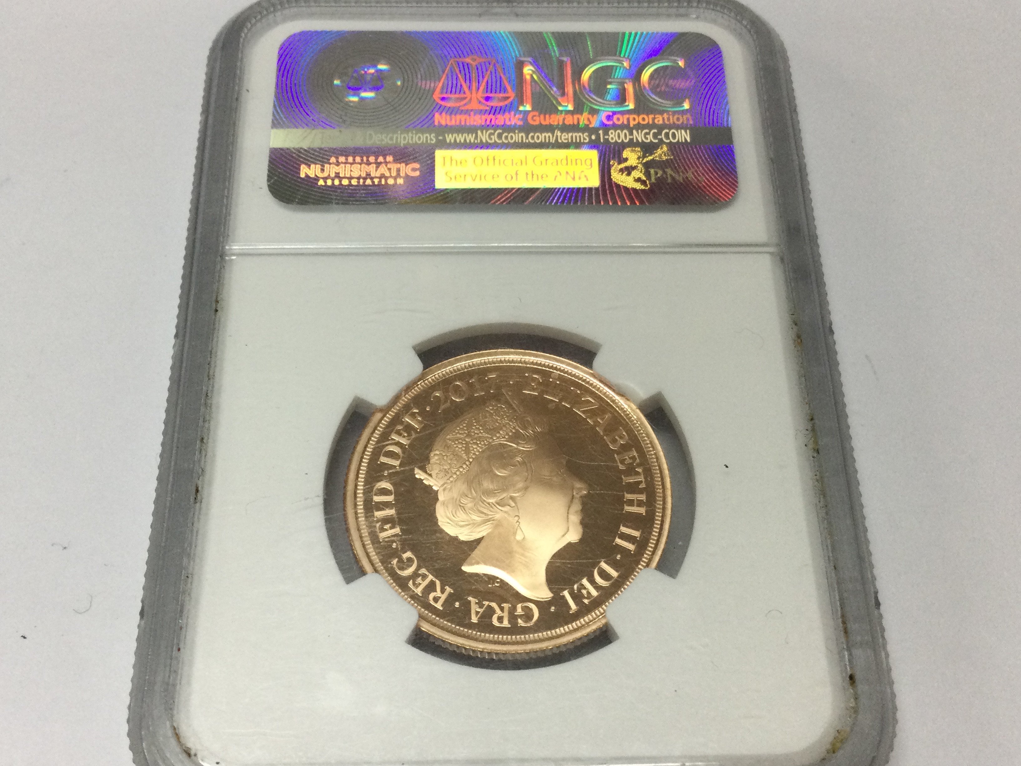 A 2017 PR70 ultra cameo graded gold double sovereign. One of first 150 struck. Postage B