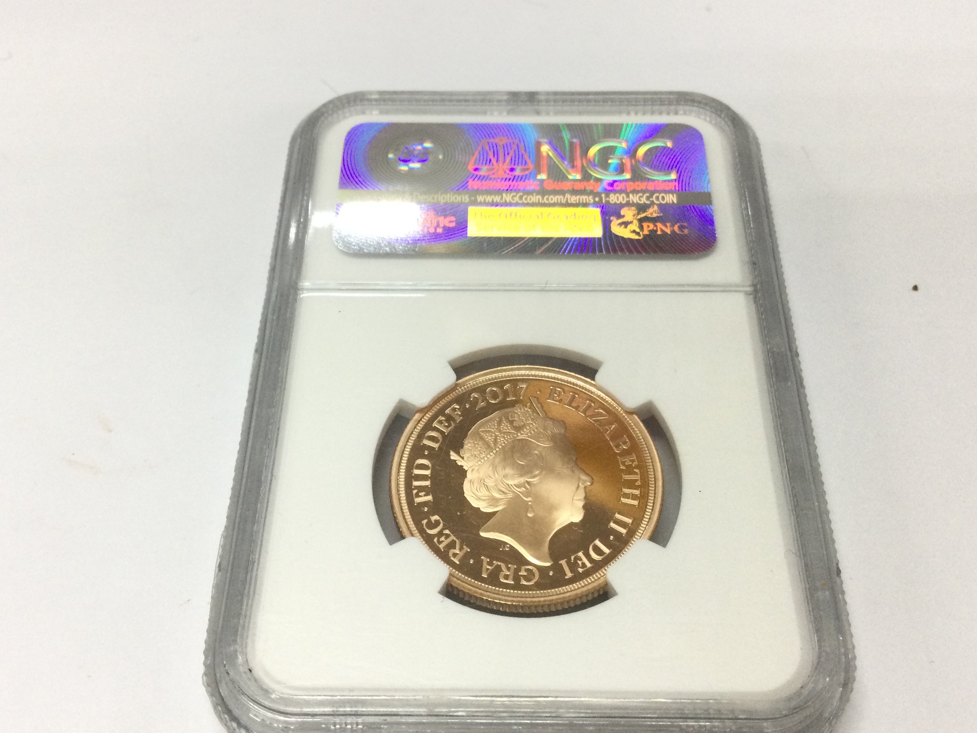A 2017 PR70 ultra cameo graded gold double sovereign. One of first 150 struck. Postage B