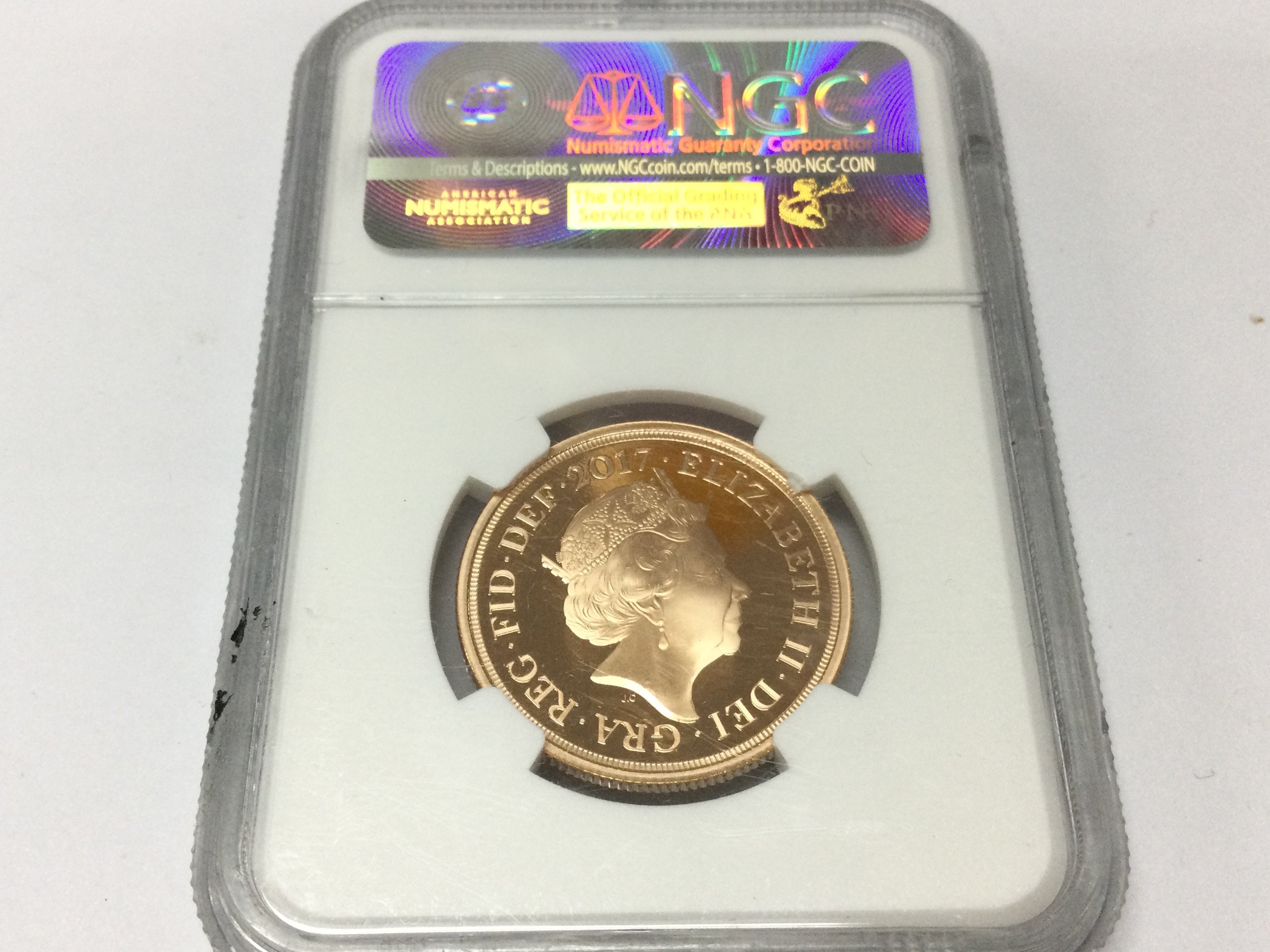 A 2017 PR70 ultra cameo graded gold double sovereign. One of first 150 struck. Postage B