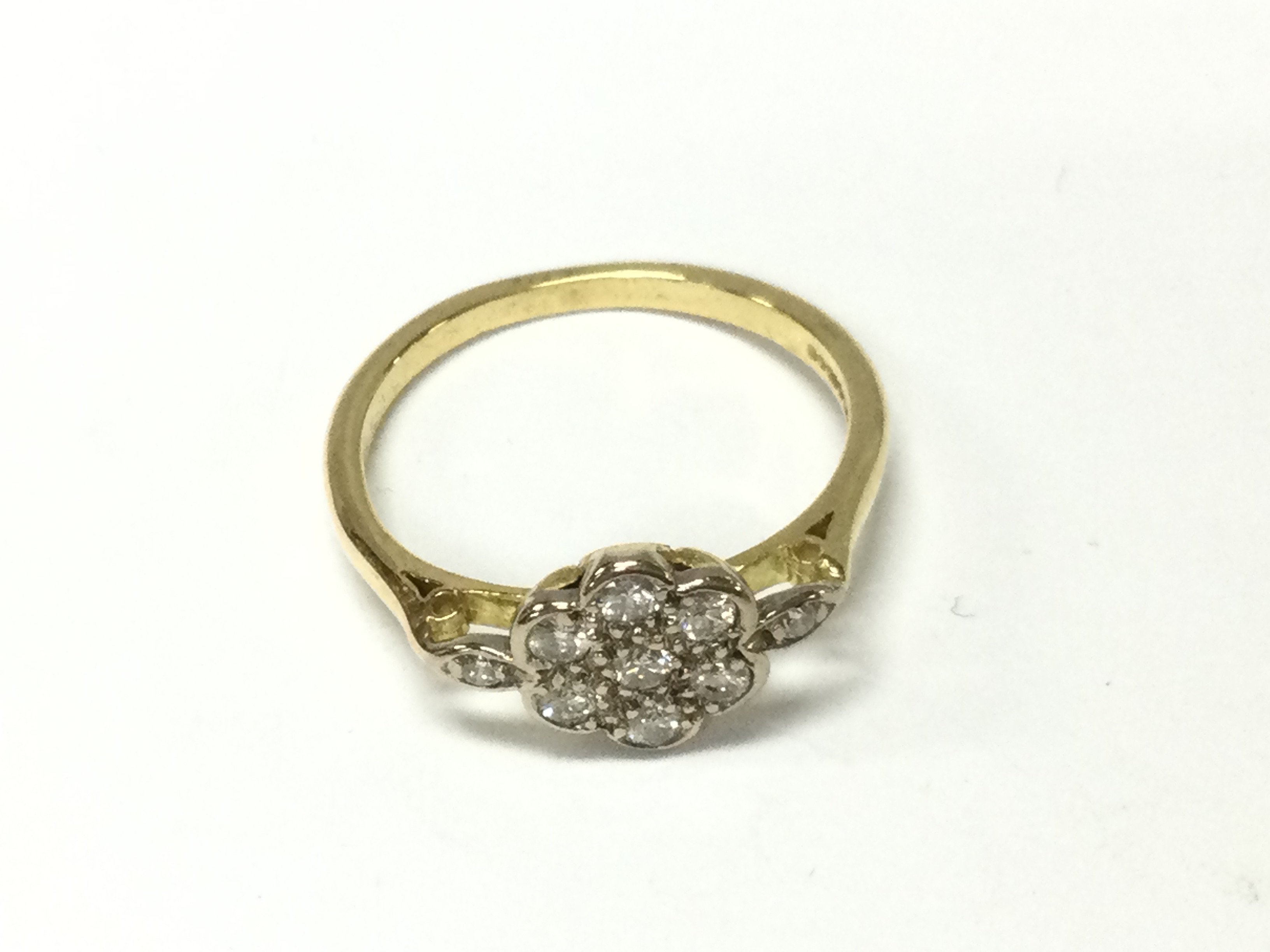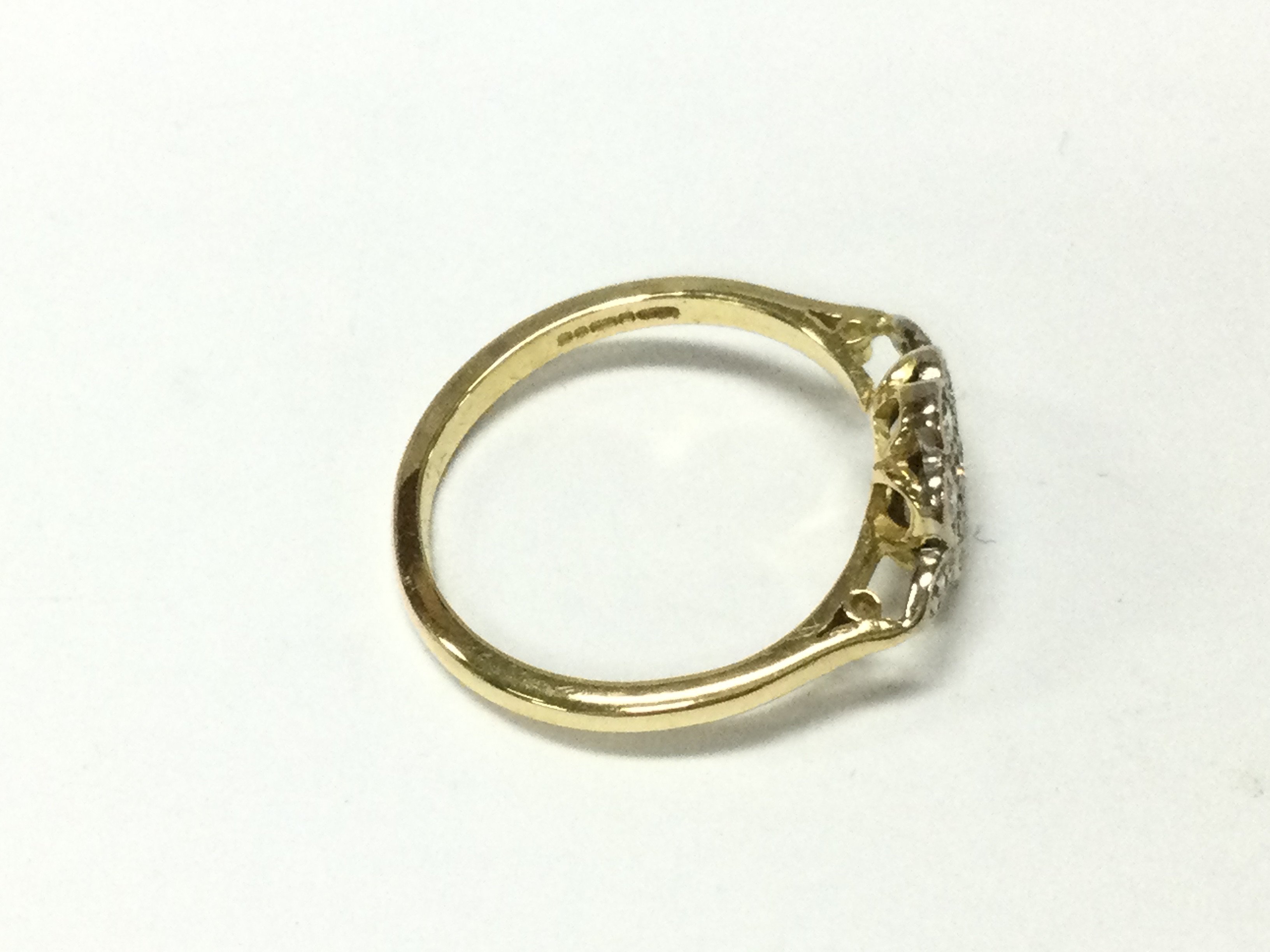 An 18ct yellow gold ring set with seven diamonds. 3.18g