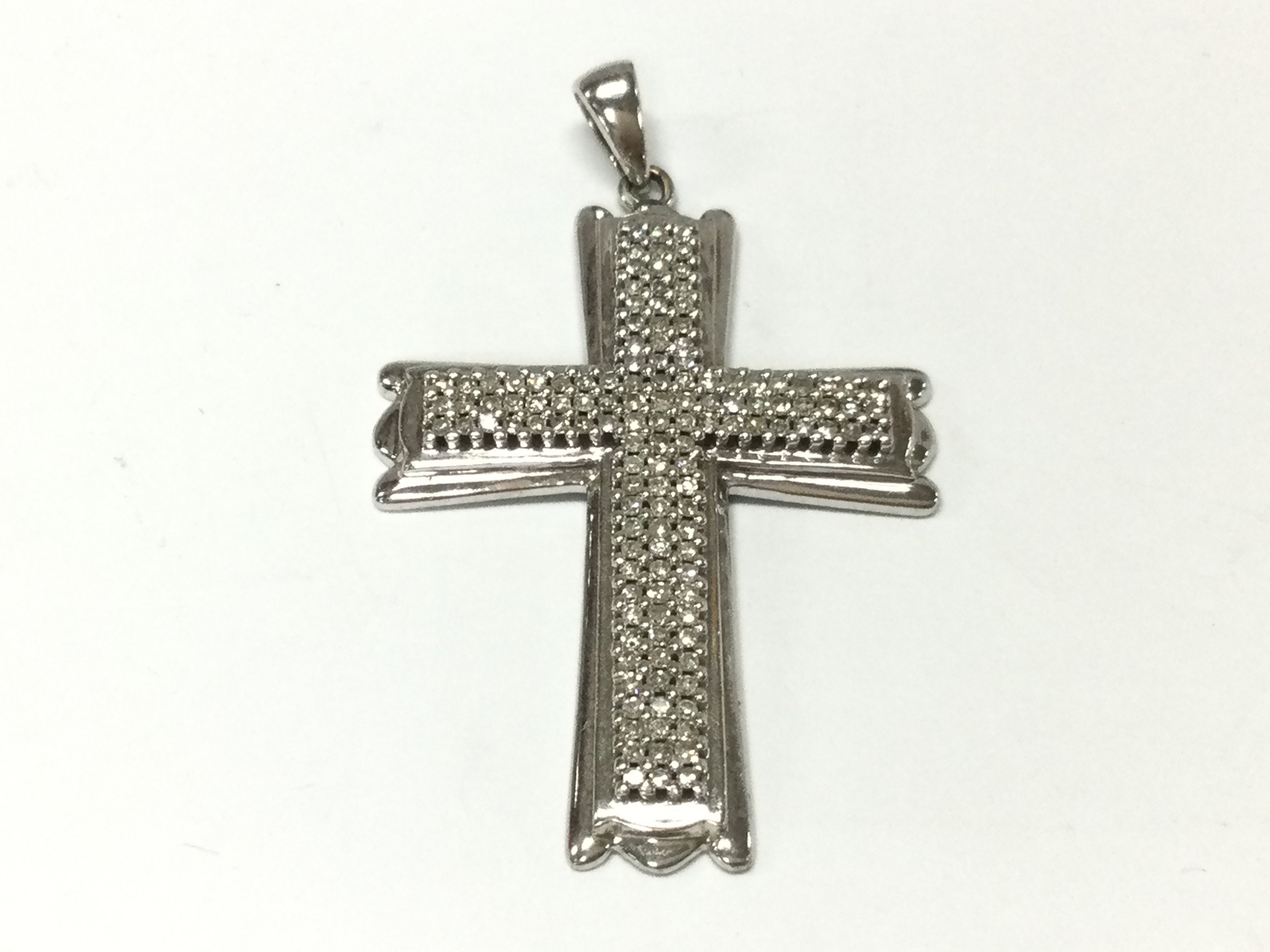 A 9ct white gold diamond cross. Approximately 1ct diamonds and 8.5g