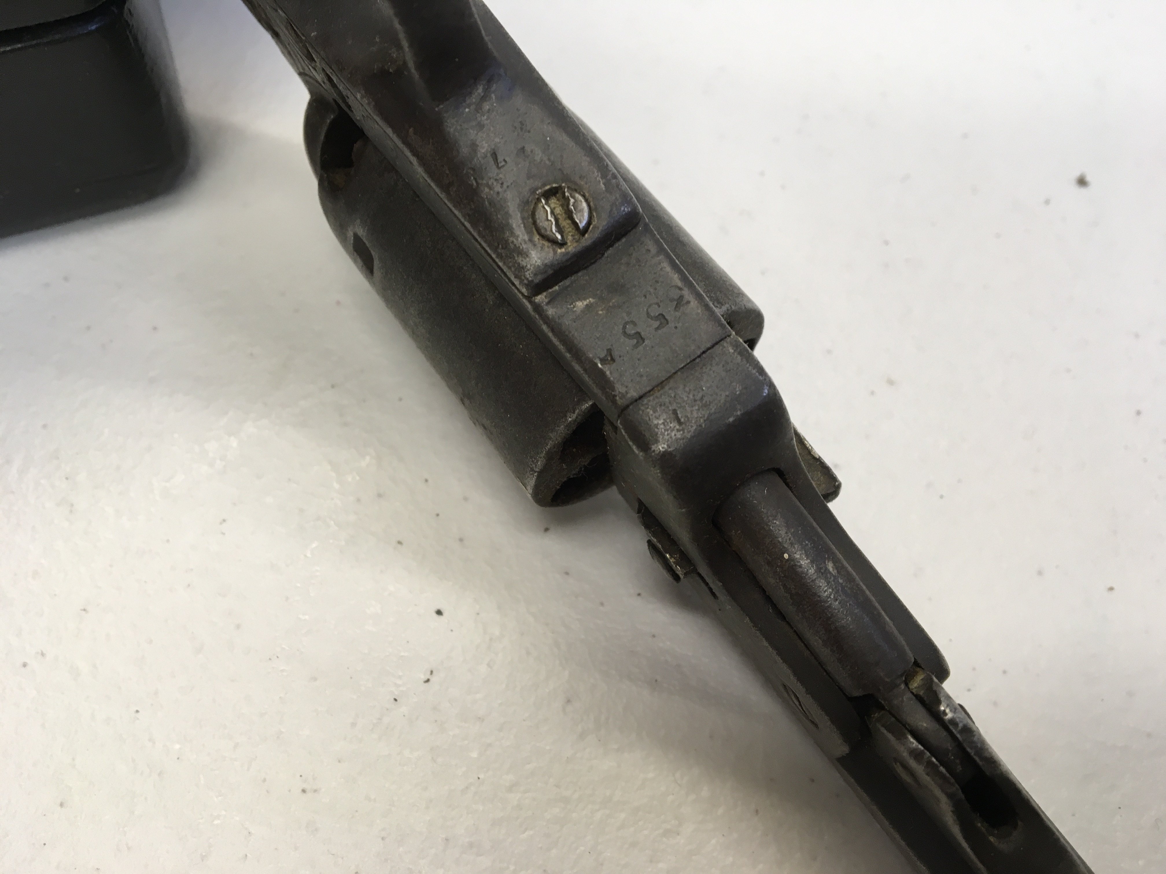 A 19th century percussion pistol with a bone grip with serial number 355 ? Stamped in the underside of the action with light engraving no other markings. action not functional.