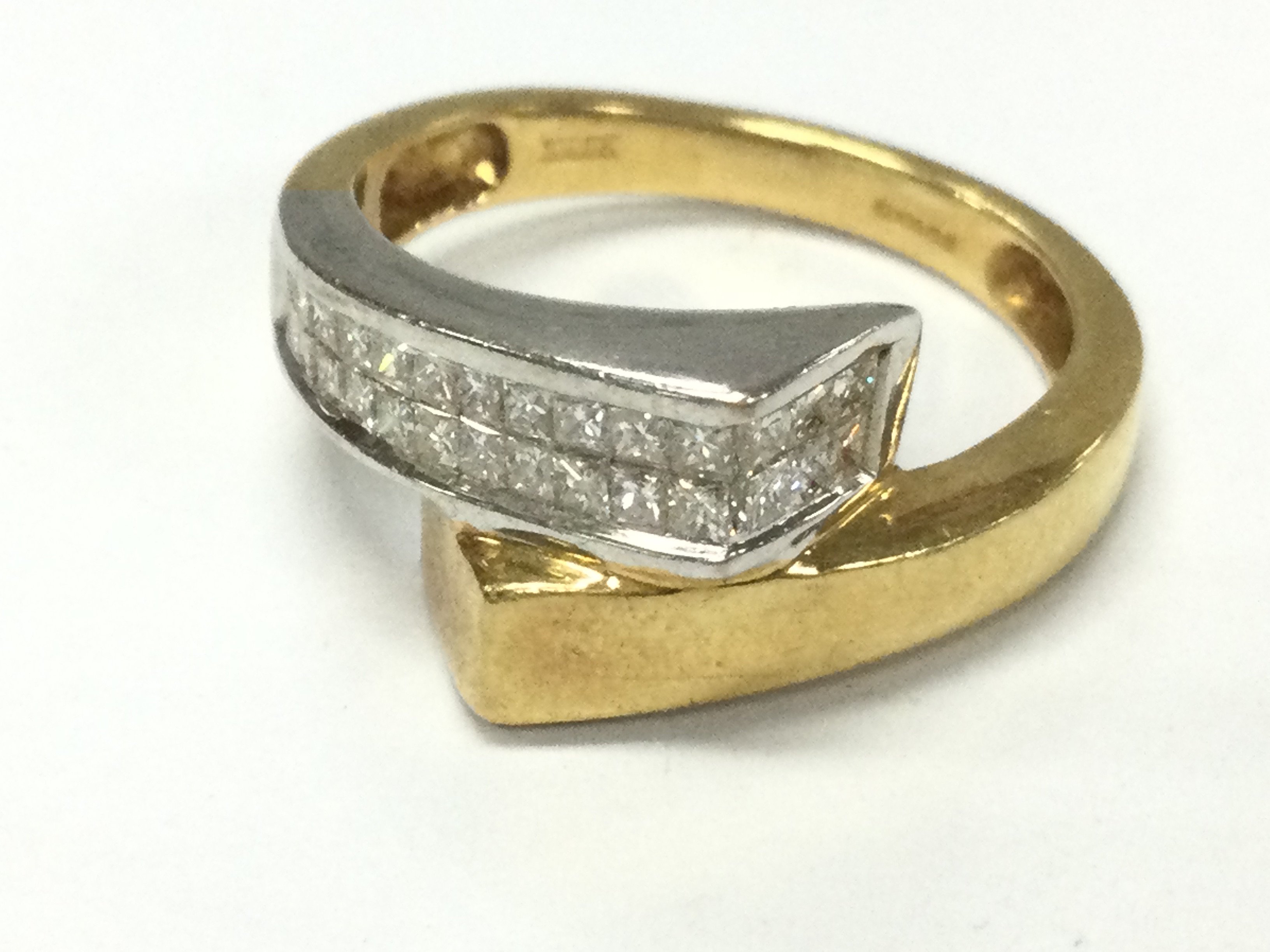 An 18ct white and yellow gold diamond set ring. Approx 5.6g and size N 1/2