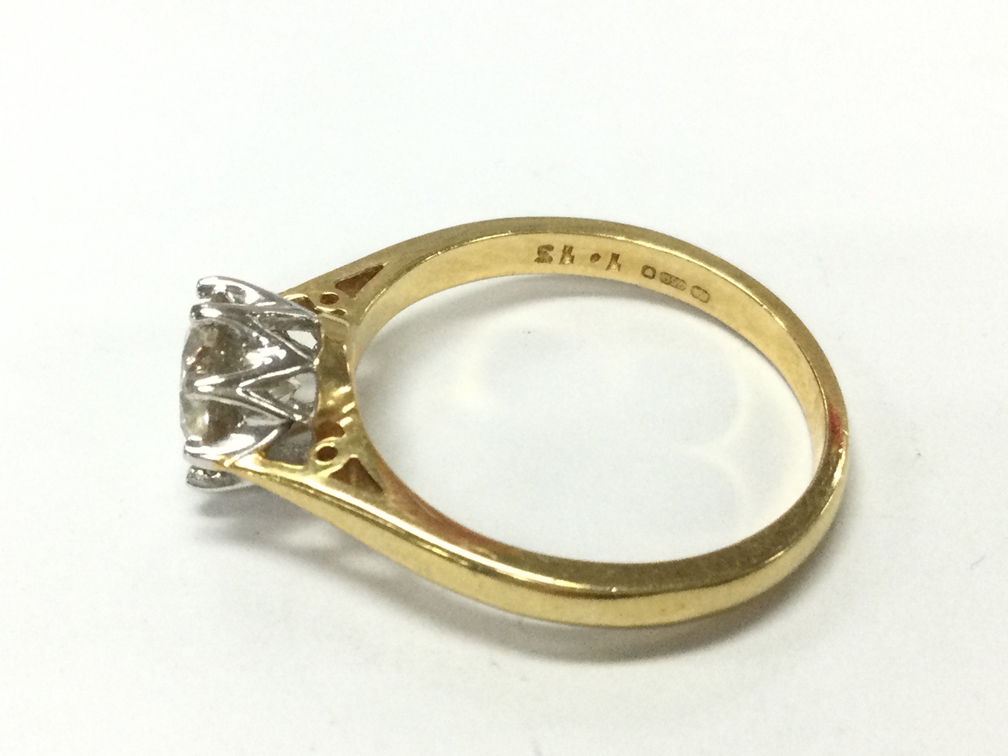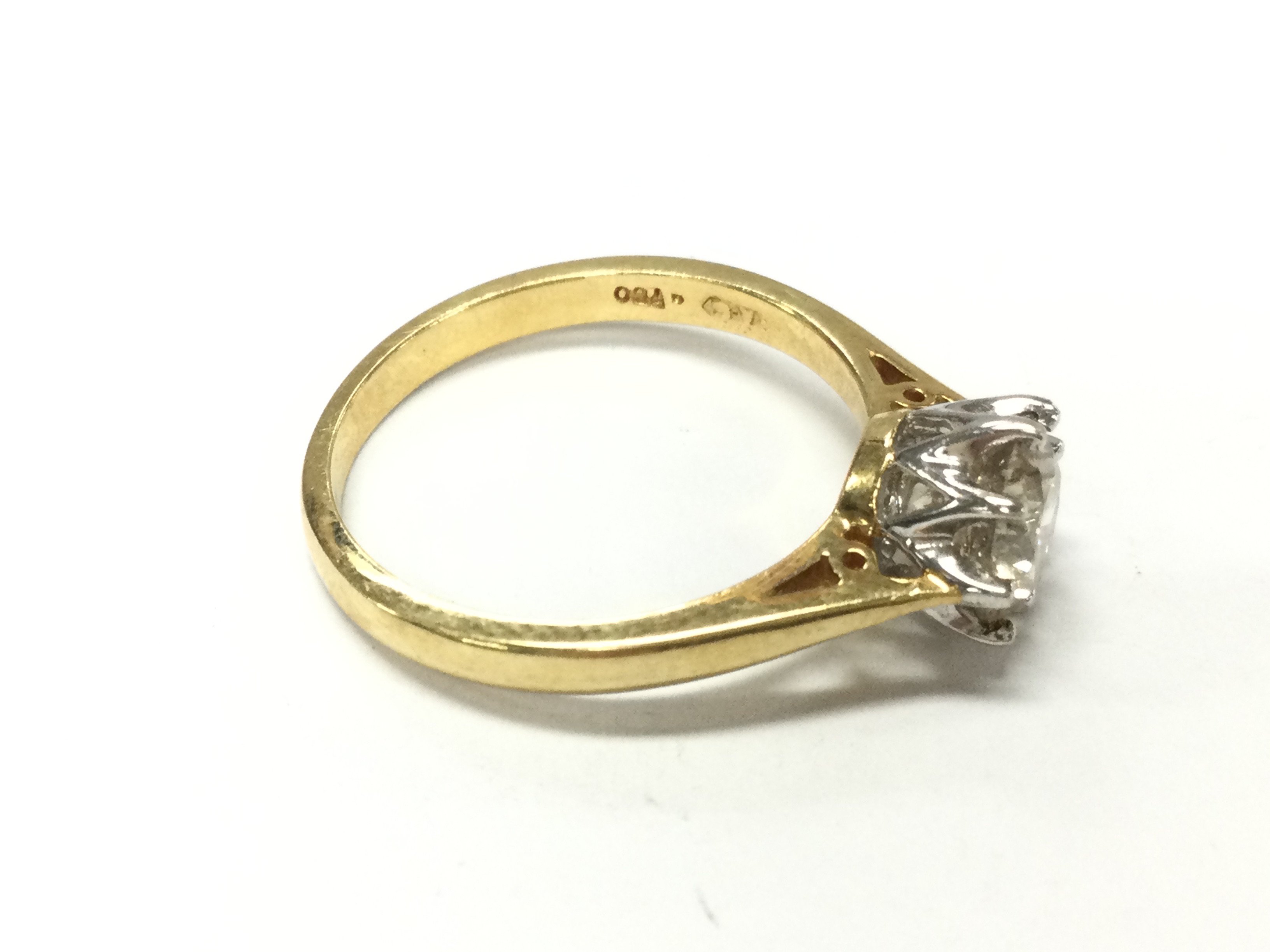 An 18ct gold diamond solitaire ring. Approximately 1.1ct and 3.3G size N
