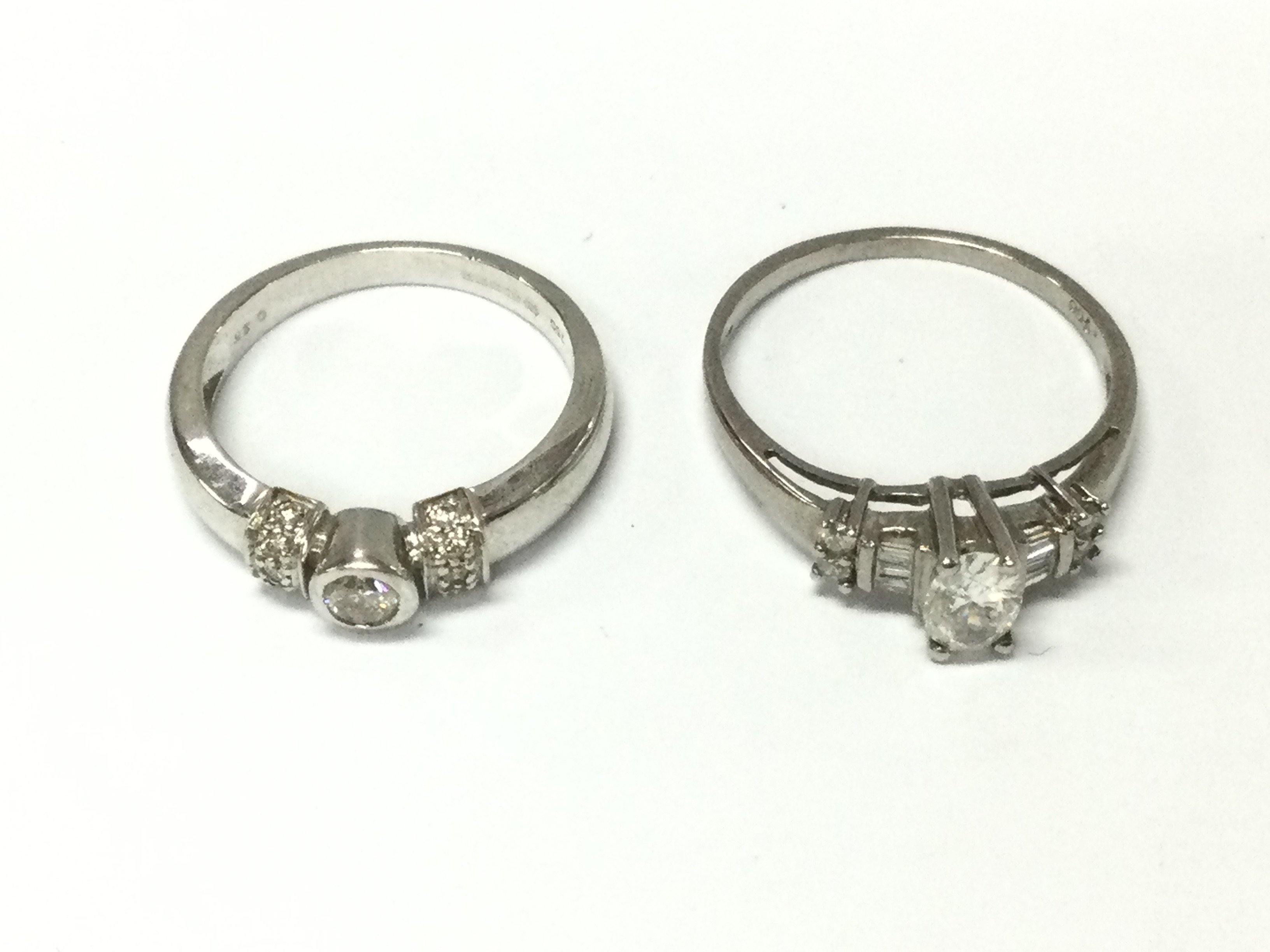 Two 18ct white gold rings set with diamonds. Sizes M and O and 6.10g approx