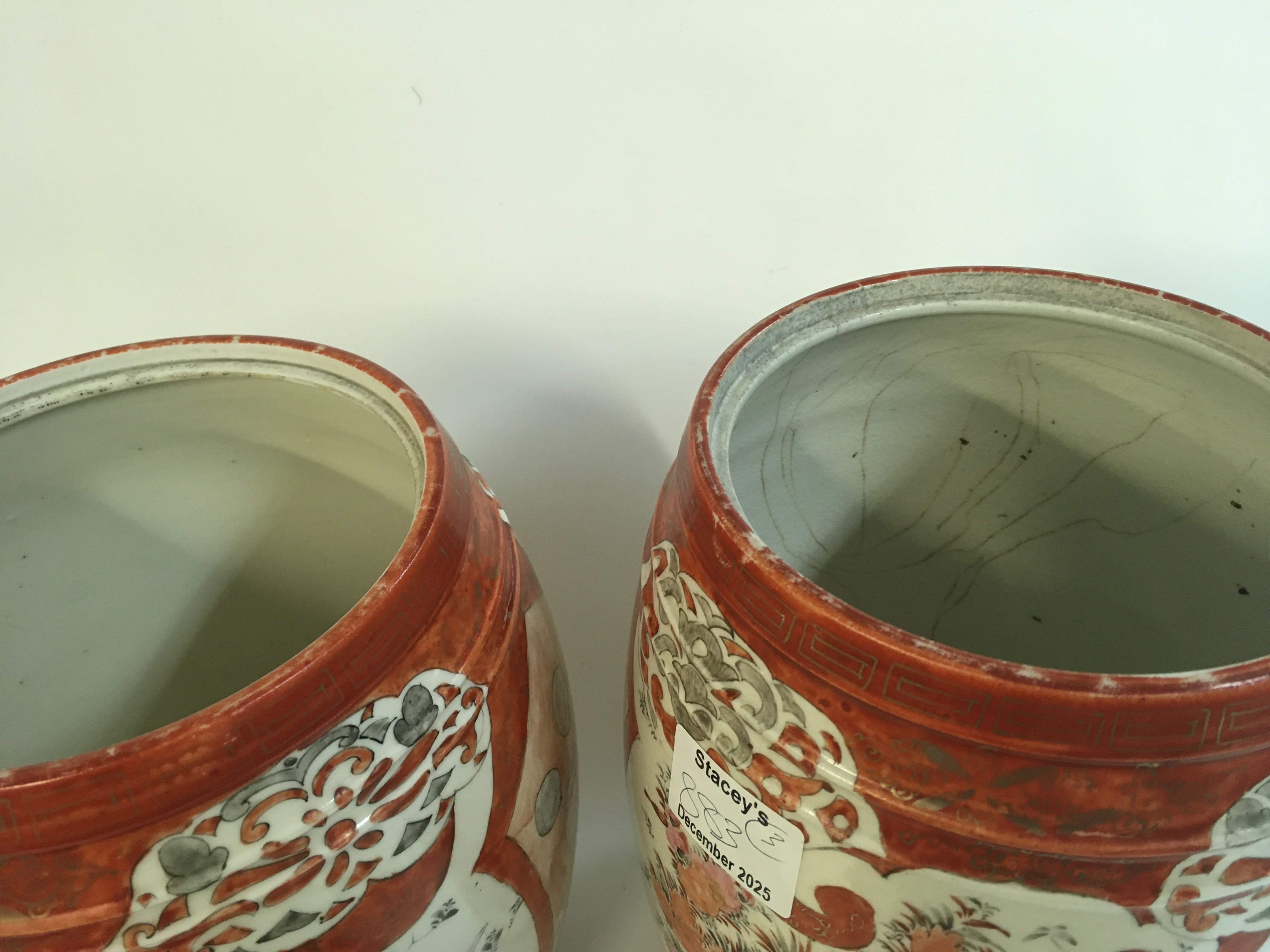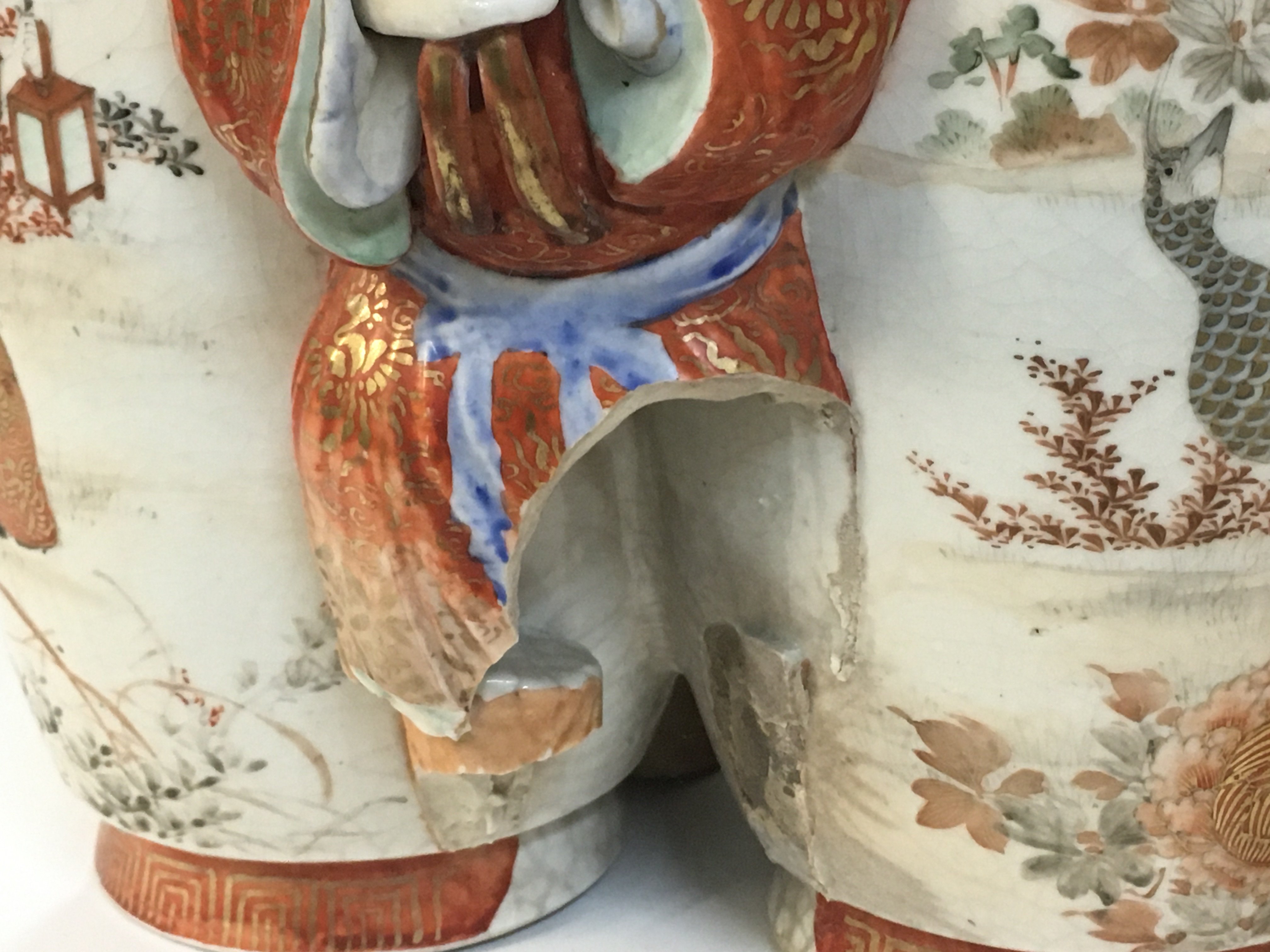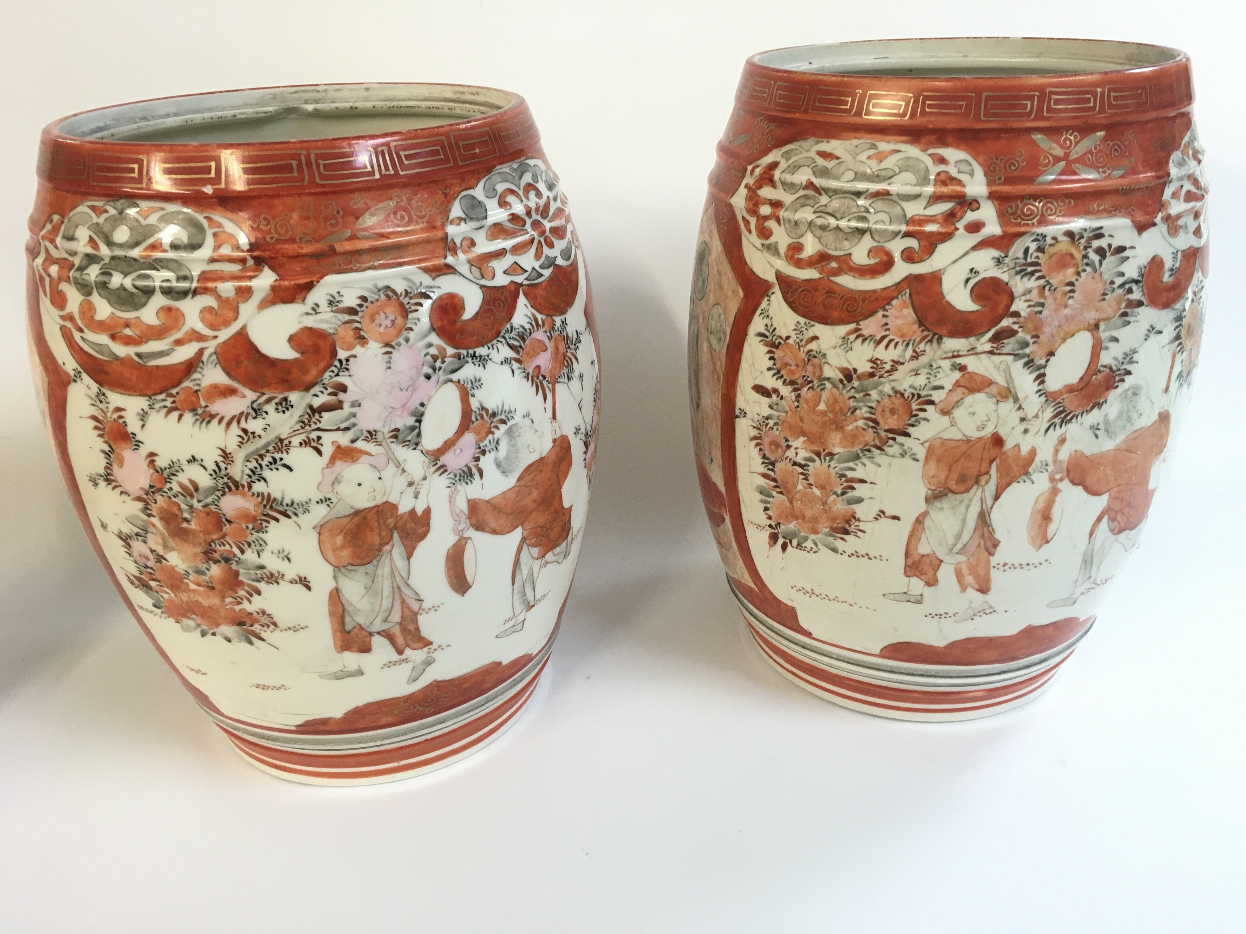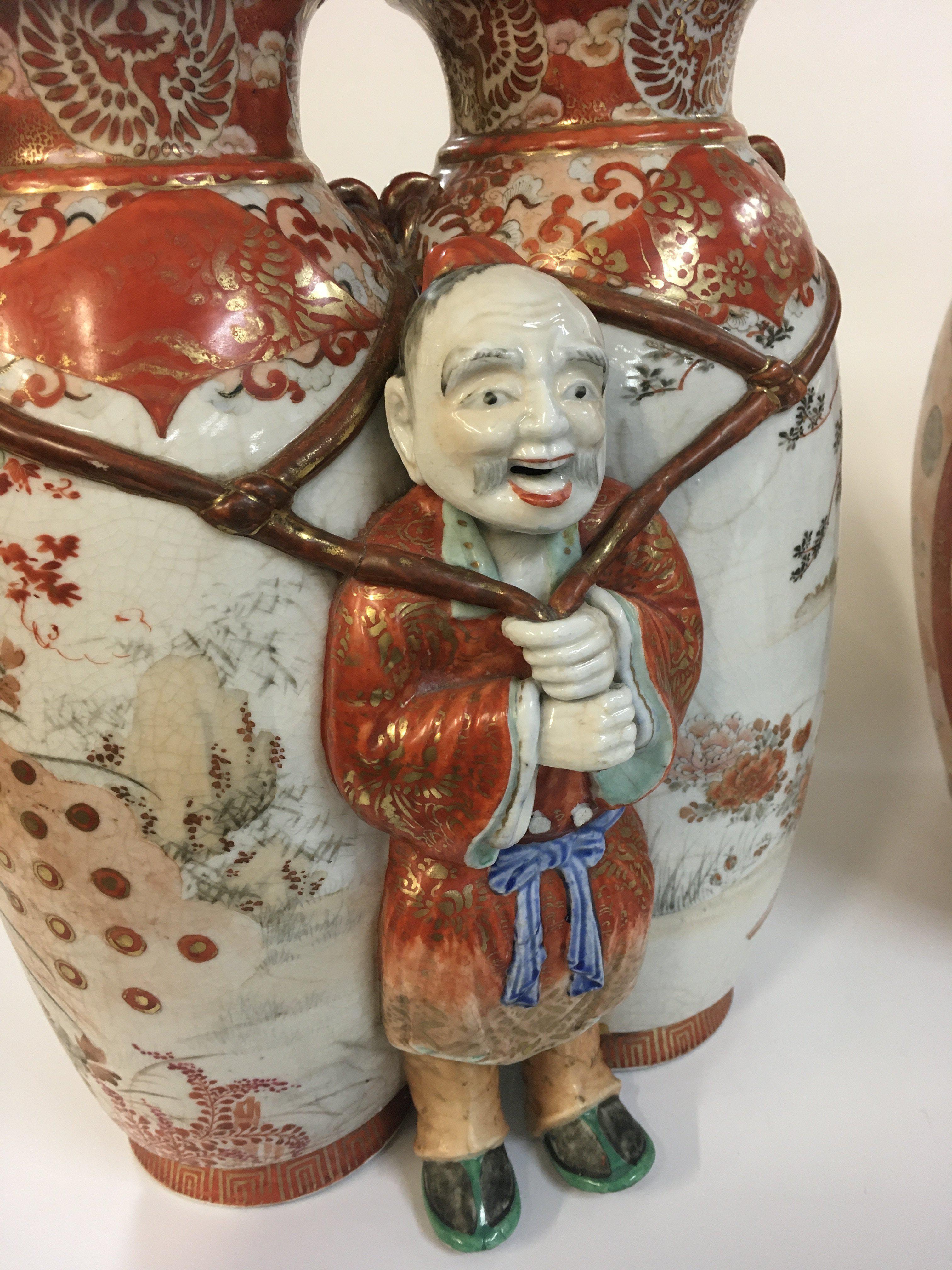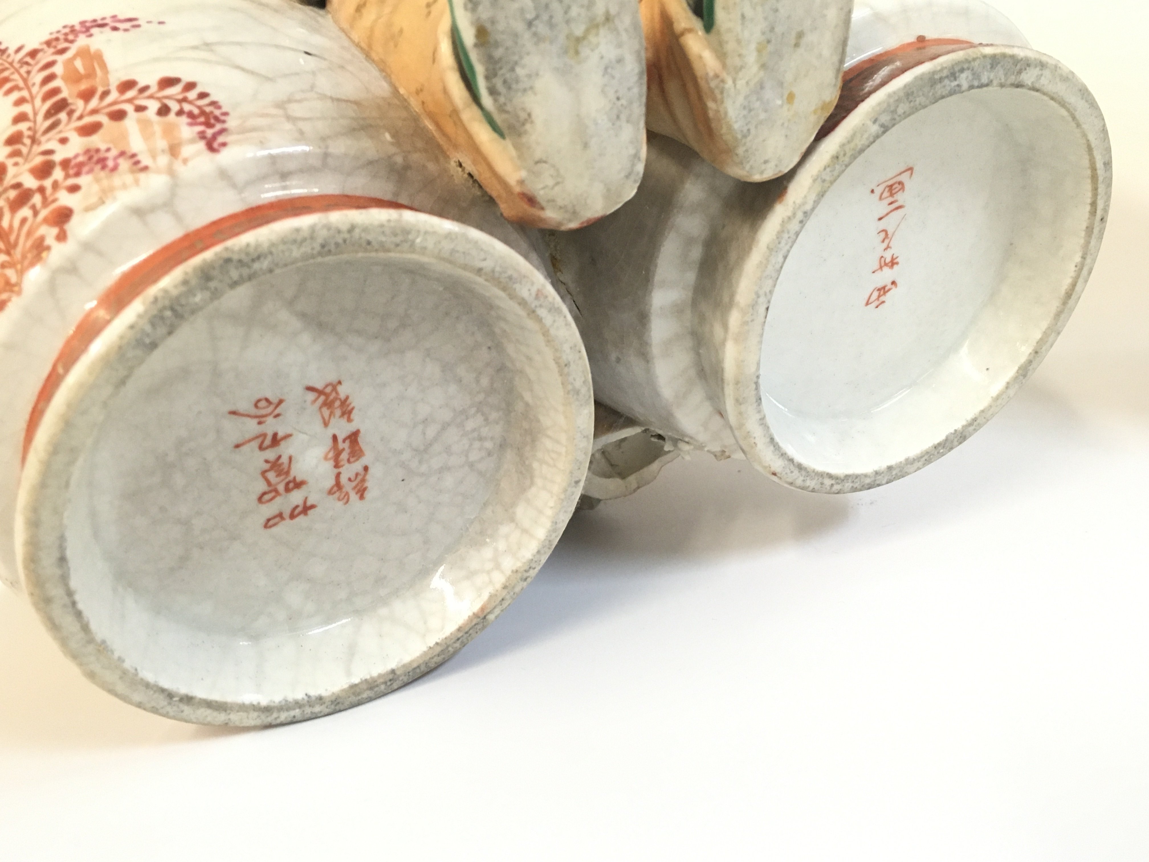 Japanese Kutani vases. Damage as seen. 26 and 23cm tall . This lot cannot be posted