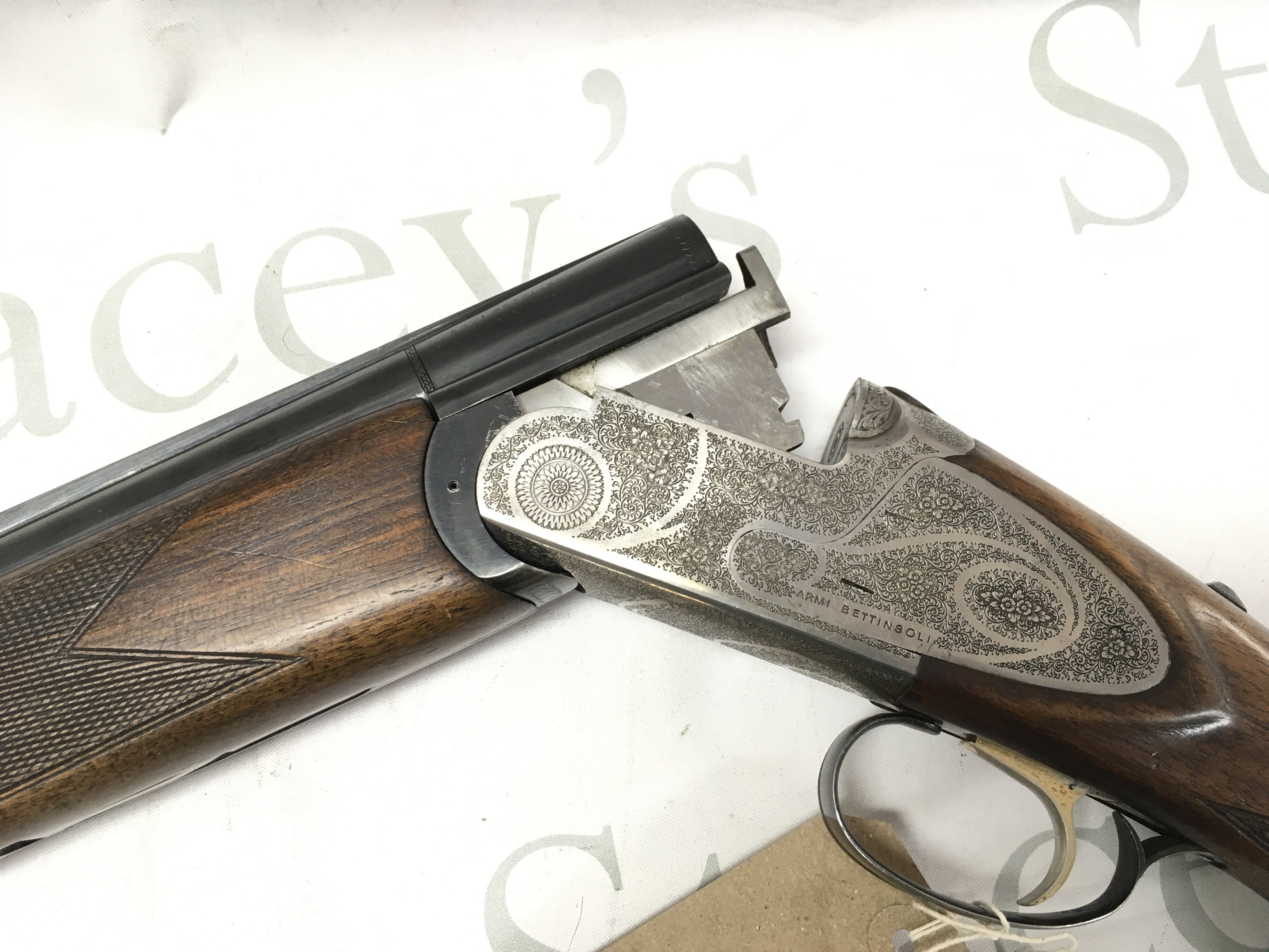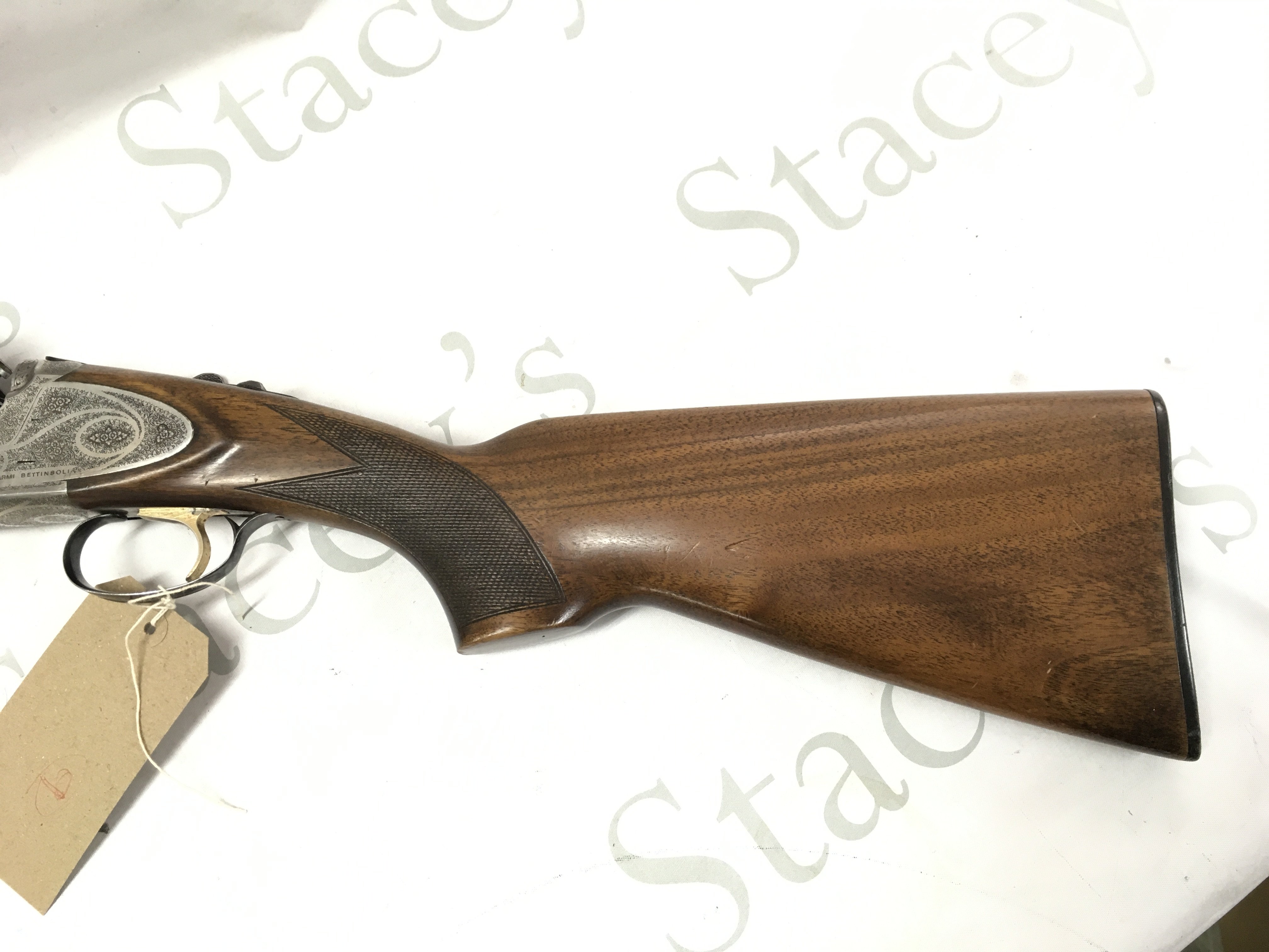 A 12 gauge over under shotgun by ARMI Bettinsoli. Single trigger multi choke. 28 barrel length and 44.5 inches overall. Serial number 63750 PLEASE NOTE THAT A SHOTGUN LICENSE IS REQUIRED TO PURCHASE THIS ITEM. COLLECTION AND VIEWING BY APPOINTMENT ONLY.
