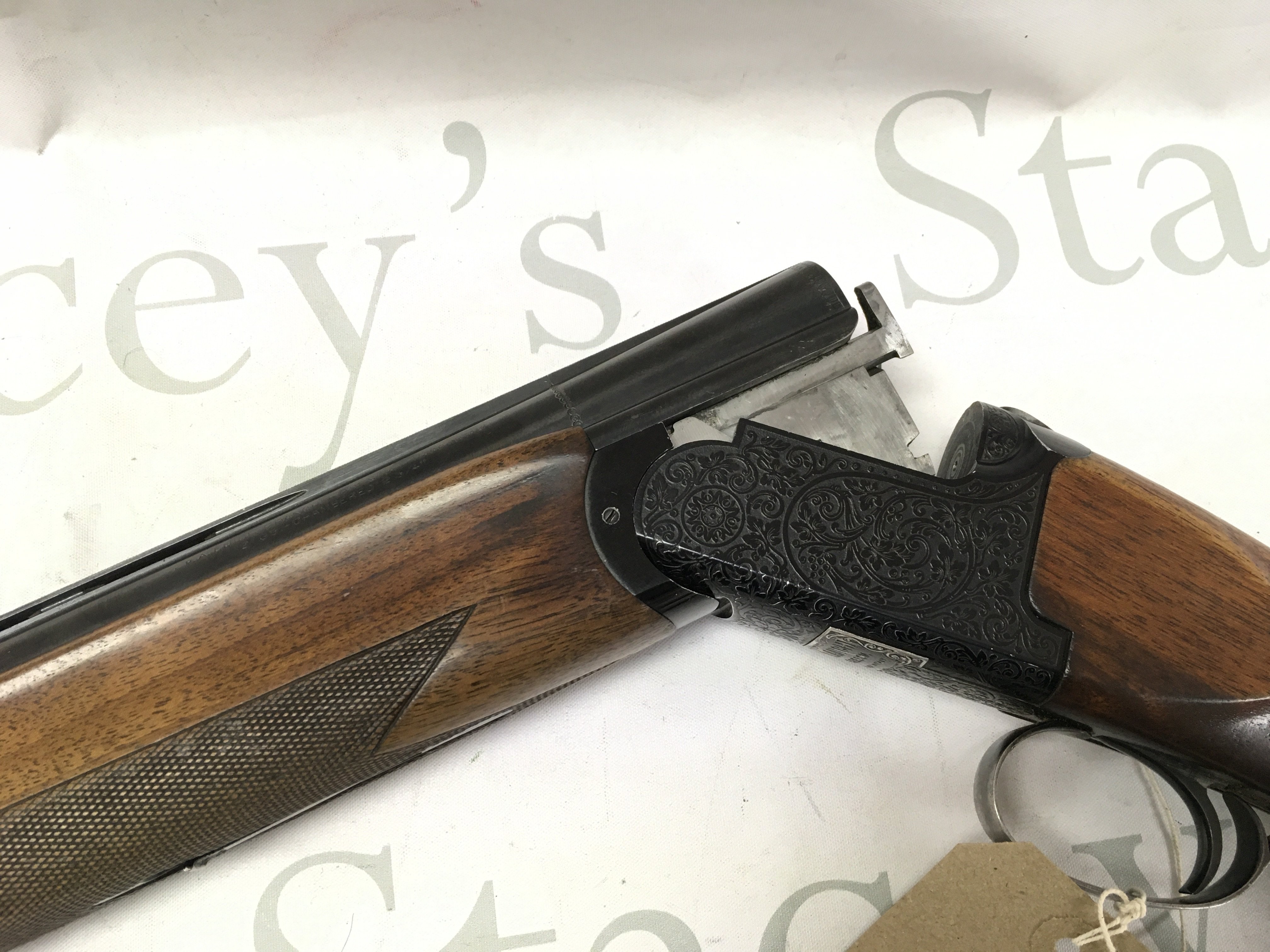 A 12 gauge over under shotgun by Franchi. Single trigger. 27 barrel length and 44 inches overall. Serial number 4102368 PLEASE NOTE THAT A SHOTGUN LICENSE IS REQUIRED TO PURCHASE THIS ITEM. COLLECTION AND VIEWING BY APPOINTMENT ONLY.