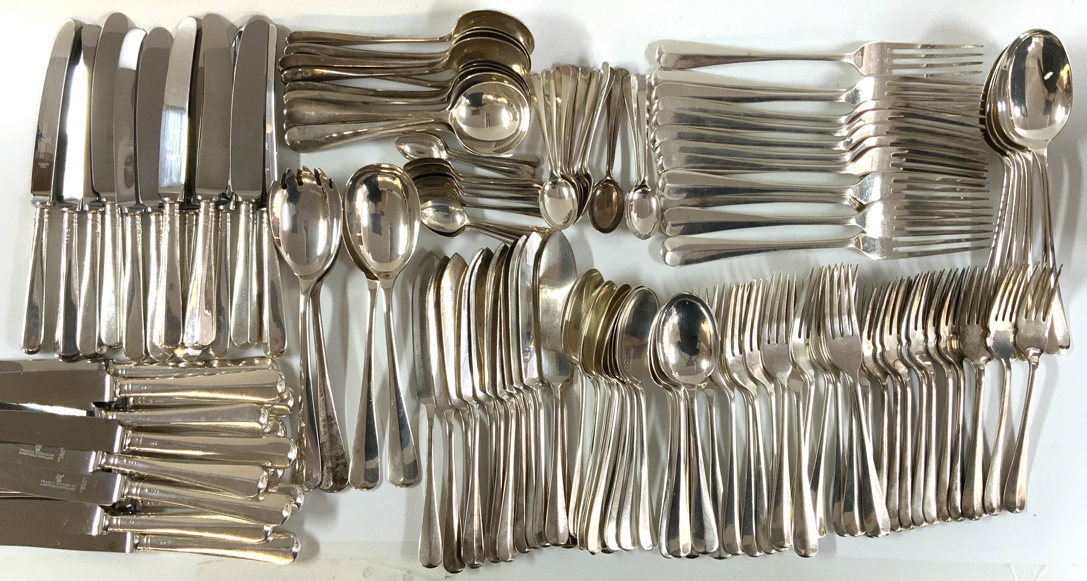 An extensive heavy hallmarked silver cutlery set, approx 5.5kg total. Marks for Francis Howard, Sheffield 1970.