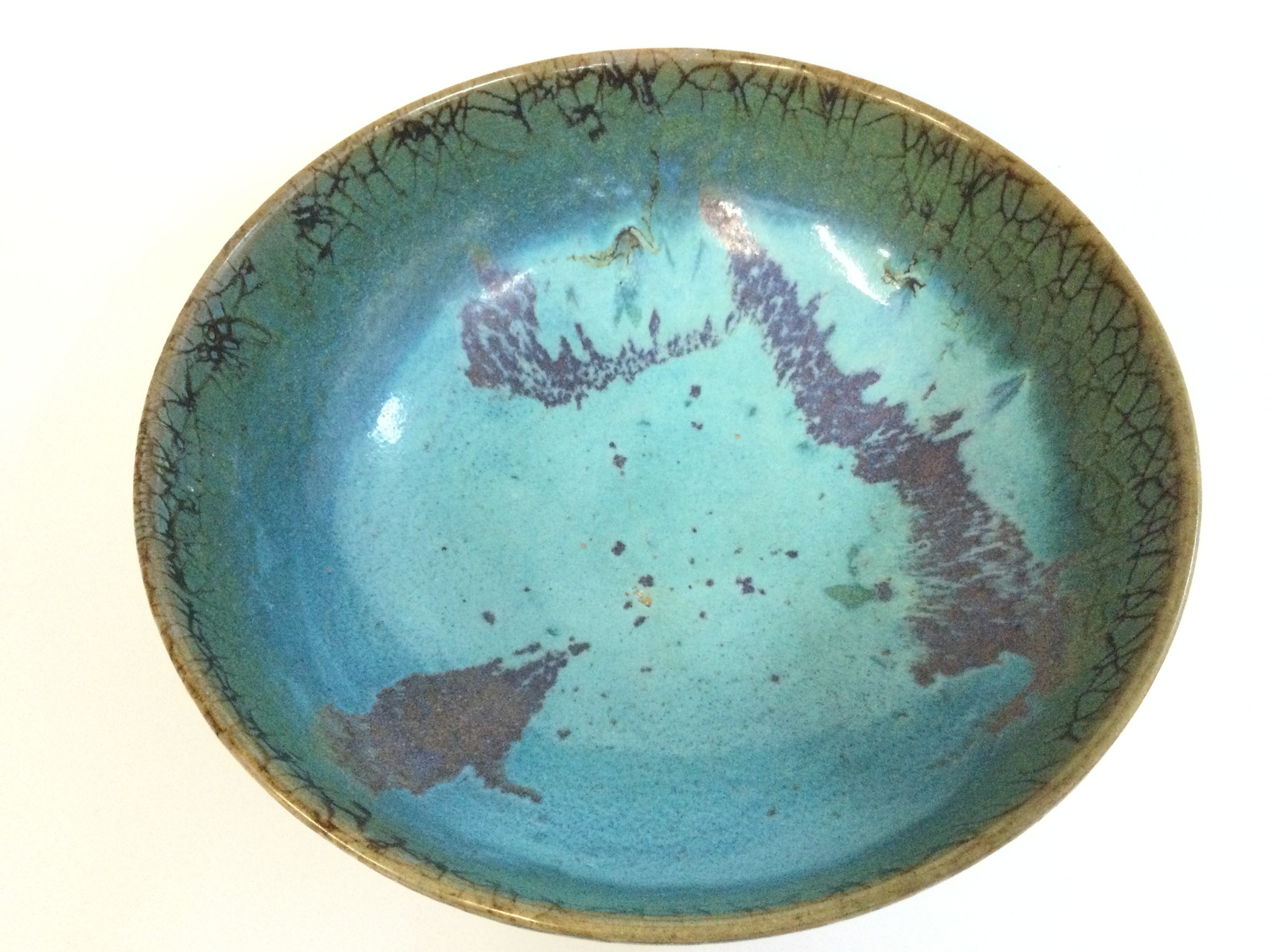 A large Chinese Junyao bowl with purple splashes . 24.5cm wide.