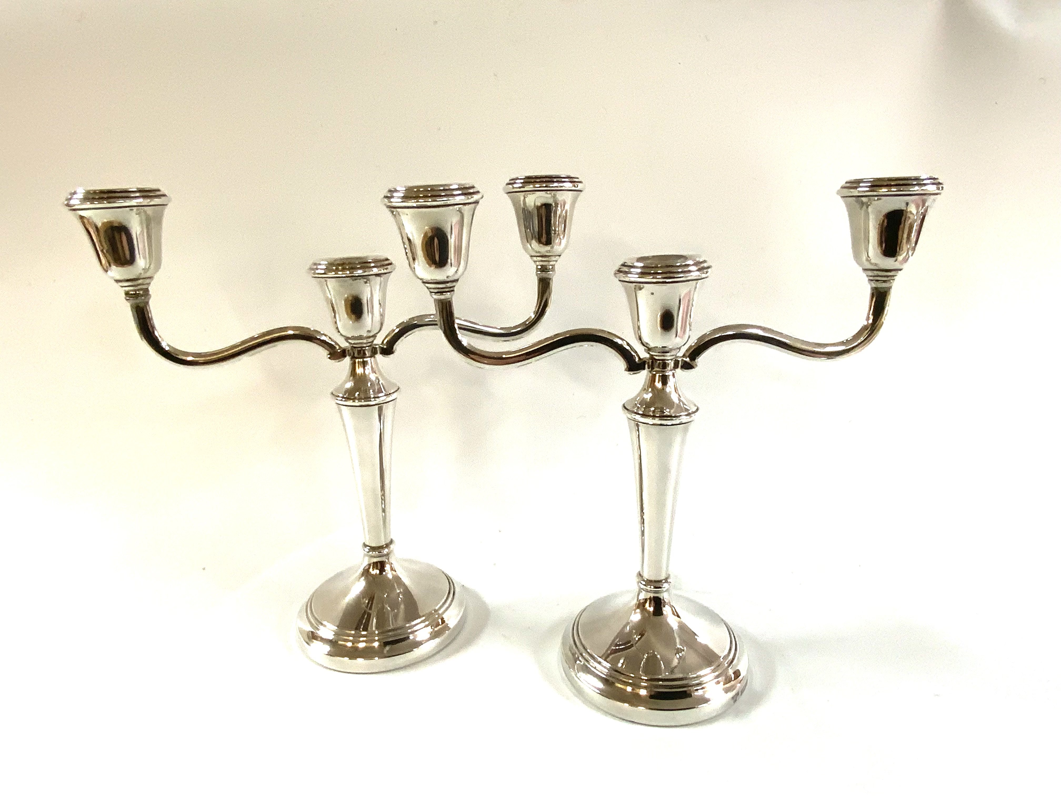 A pair of hallmarked silver candelabra, Birmingham 1970, A Chick & Sons Ltd.