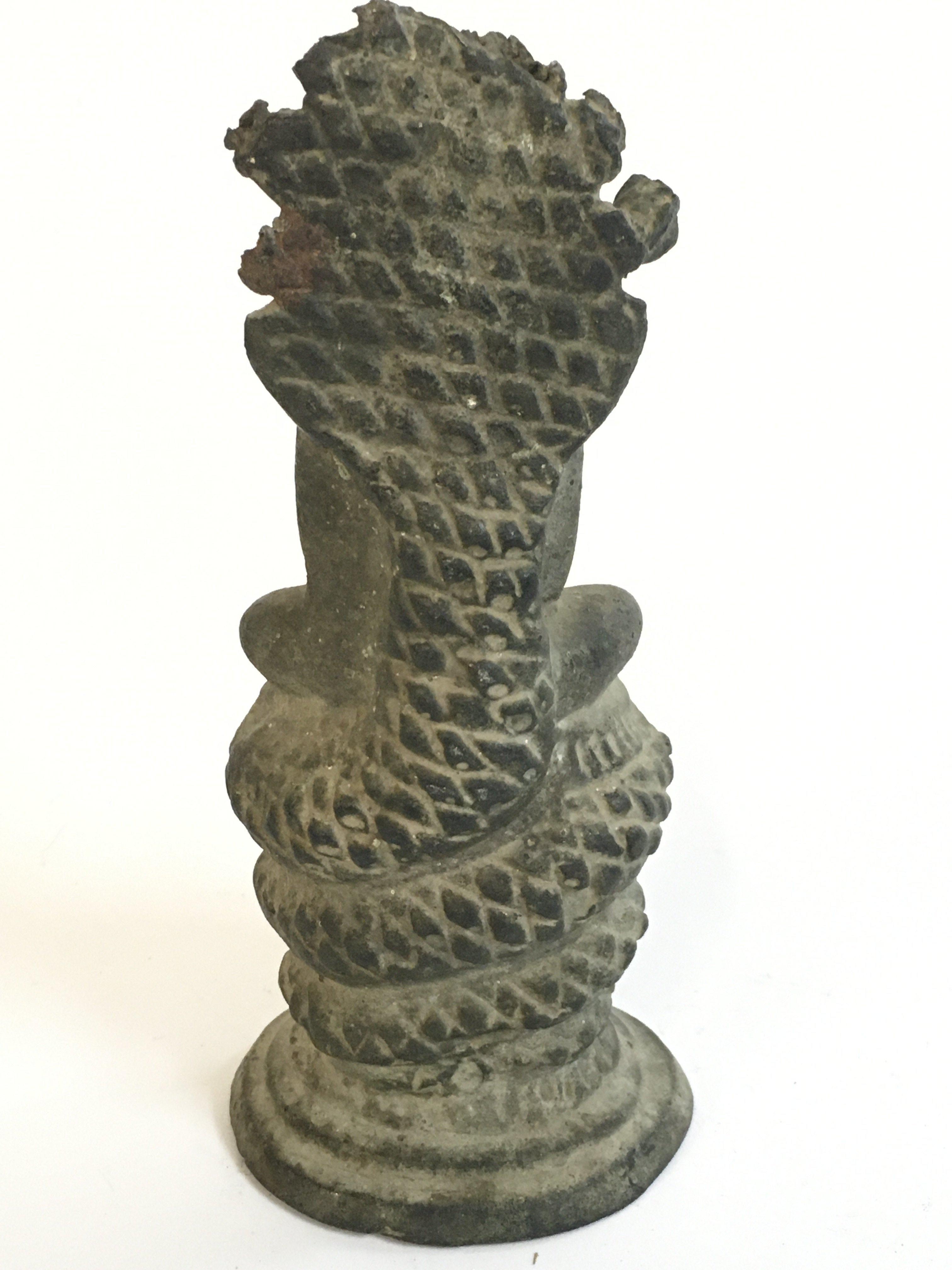 A Thai Seated heavy bronze Naga Buddha . 14cm tall. Postage category A