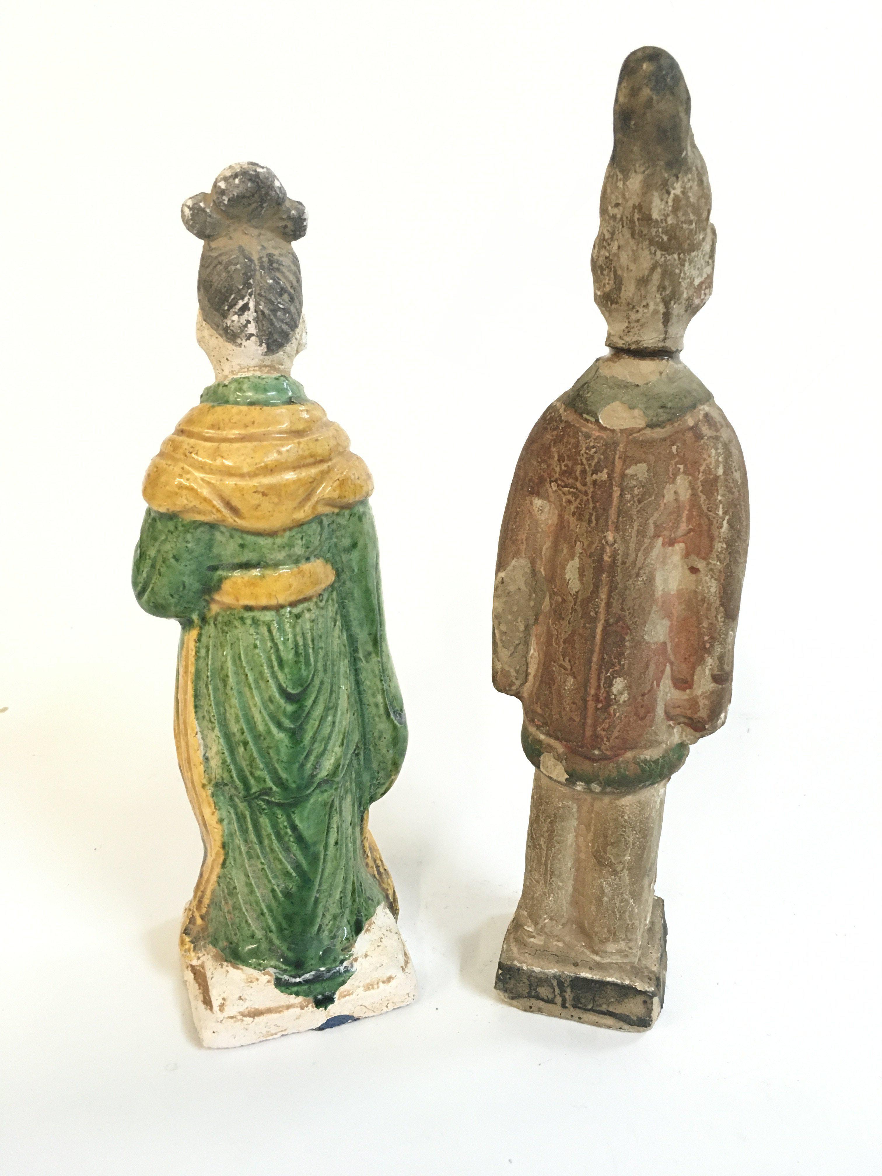 Two Chinese pottery tomb figures 19 and 21cm tall