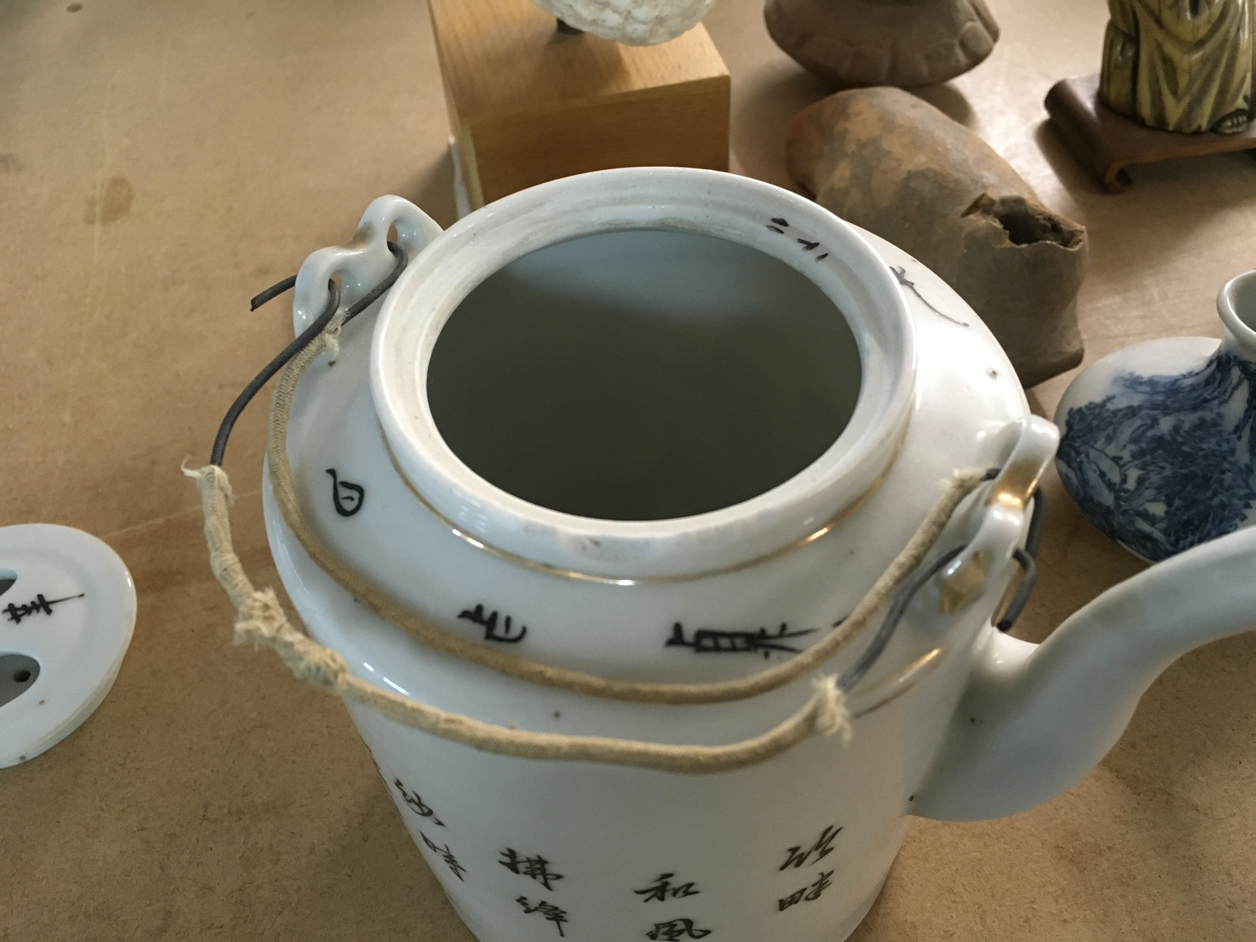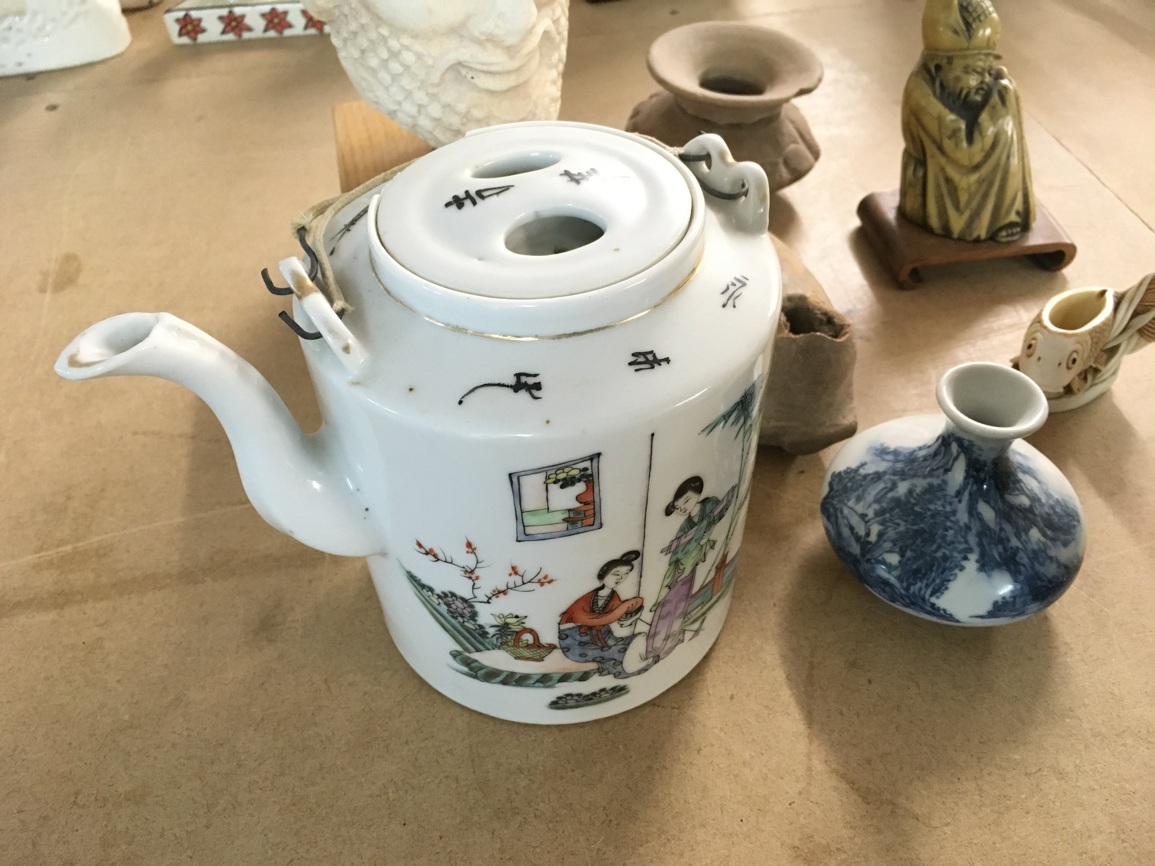 A Chinese blue and white porcelain bowl with lid along with other oriental items. Postage D. NO RESERVE