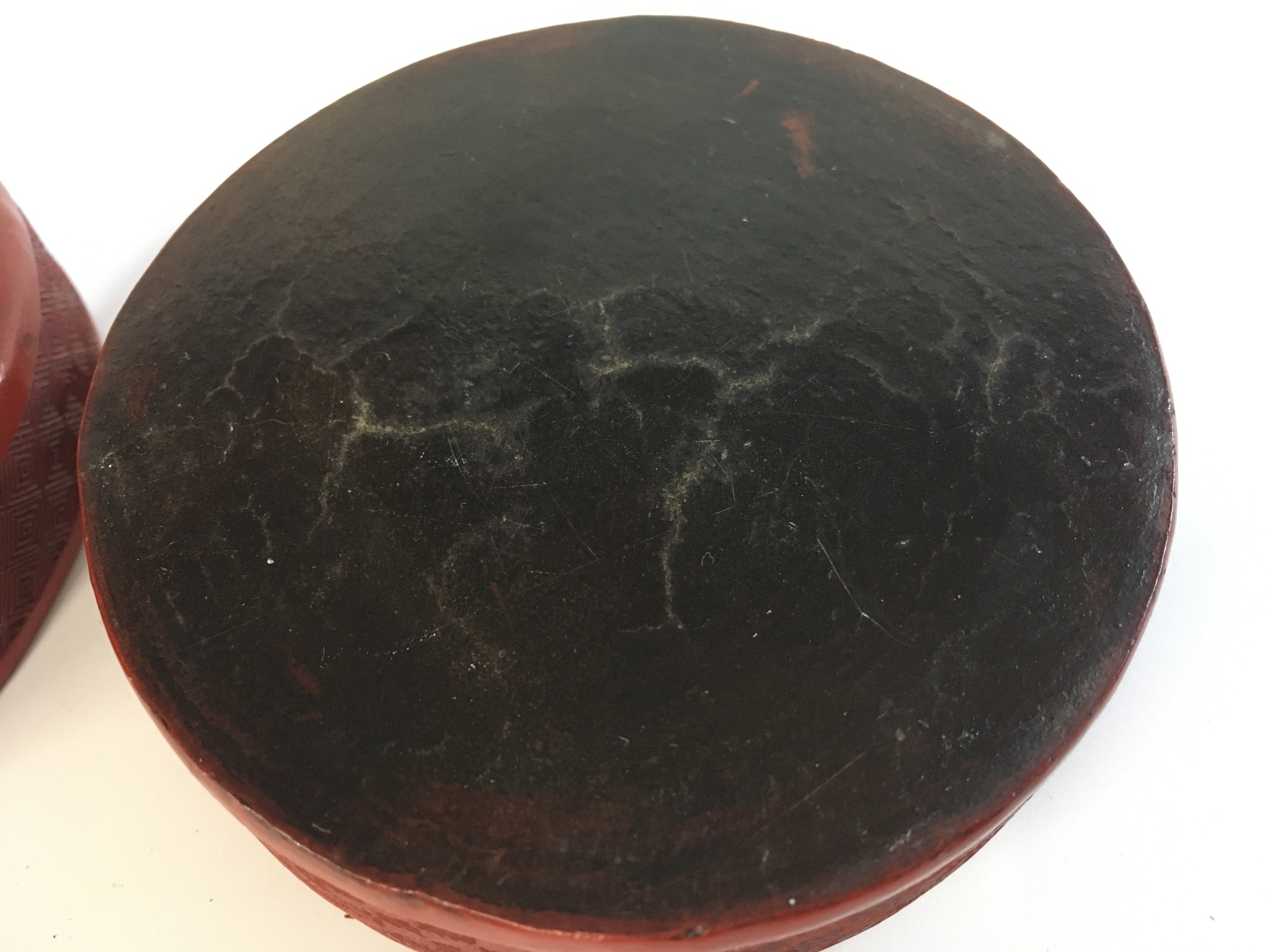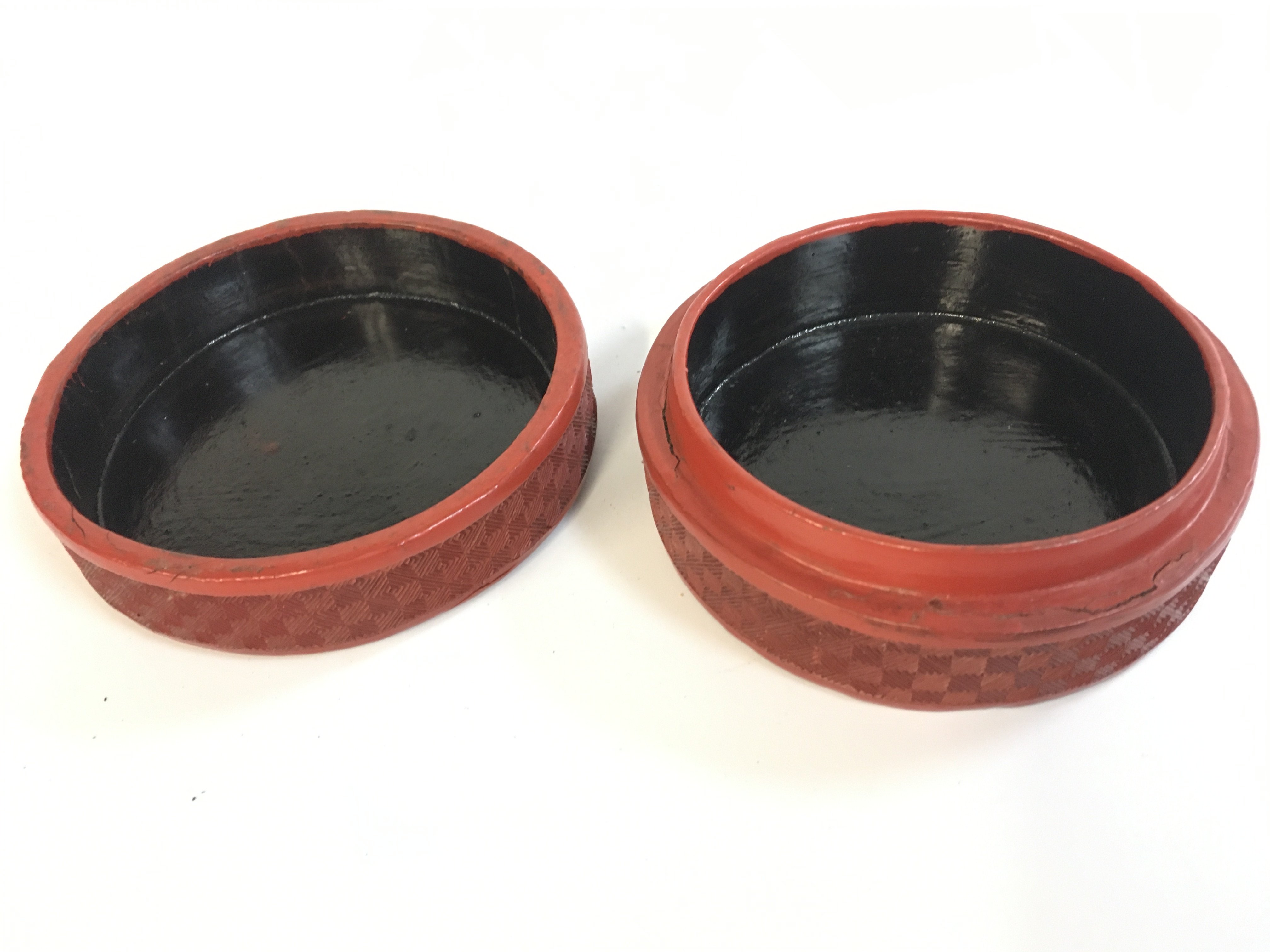 A Chinese red cinnabar box, 10cm wide 5cm tall. Postage category A