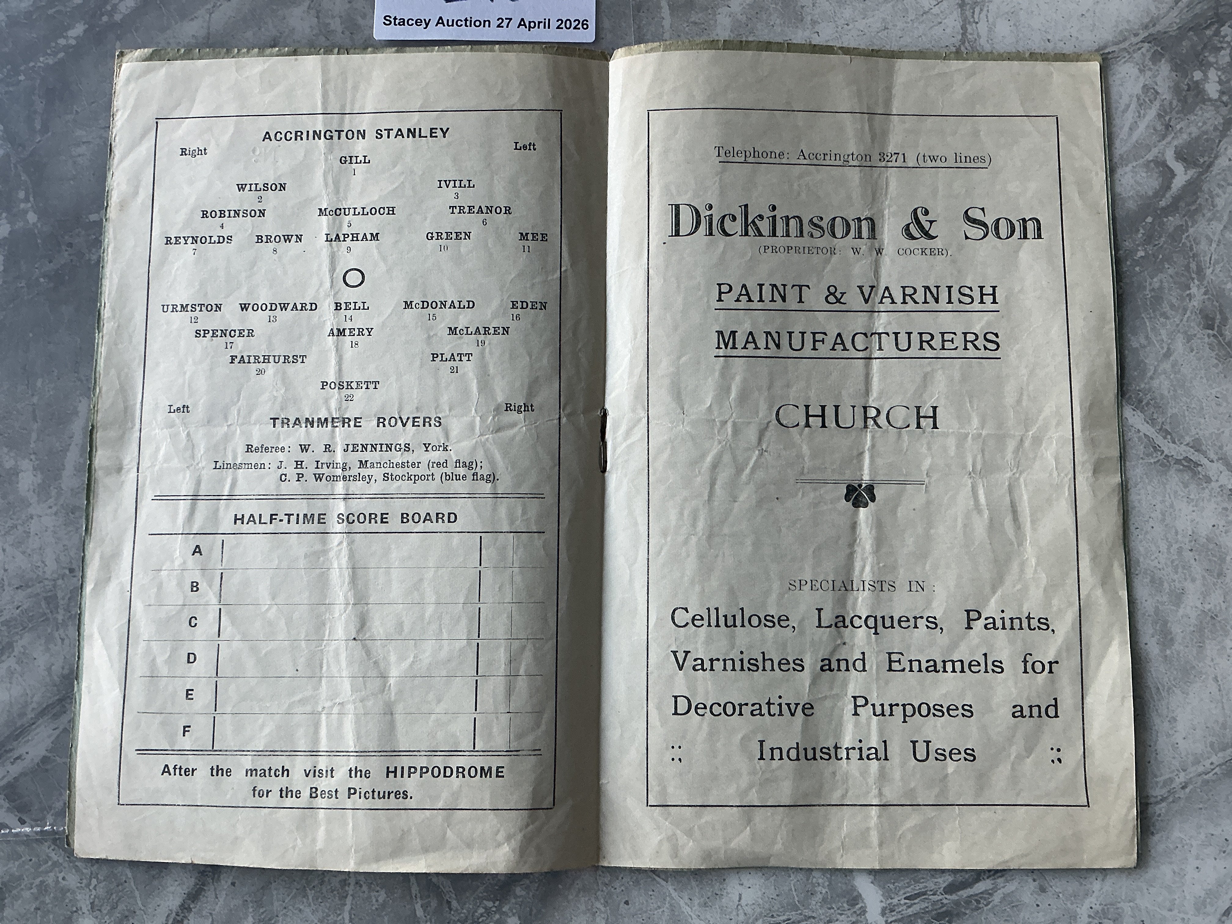 1935 - 1936 Accrington Stanley v Tranmere Football Programme: Good condition with light folding. No team changes.