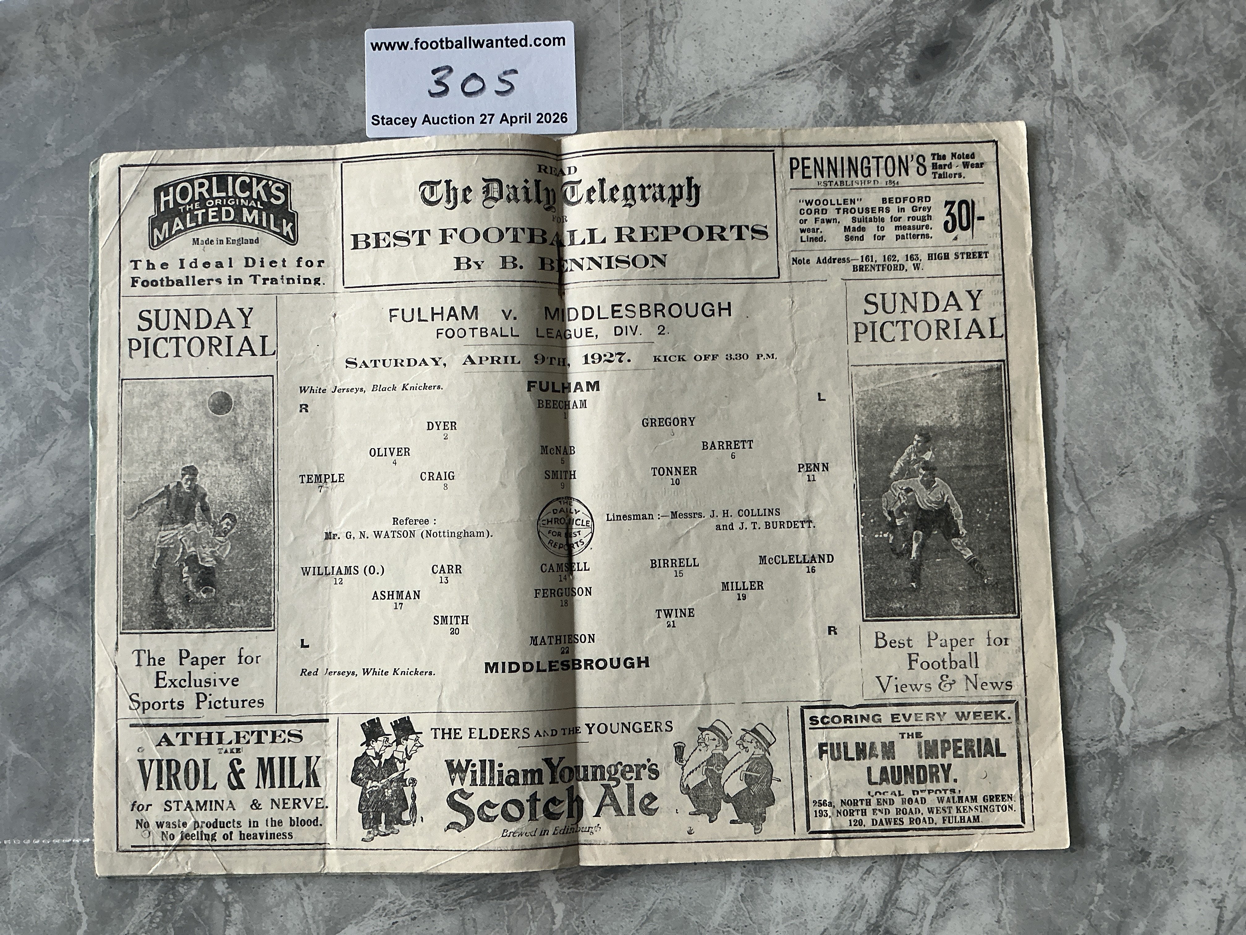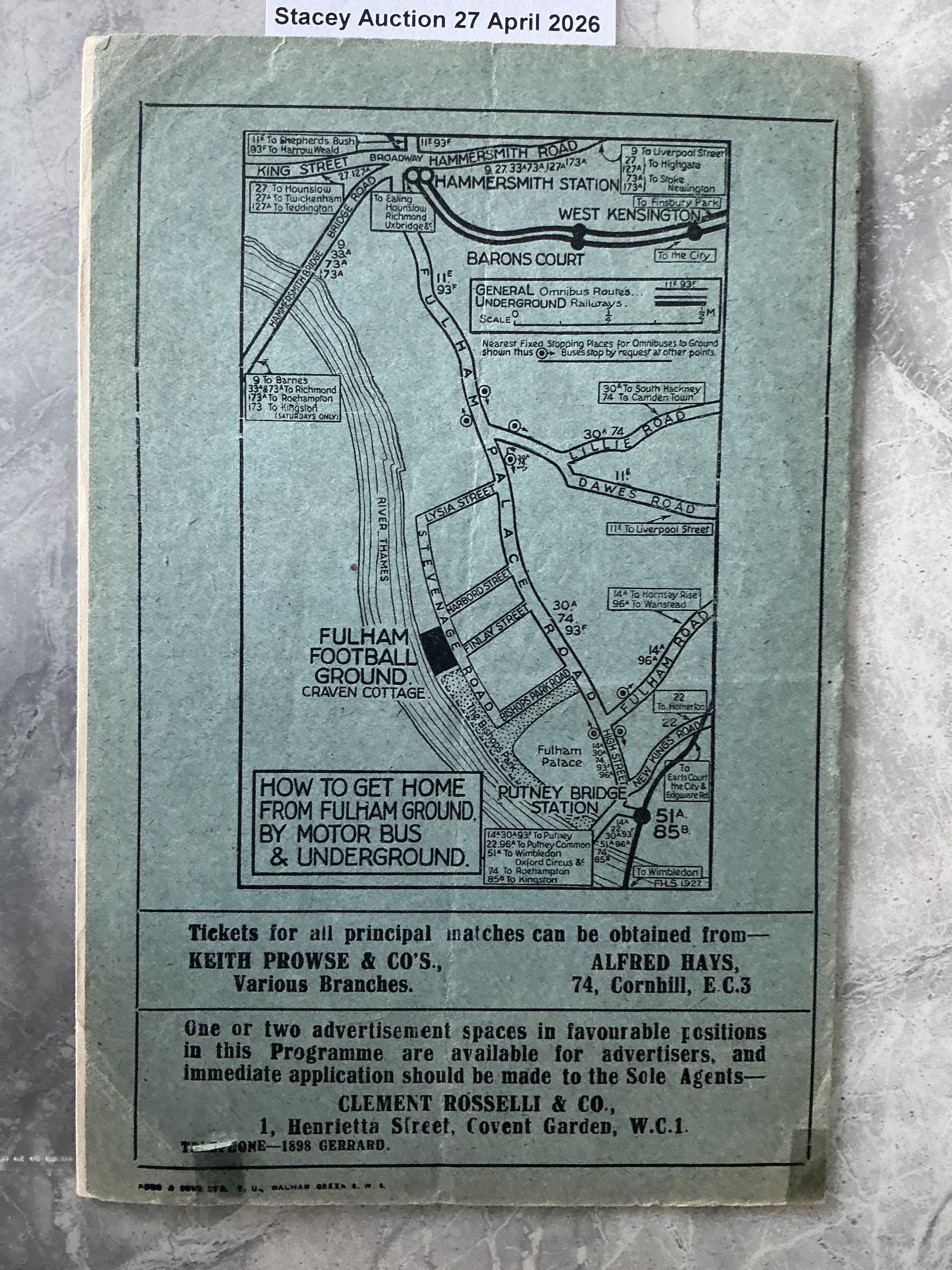 1926 - 1927 Fulham v Middlesbrough Football Programme: Good condition with no team changes. Fold and couple of tiny pieces of tape to rear.