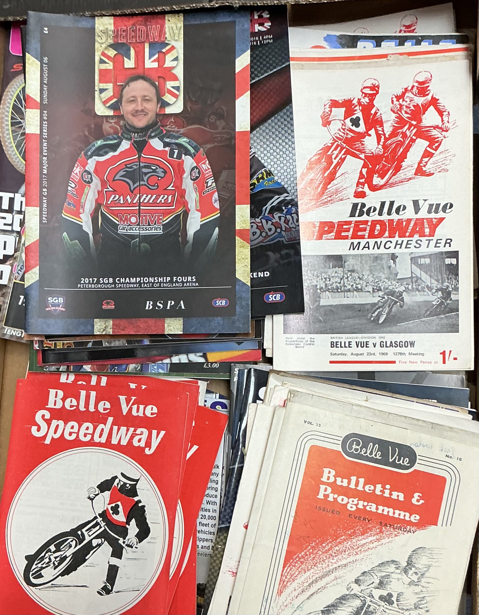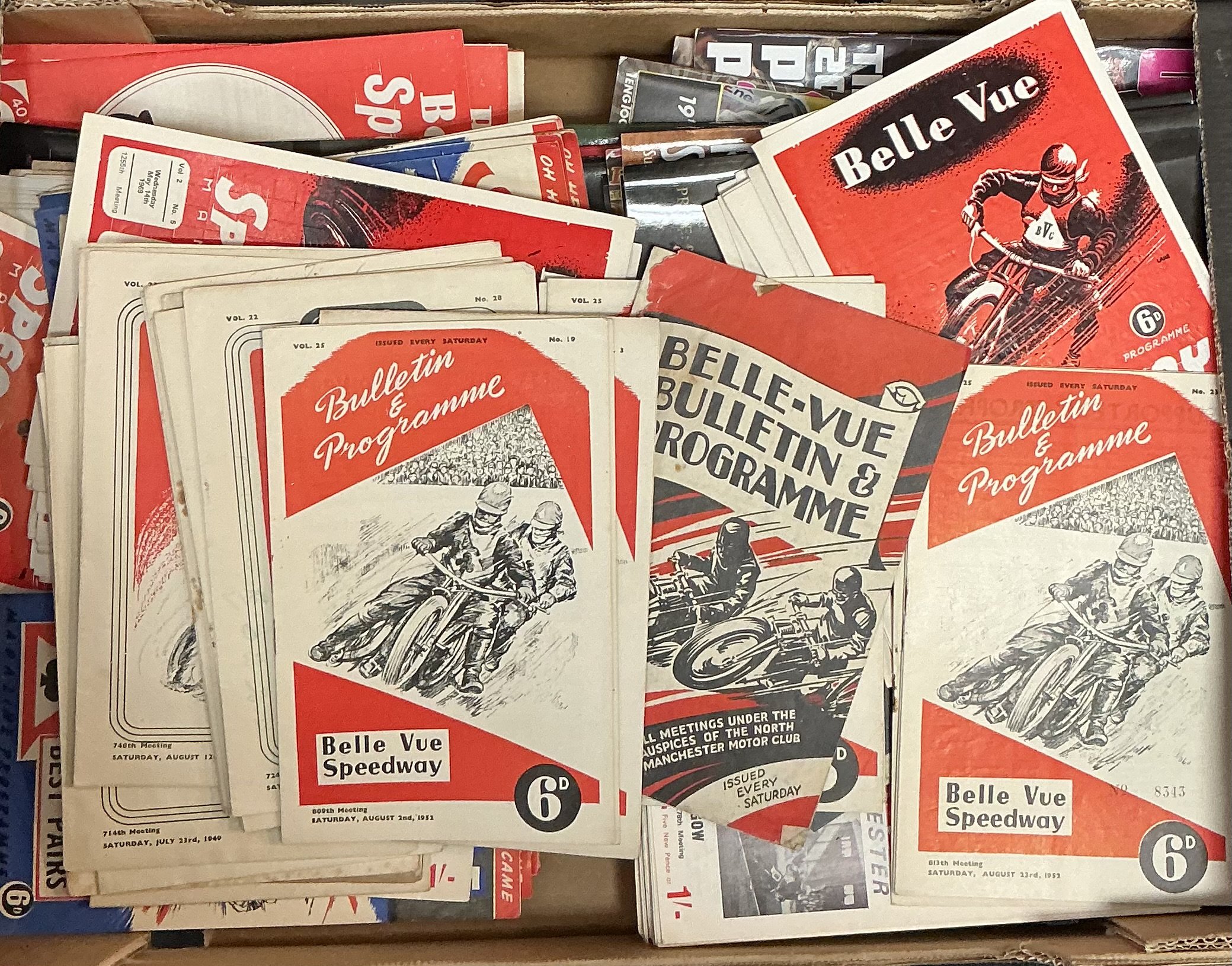 Kings Lynn + Belle Vue Speedway Programmes: Mainly modern although a quantity of Belle Vue from the 50s and some earlier. (2 boxes)