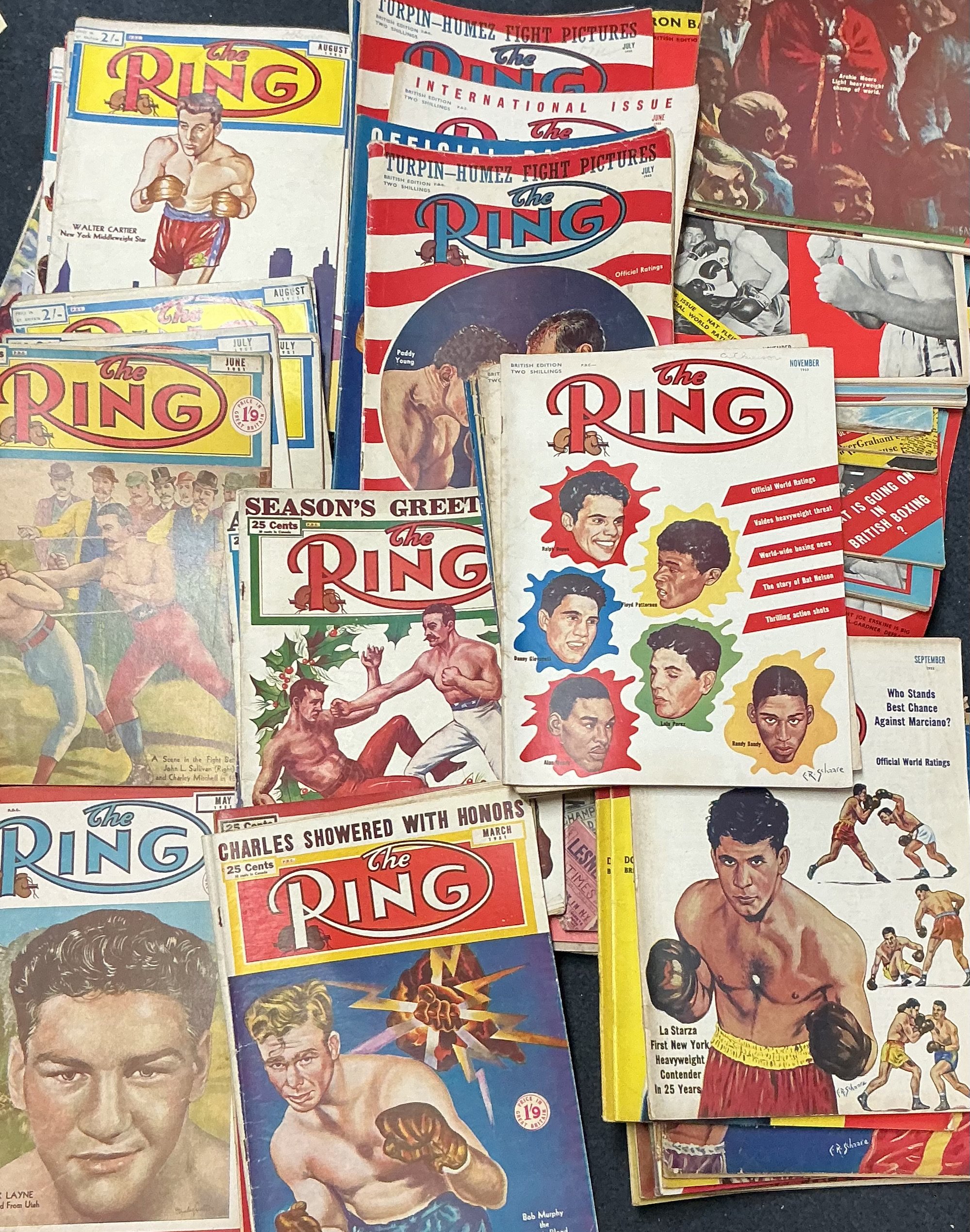 1950s Ring Boxing Magazines: Both British and American editions in good condition with minor duplication, (est 70)
