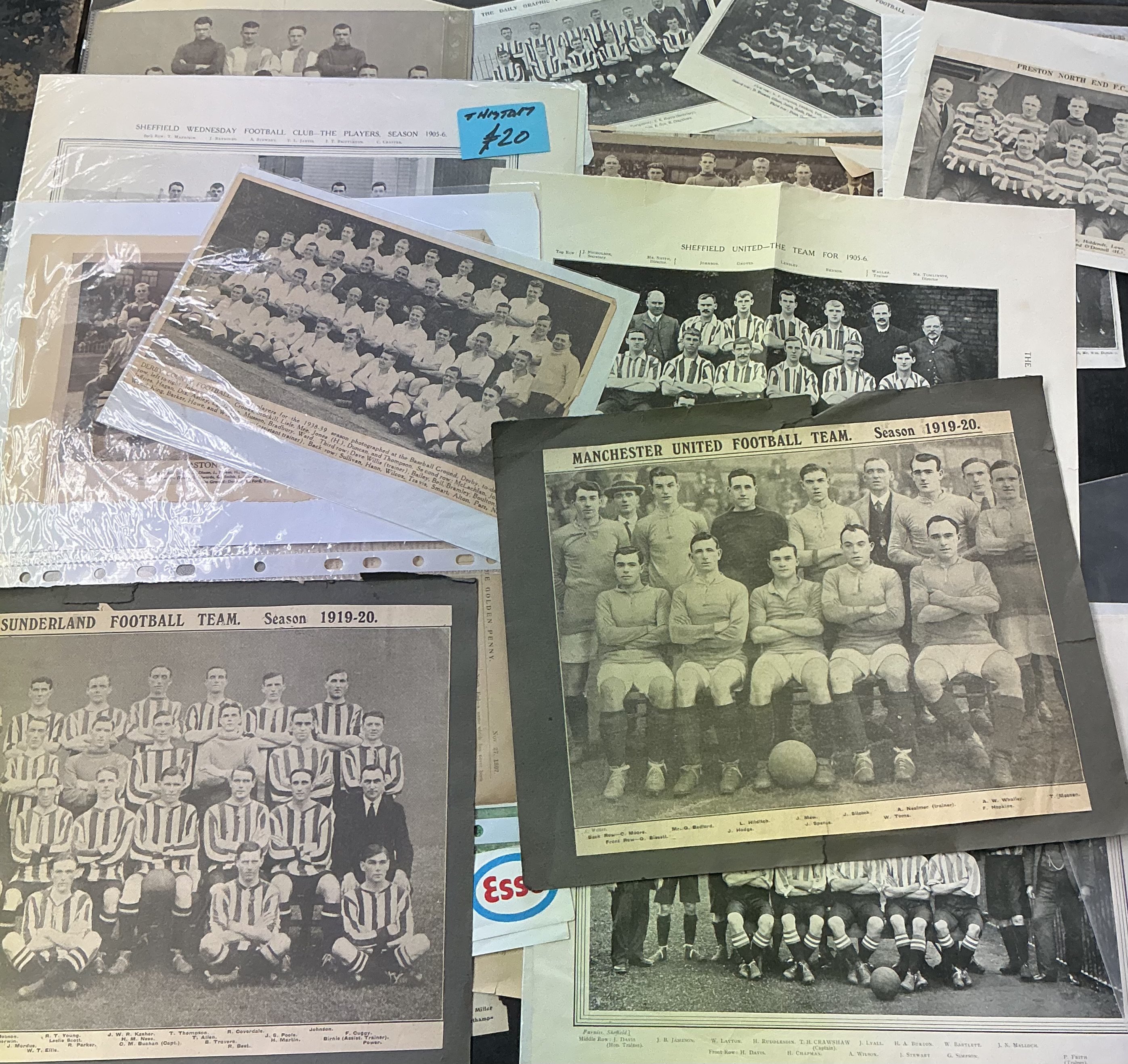 Pre War Football Team Group Pictures: Taken from various publications including Daily Graphic and The Book Of Football. Various sizes to include 1905 - 06 Sheffield Wednesday, Sheffield United, 1904 - 05 Middlesbrough. C/W Esso colour teams of Arsenal and Cardiff from the late 60s. (est 40)
