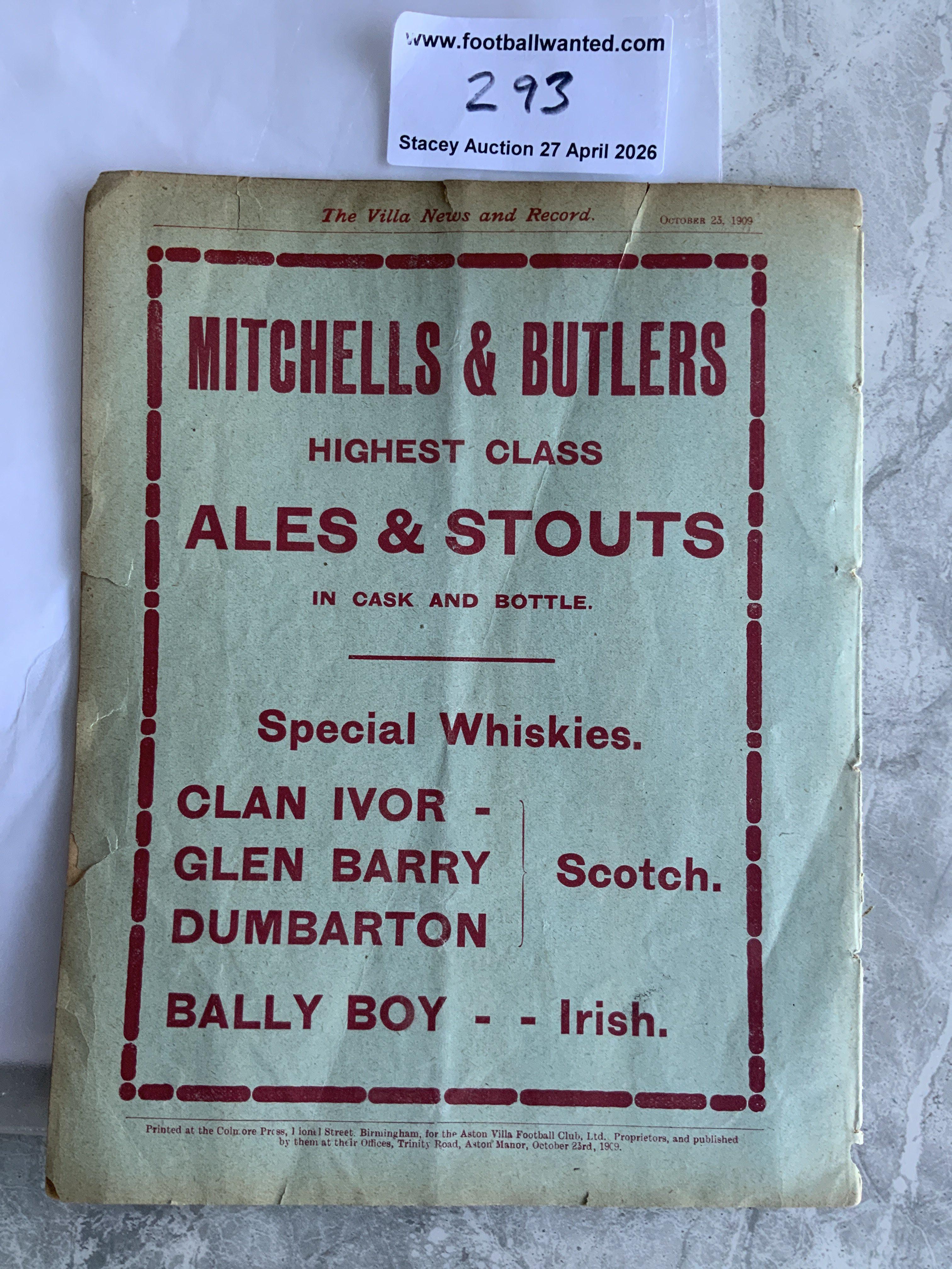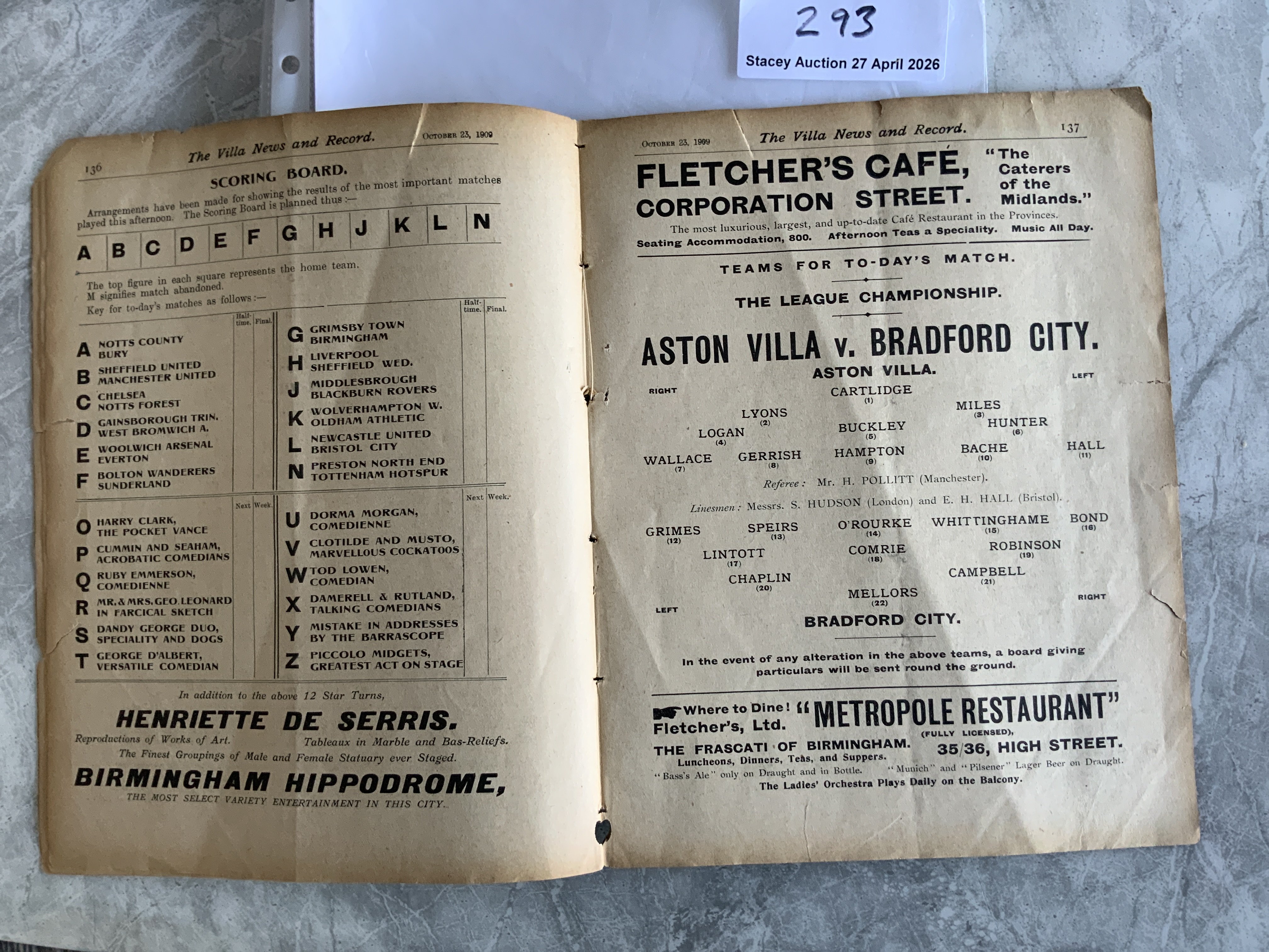 1909 - 1910 Aston Villa v Bradford City Football Programme: Fair condition ex bound division 1 programme with no team changes. Covers intact bur some tears to edges.