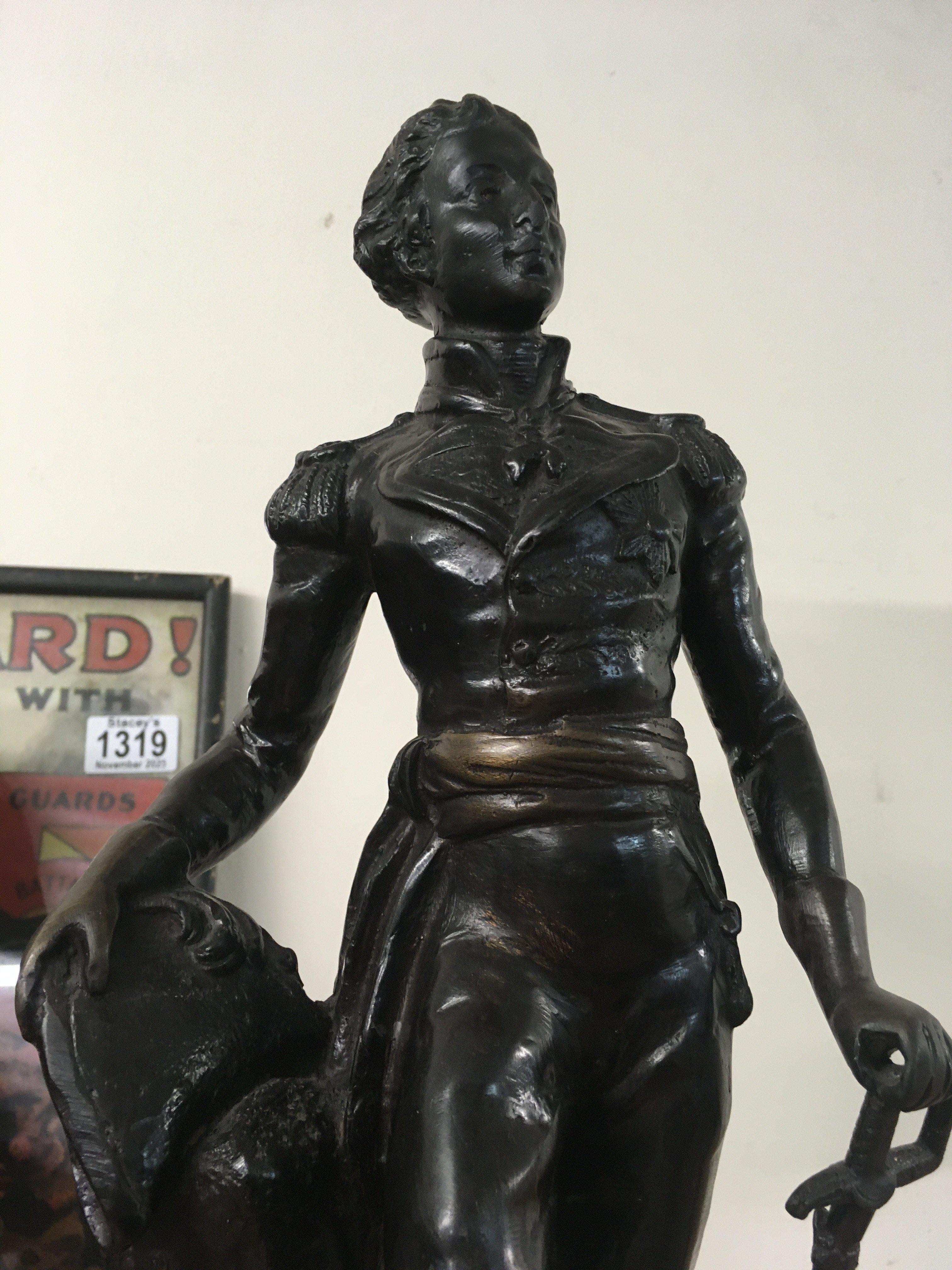 A bronzed figure in the form of Wellington on a marble base .44 cm- NO RESERVE