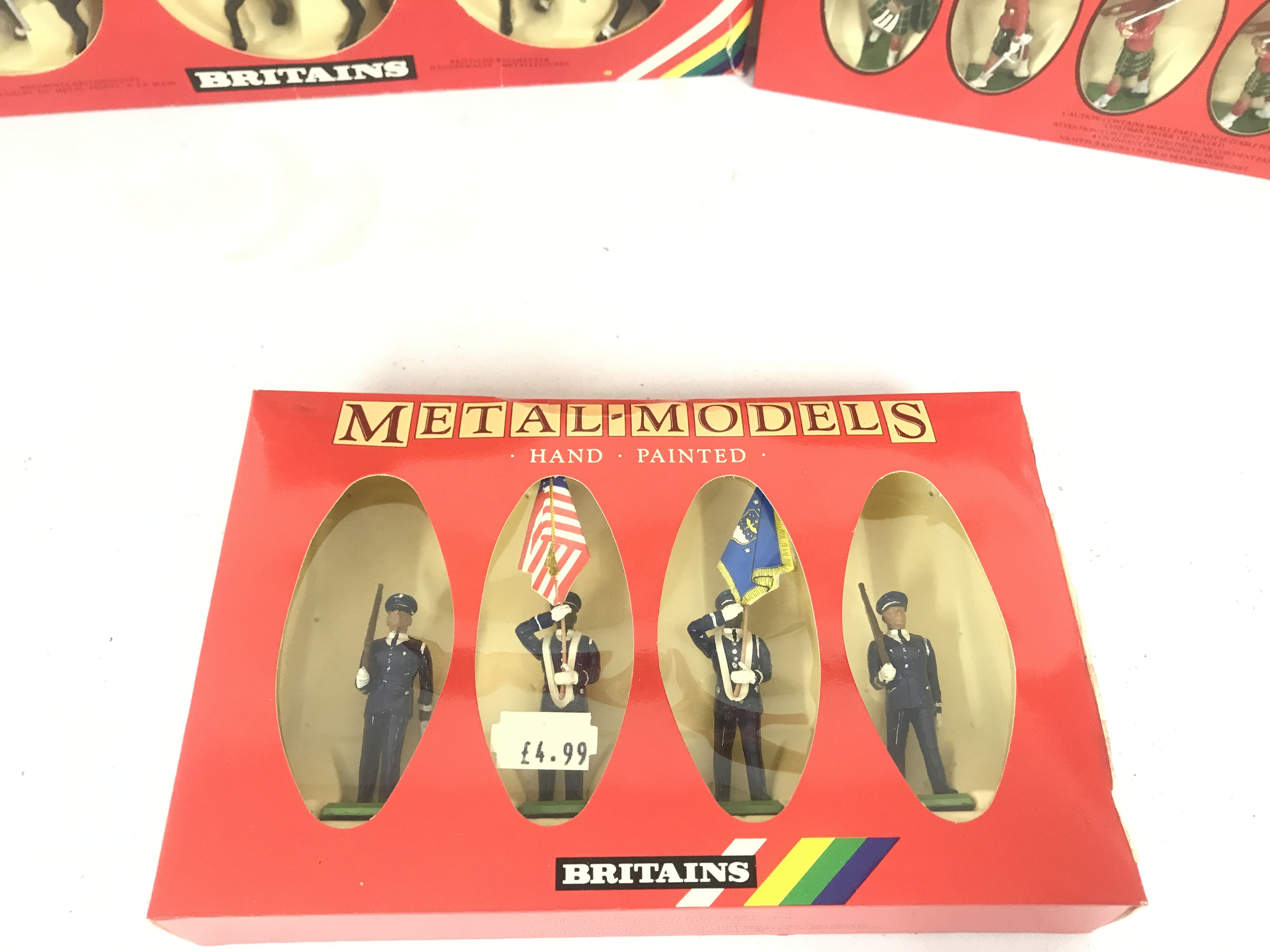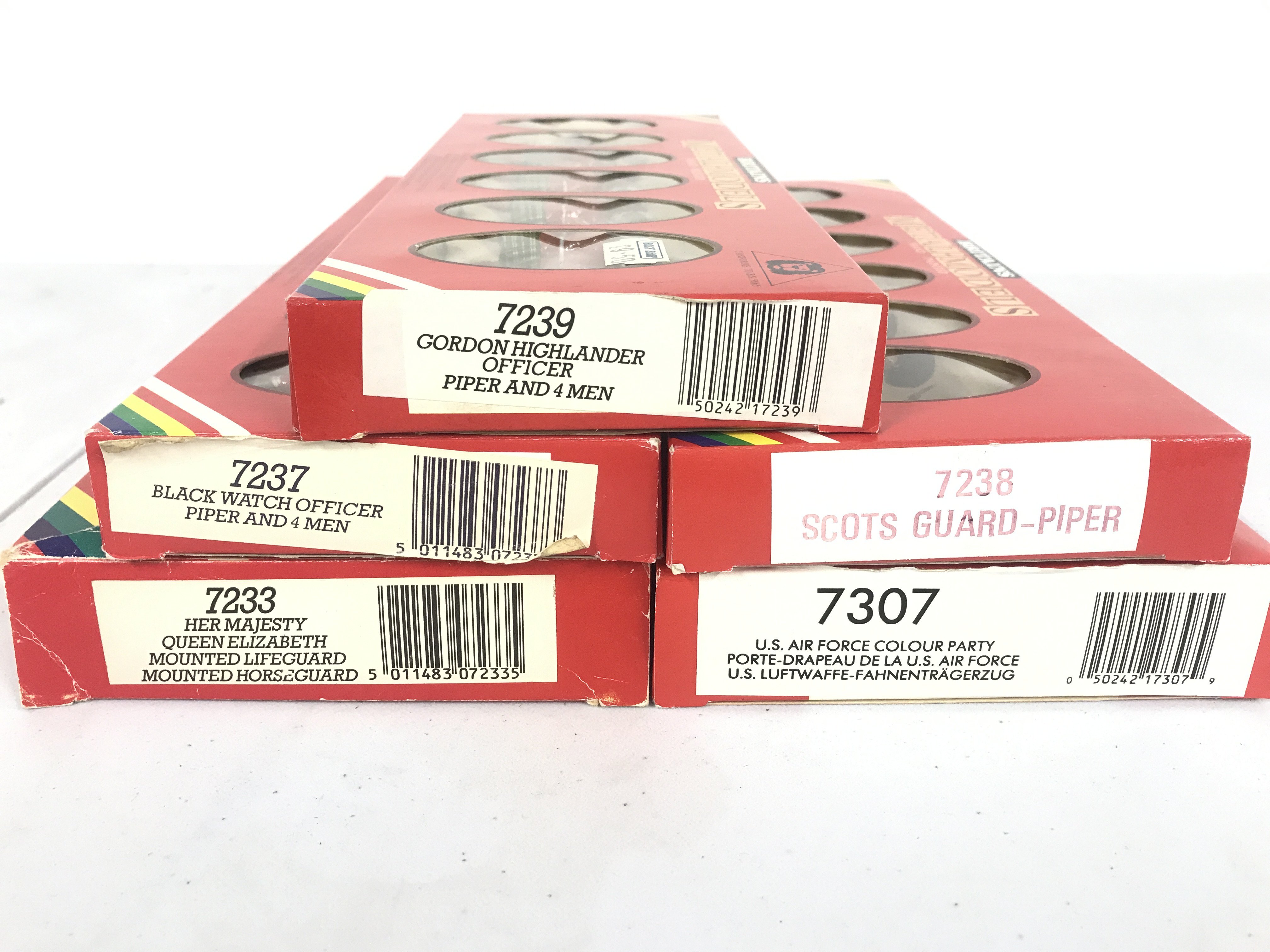 5 Boxed Britains Sets Including U.S. Air Force Colour Party #7307. Her Majesty The Queen Mounted Lifeguard #7233. Black Watch Officer Piper And Men #7237. Scots Guard-Piper #7238 And Gordon's Highlander Officer Piper With Men #7239.(5).