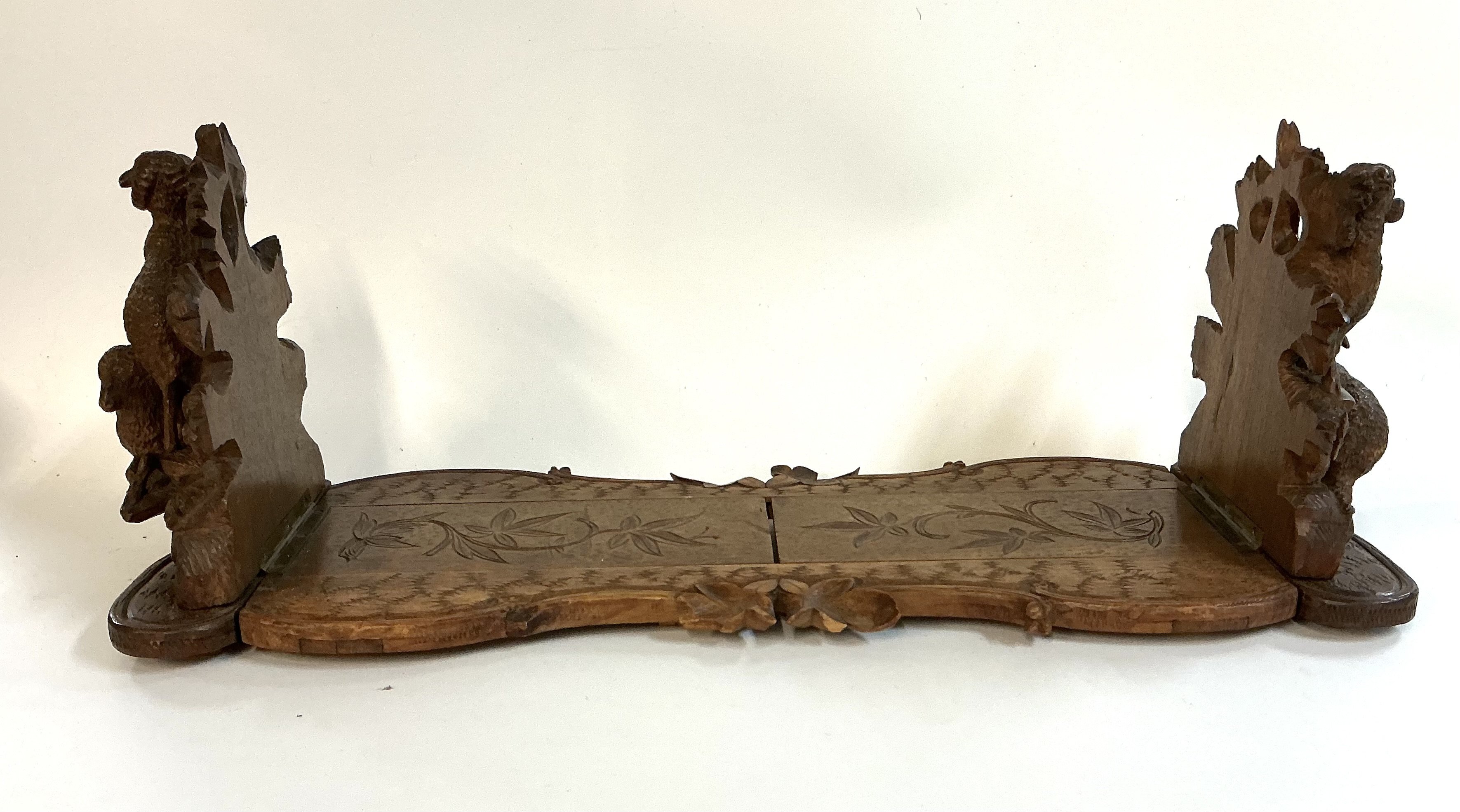 A good quality Blackforest carved extending book stand, each end carved with Rams and Ewes.