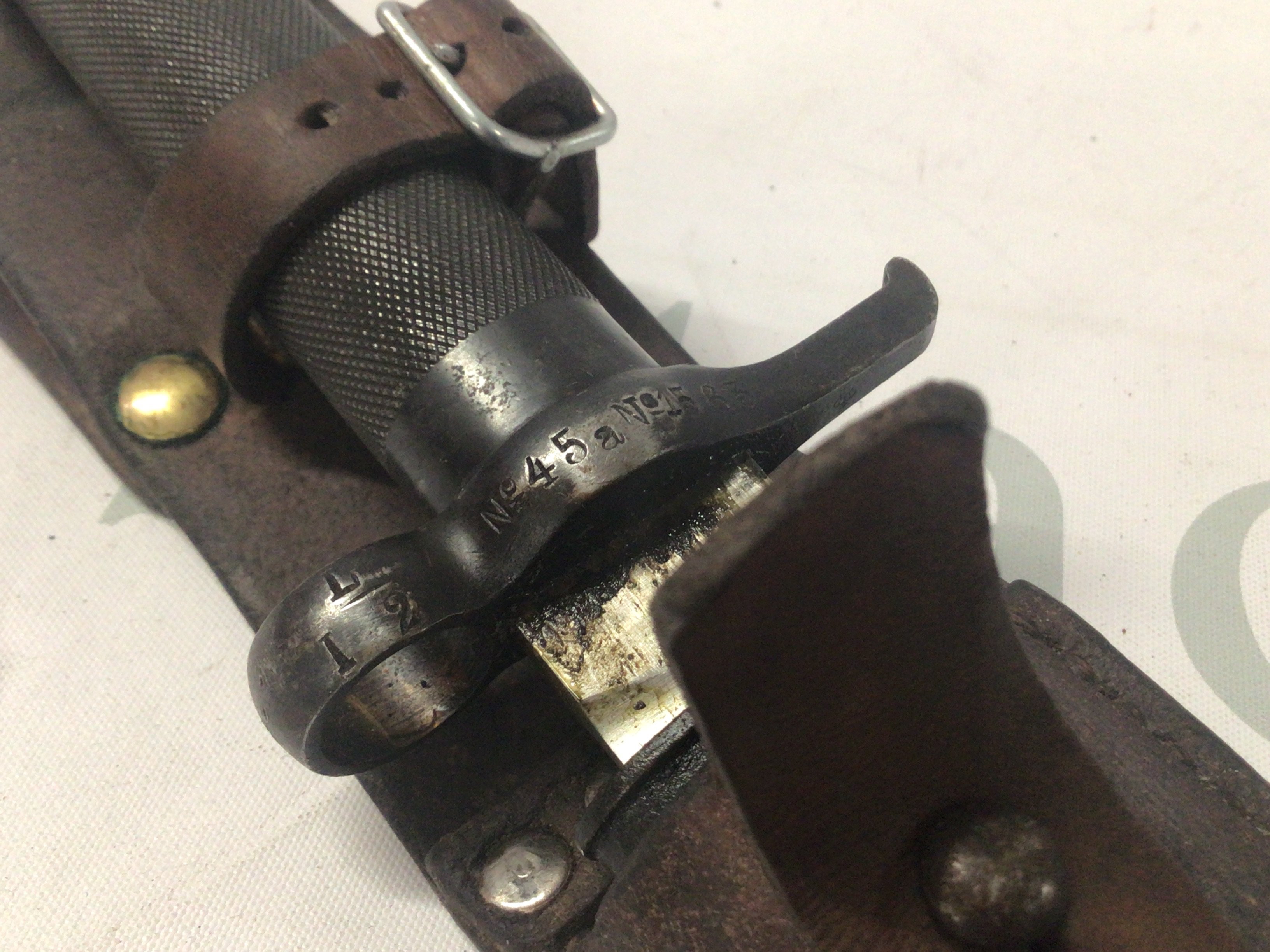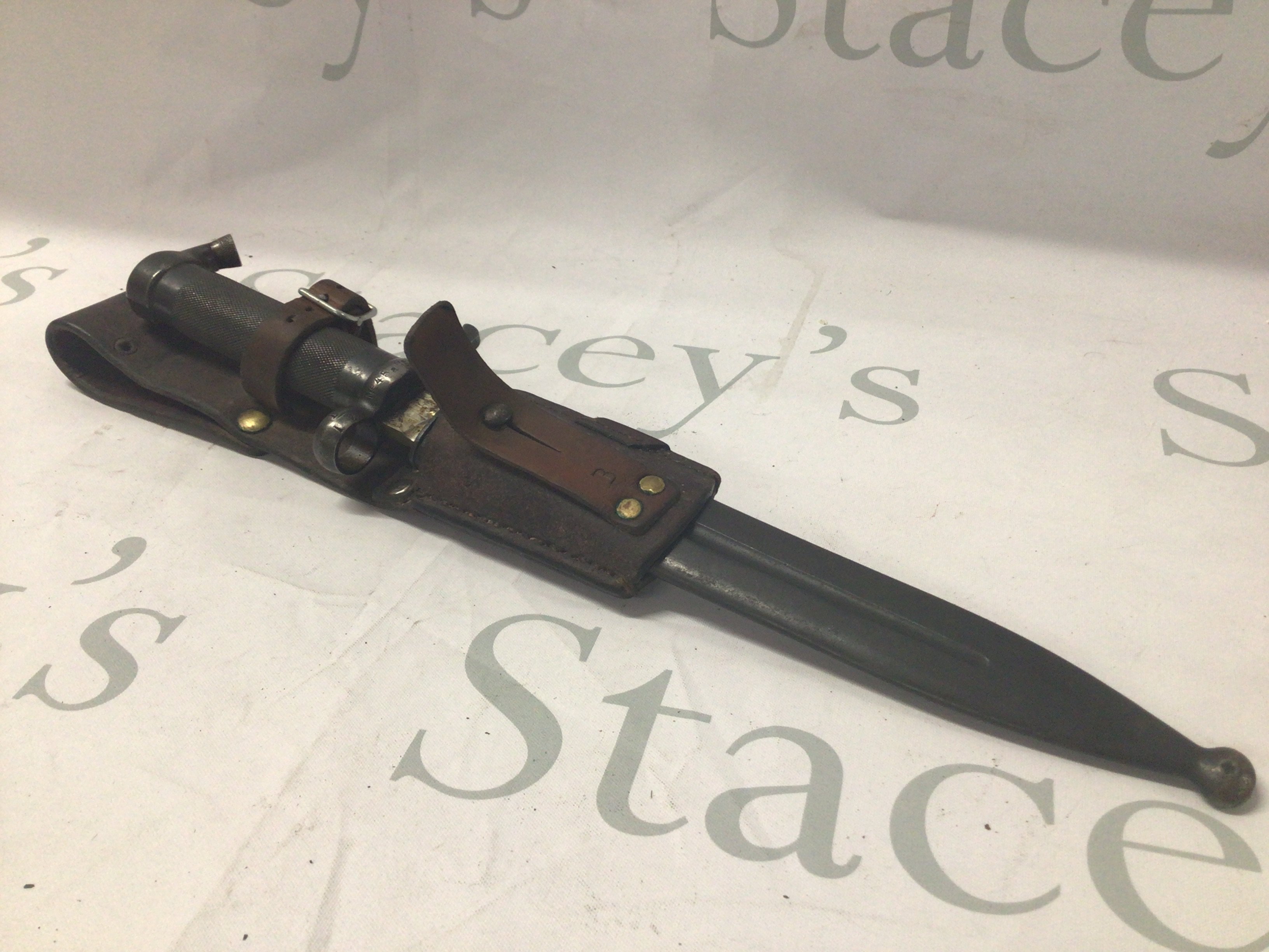A Very good example of a Swedish II world war M96 bayonet with full fitted leather frog the bayonet with stamp marks serial number etc.