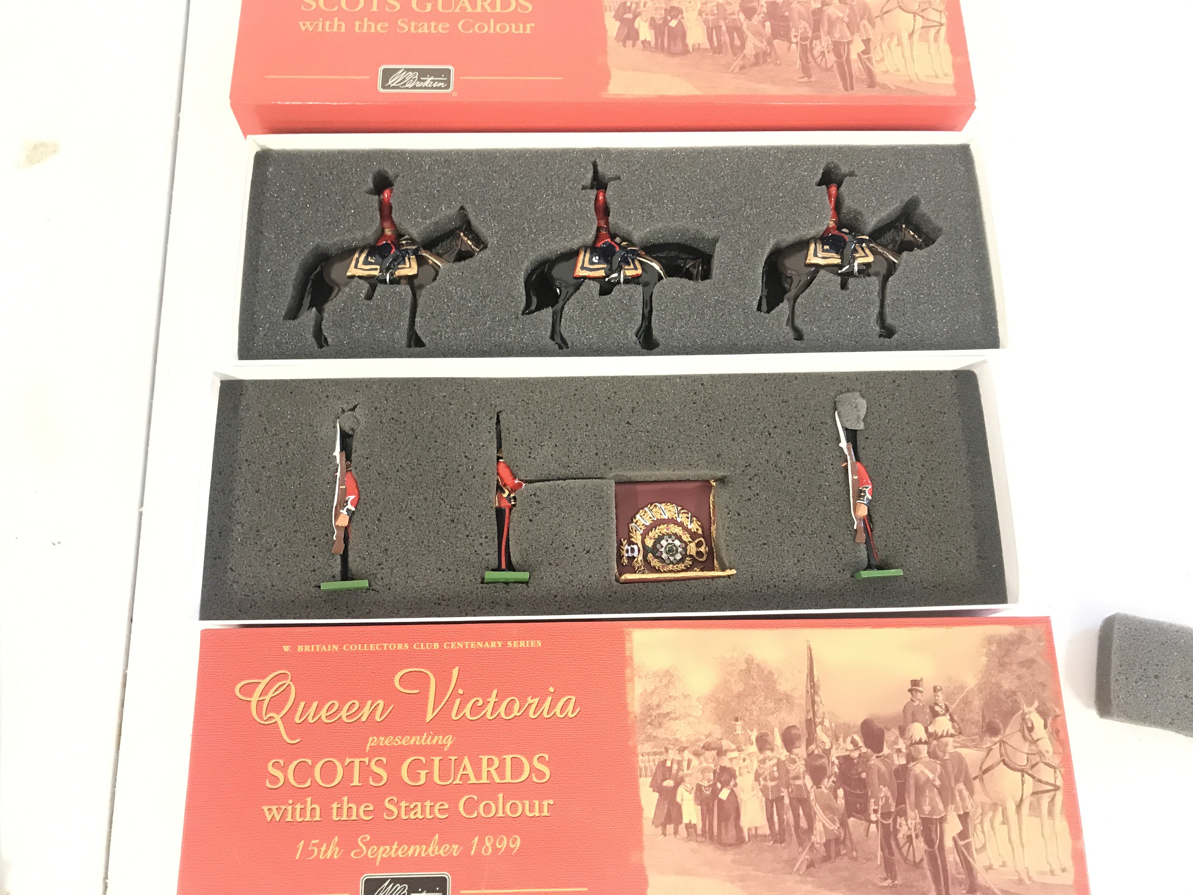 2 X Boxed Britains Sets, Scots Guards Colour Party With State Colour #5991 And Scots Guards Officers Of The General Staff #40209. (2).