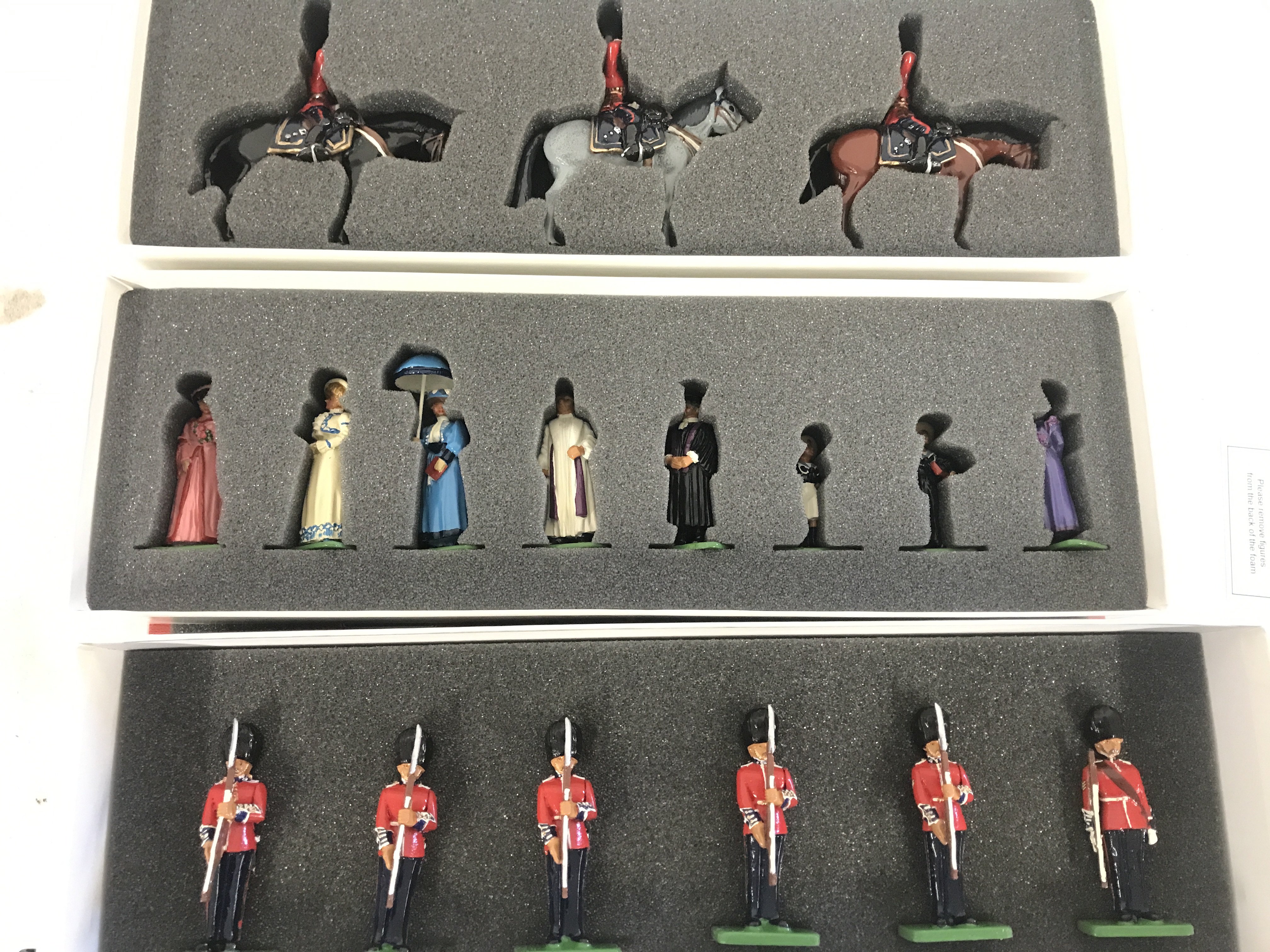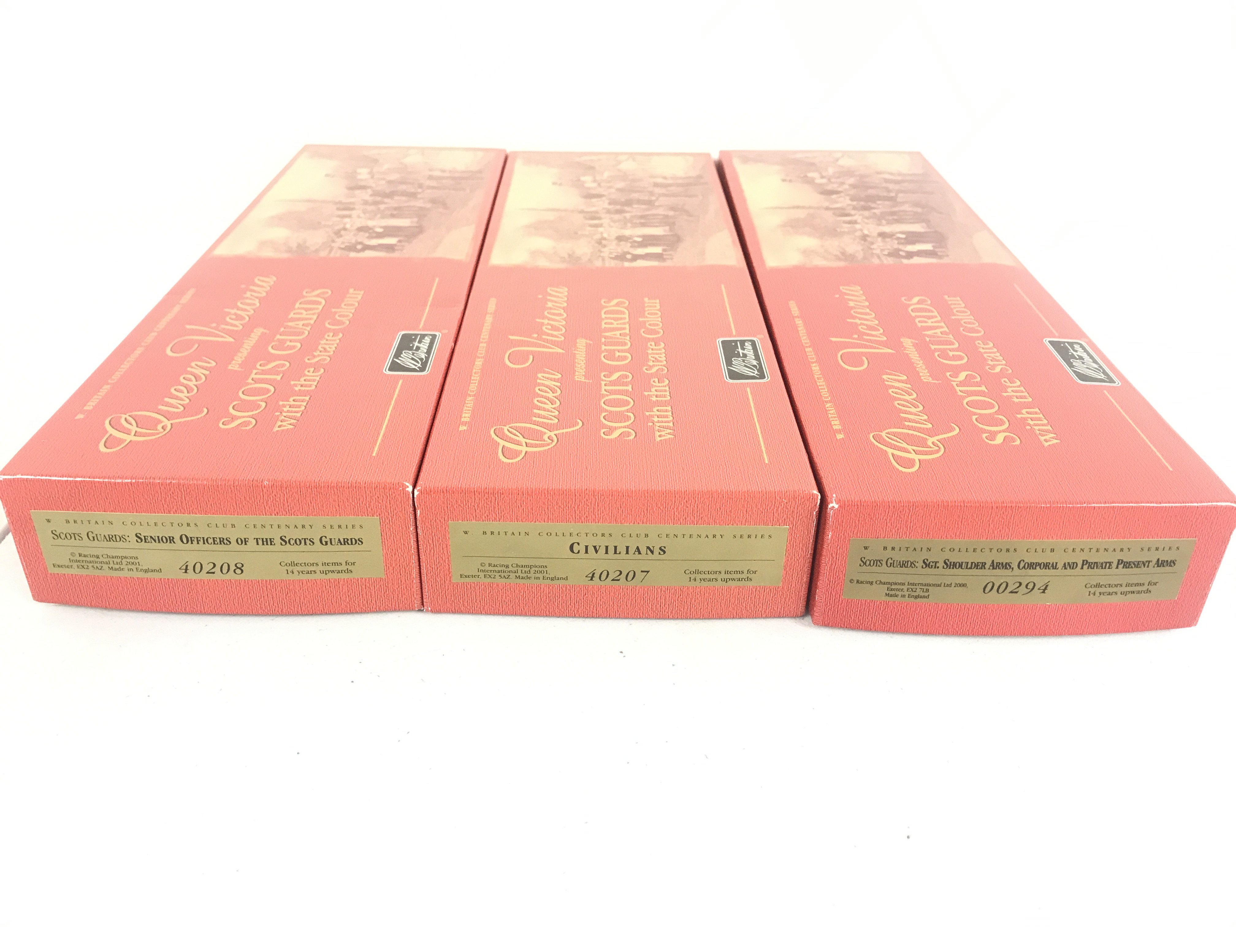 3 X Britains Sets Scots Guards Senior Officers Of Th Scots Guards #40208. Civilians #40207 And Scots Guards Sgt. Shoulder Arms. Corporal And Private Arms #00294.(3).