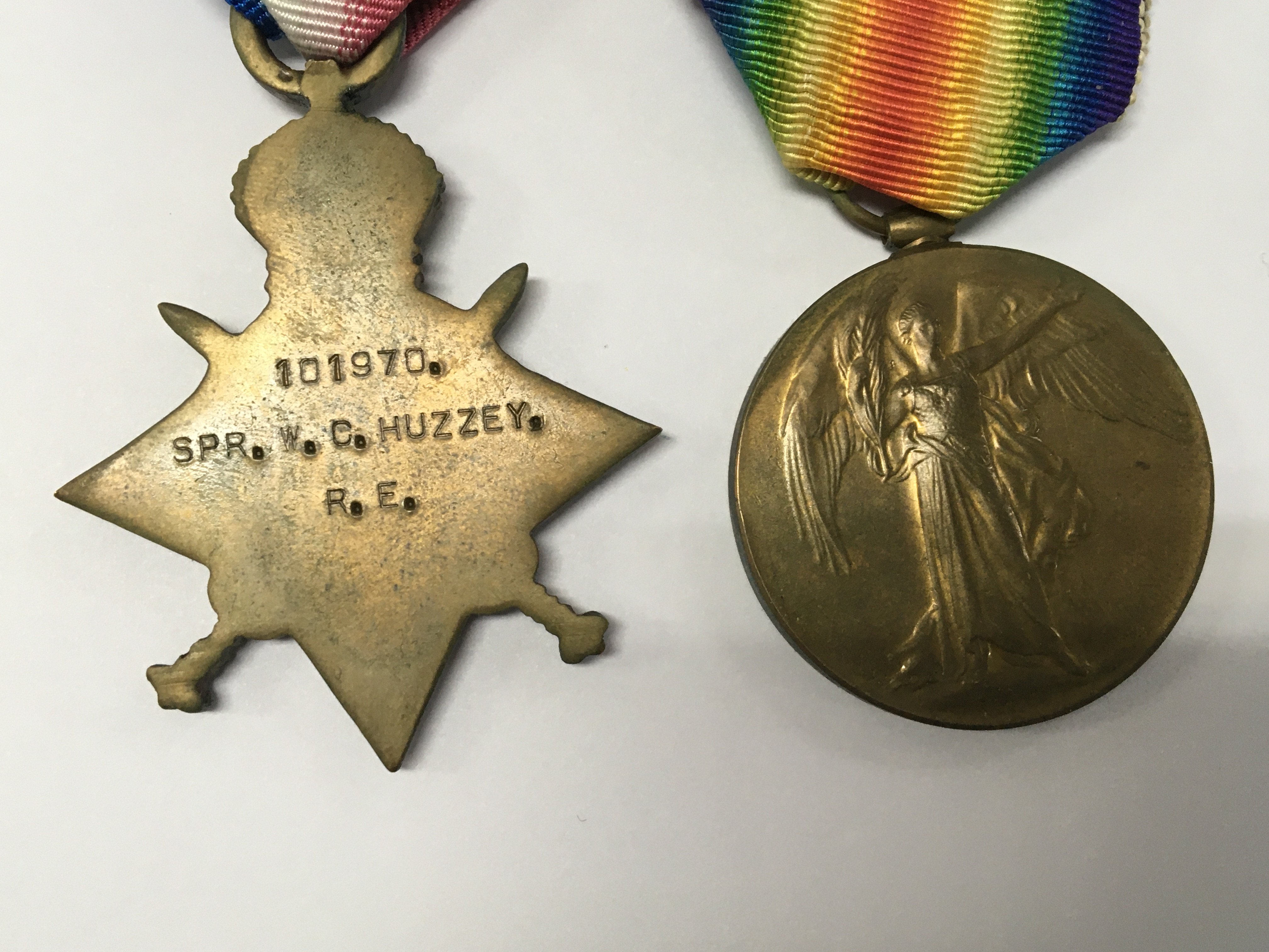 Two I world war medals 1914-15 star and one other 101970 SPR W.C Huzzey RE. (2)
