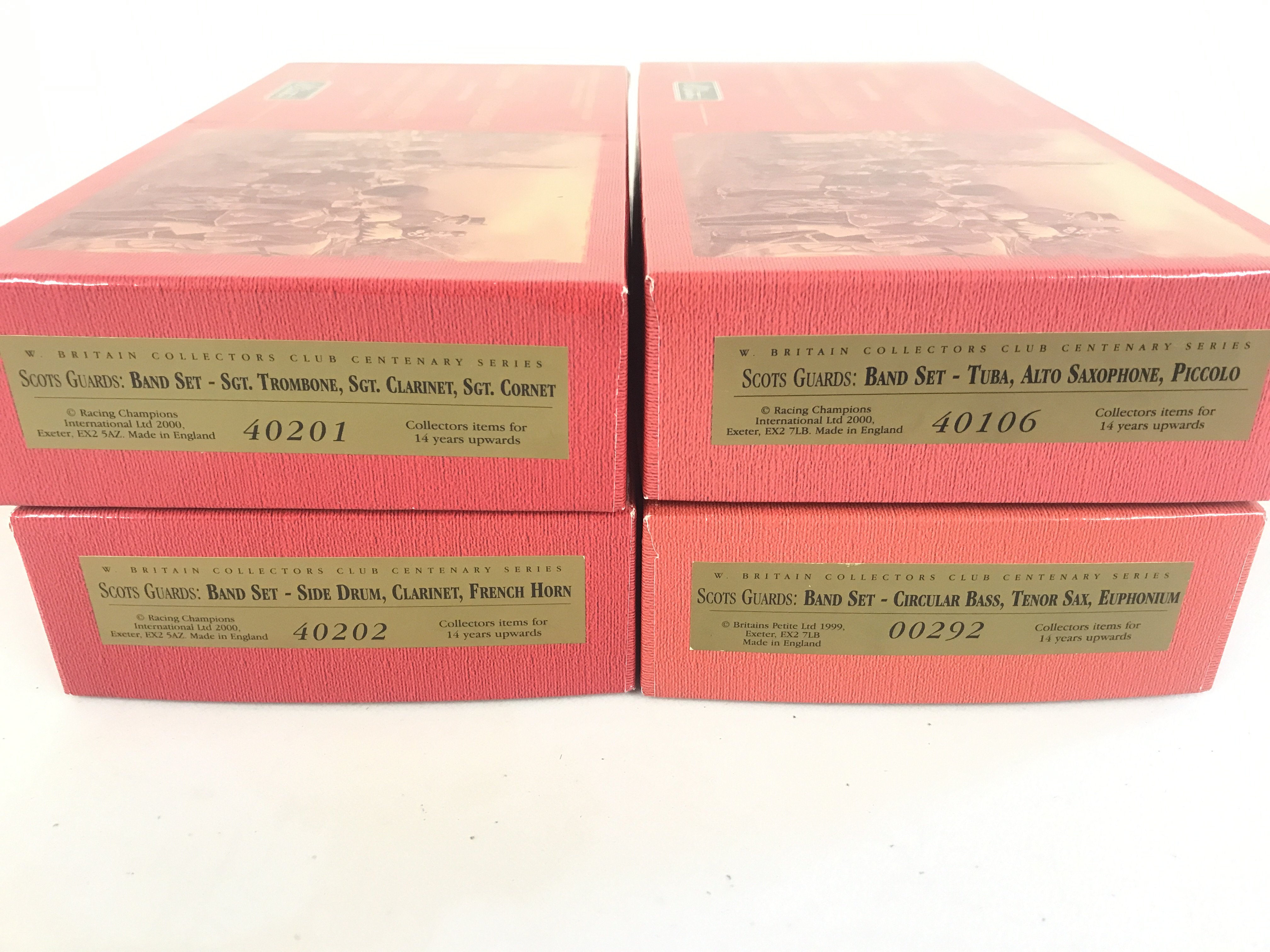 4 Boxed Britains Scots Guards Band Sets. #s 40201. 40106. 40202. 00292. (4).