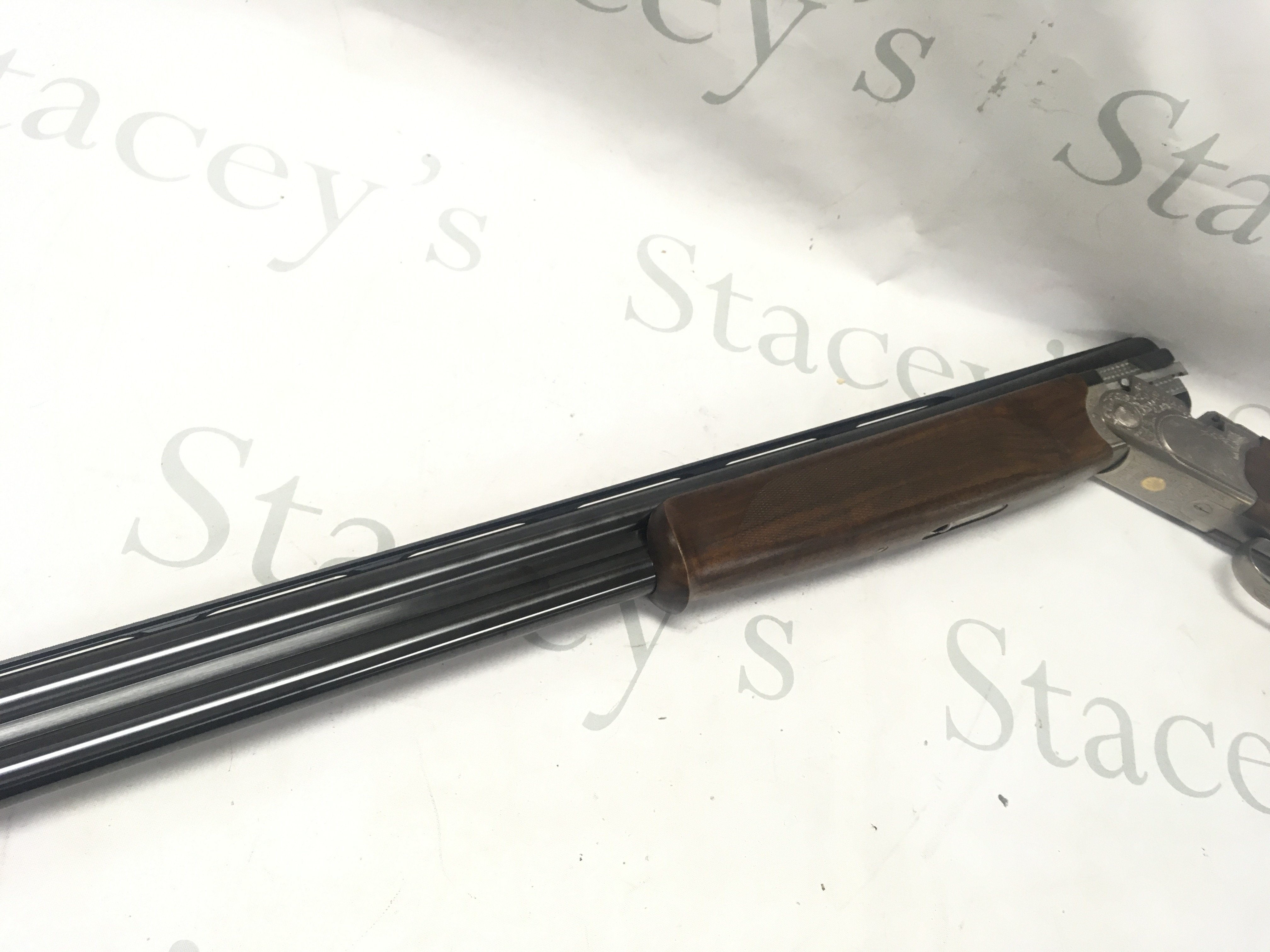Beretta 687 silver pigeon grade 3 over under 12g shotgun. Multi choke with additional chokes in original hard case. Approximately 30 inch barrel. Serial R020675 PLEASE NOTE THAT A SHOTGUN LICENSE IS REQUIRED TO PURCHASE THIS ITEM. COLLECTION AND VIEWING BY APPOINTMENT ONLY.