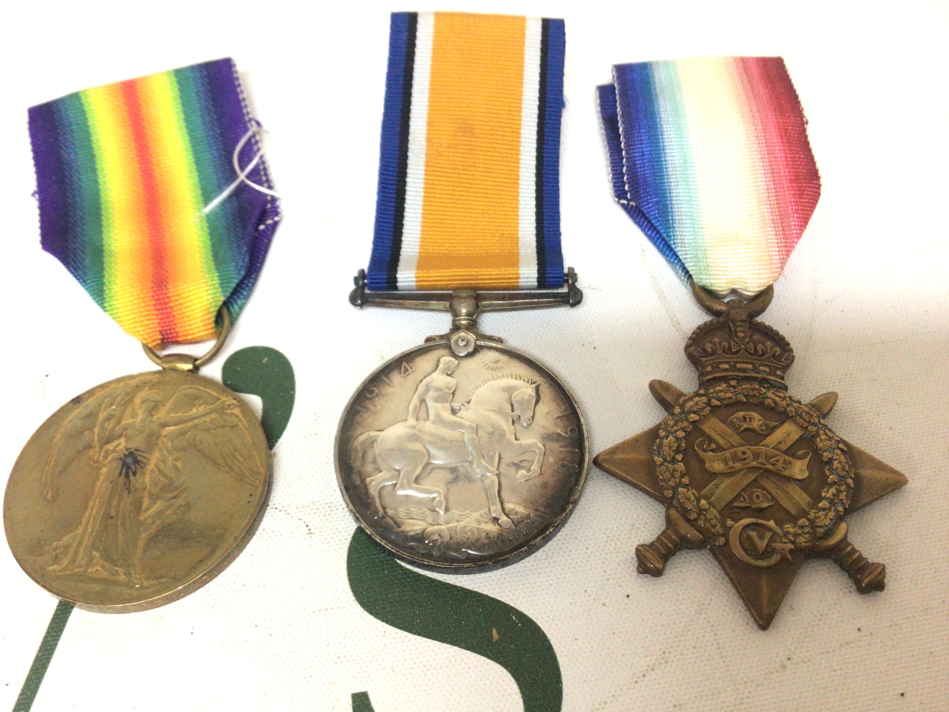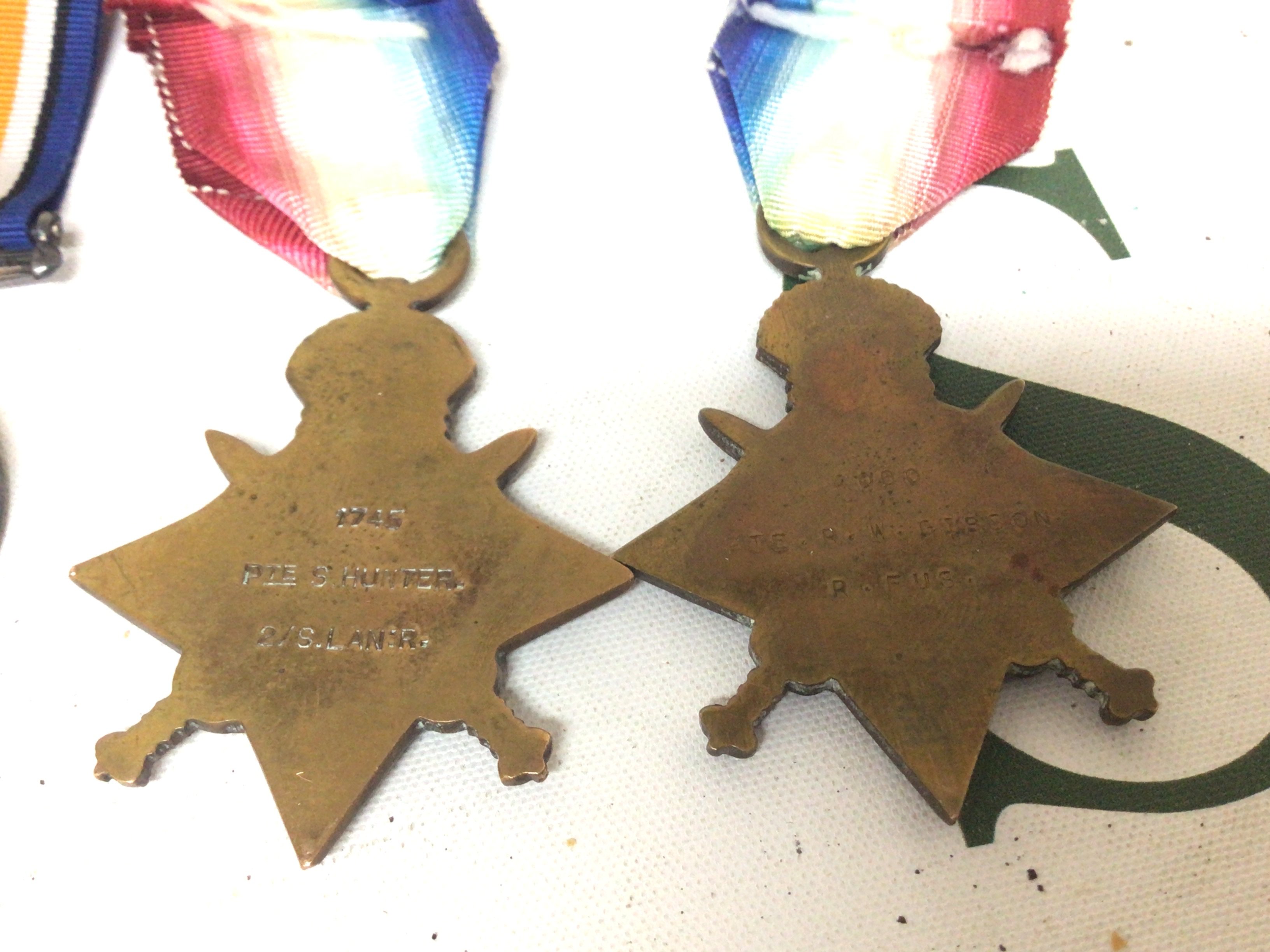 A Group of three I world war medals awarded to 4060 PTE R W Gibson R Fus. and a 1914 star awarded to 1745 Pte S Hunter 2/s LanR. (4)