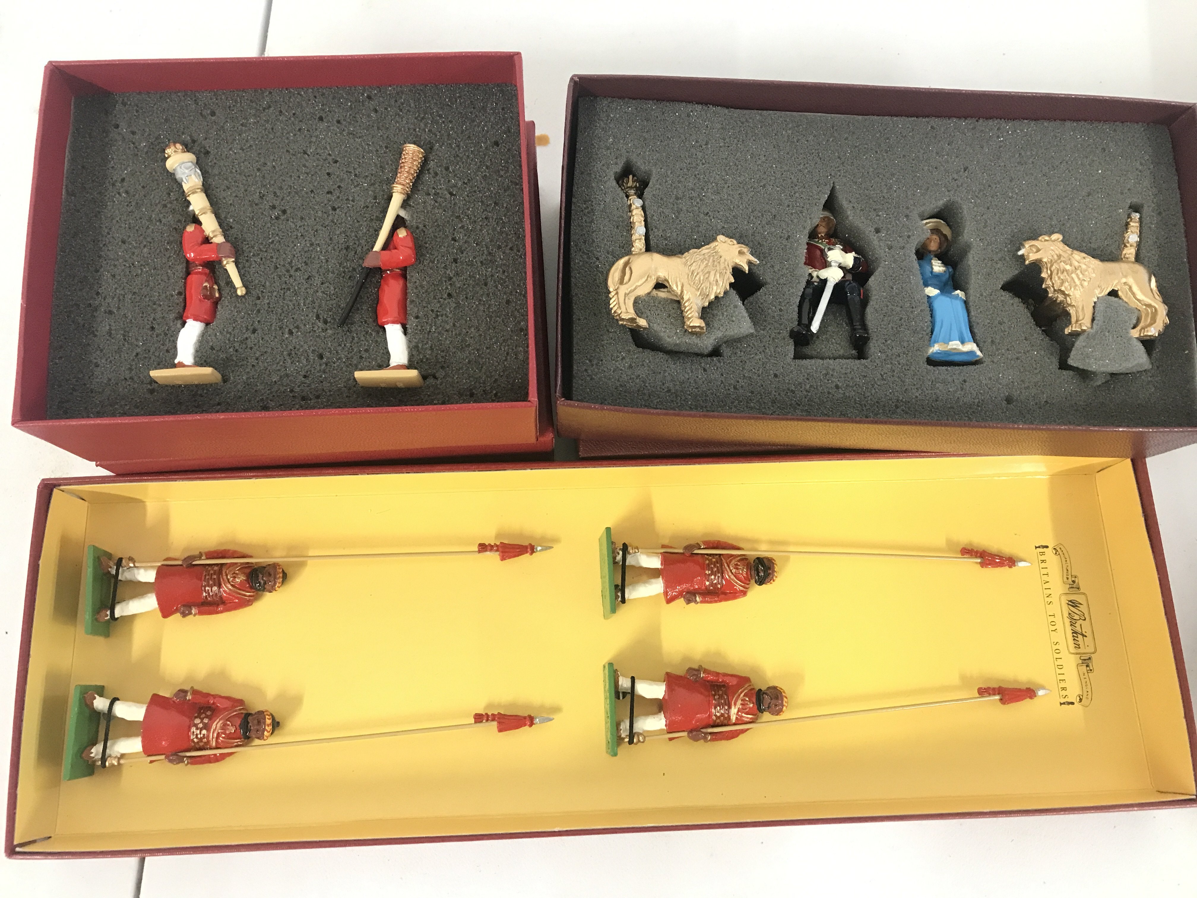 3 Boxed Britains Sets. Mace Bearers #00132. Lord And Lady Curzon #00264 And Ceremonial Guard For The State Elephants #08956.