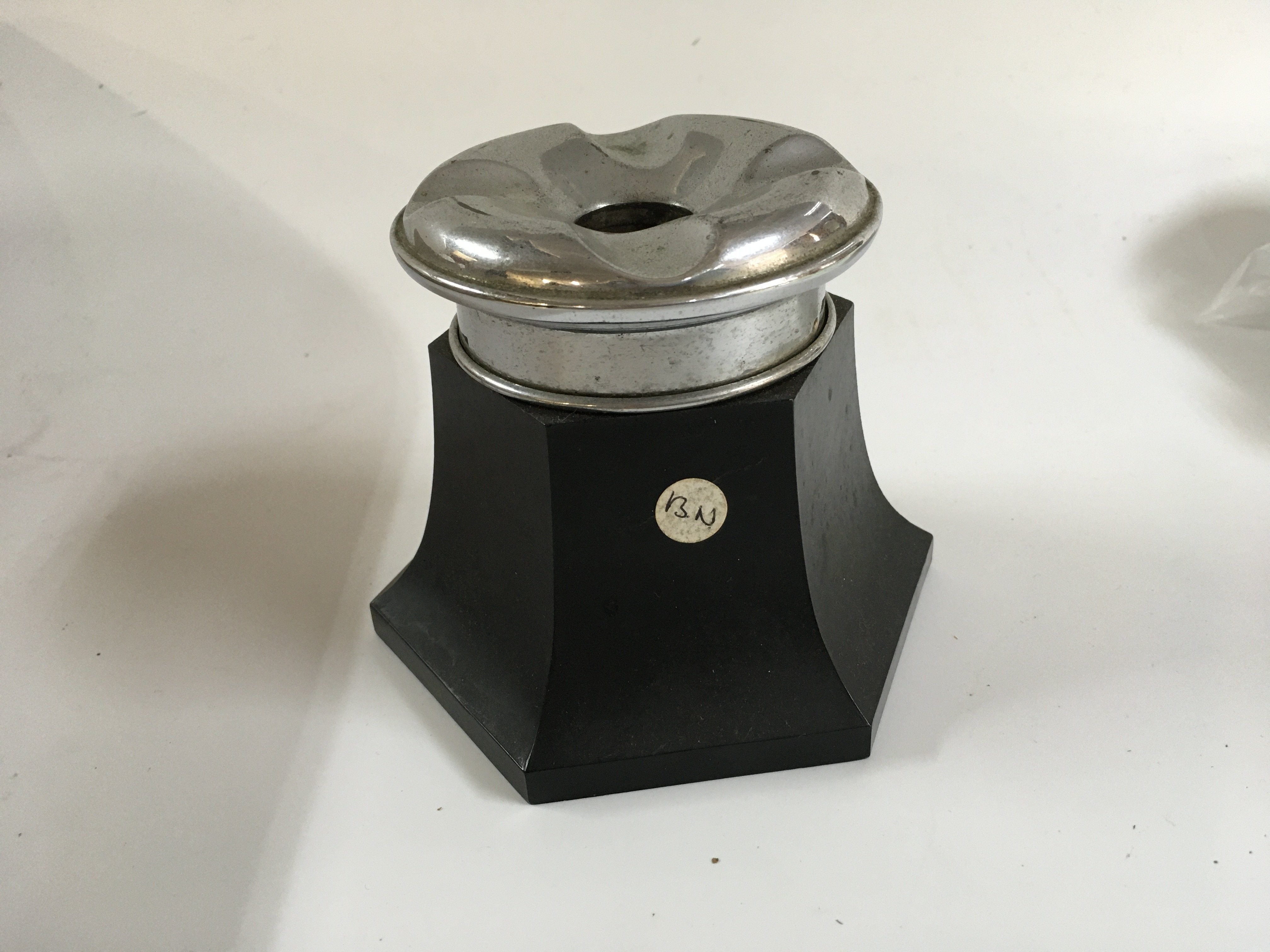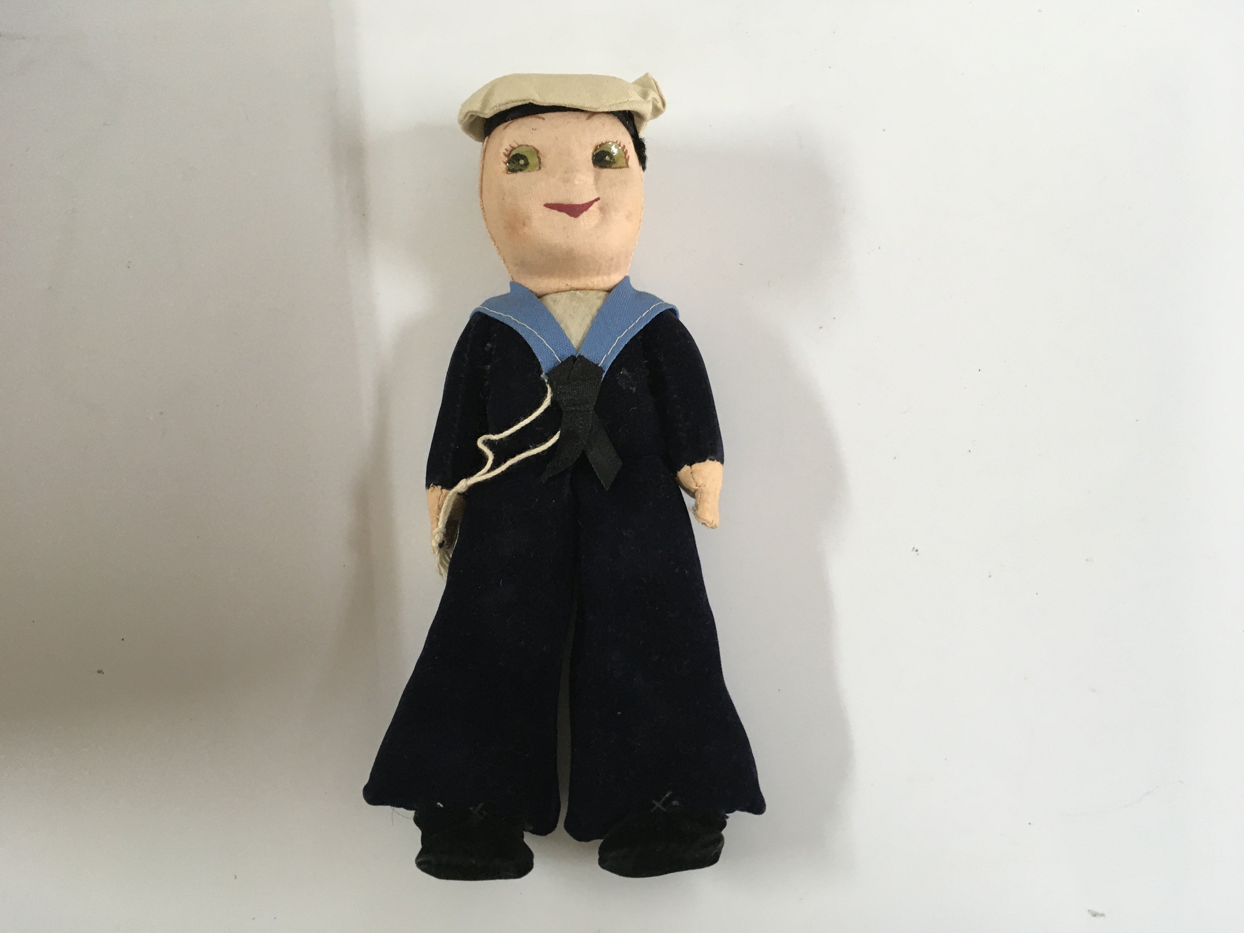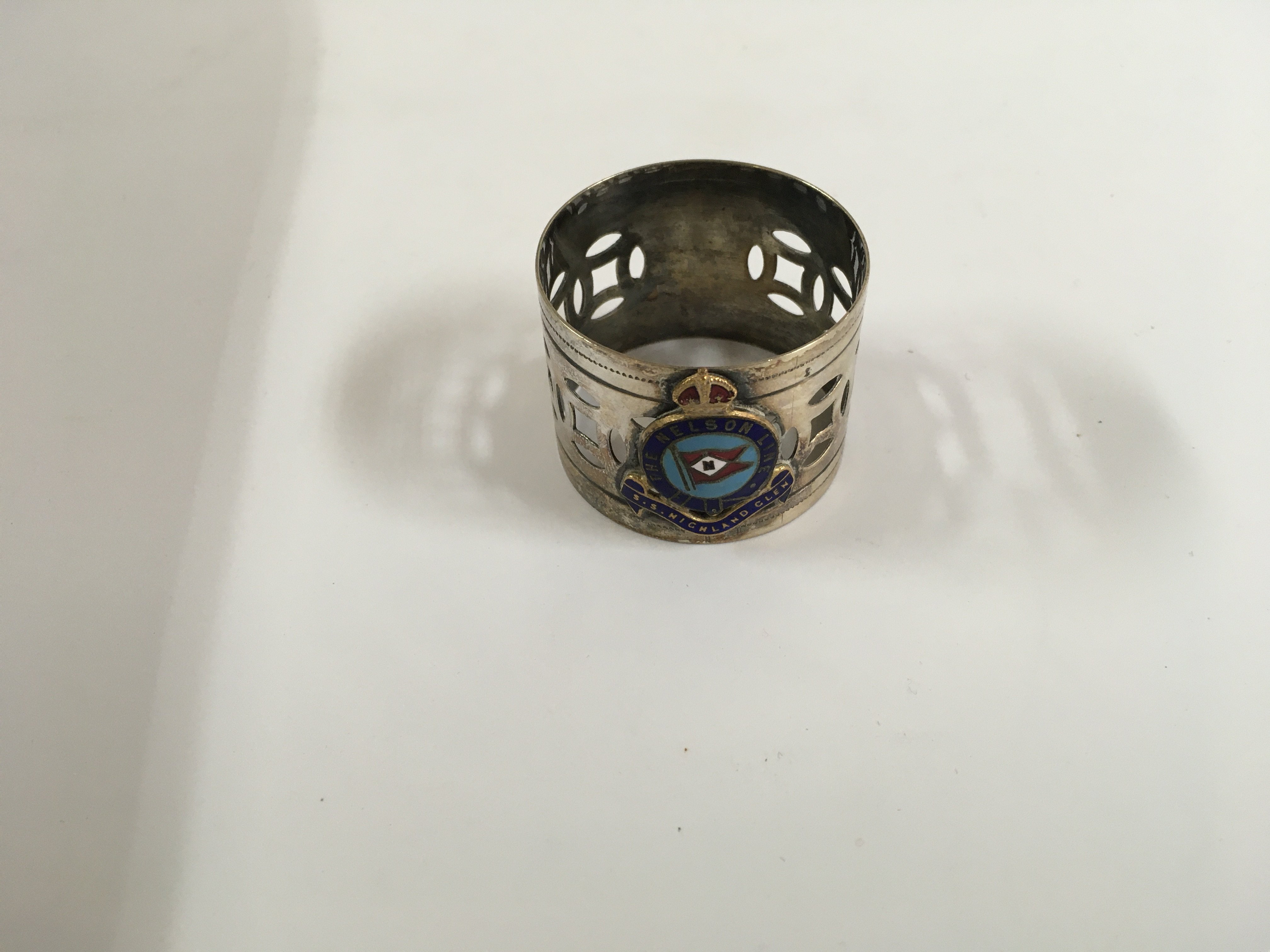 A collection of miscellaneous great liners items consisting of an as used on board ashtray from SS Cavina from the elders and fyffes line, Wedgewood souvenir from the vessel the royal yacht Britannia, posted envelope from the RMS Polaris dated 1908, sailor doll souvenir from the vessel the SS Ithaca, silver coloured napkin ring from the Nelson line vessel the SS Highland Glen and silver plated dining table salt & pepper pot from the Aberdeen & commonwealth line vessel the Diogenes