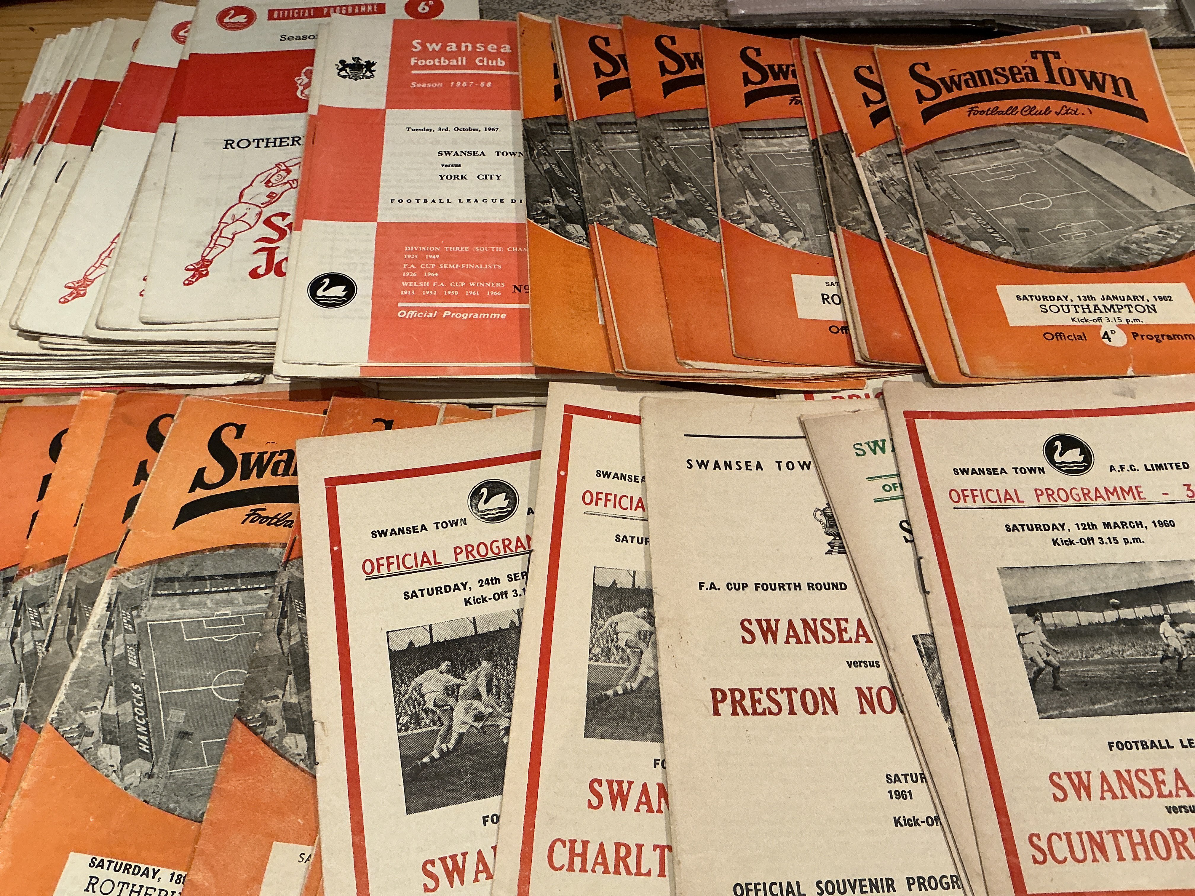 1960s Swansea Town Home Football Programmes: All before the city status of 1969. A few from the late 50s then around 110 spanning the 60s decade. Mainly very good with instructions to sell. (110+)