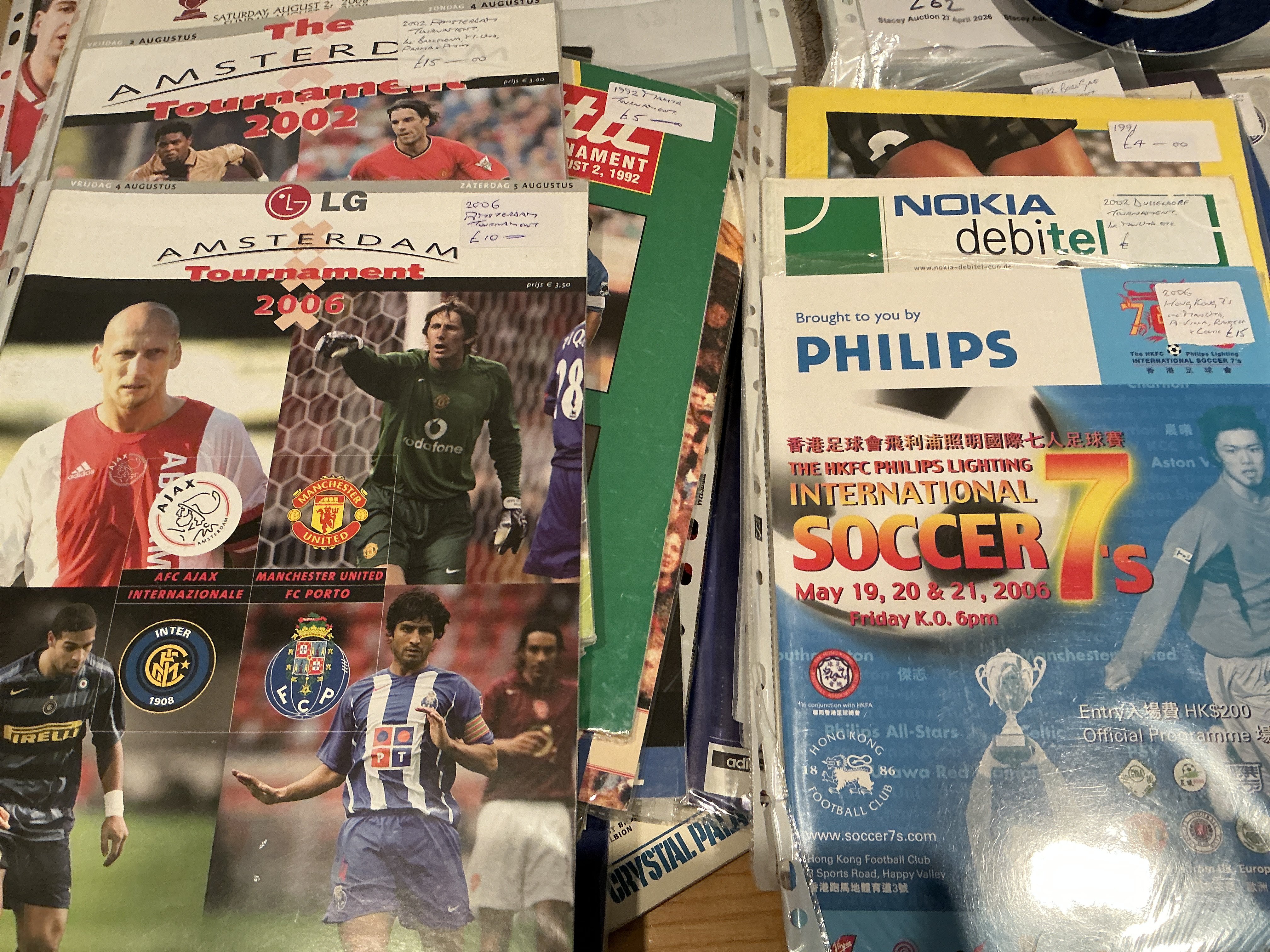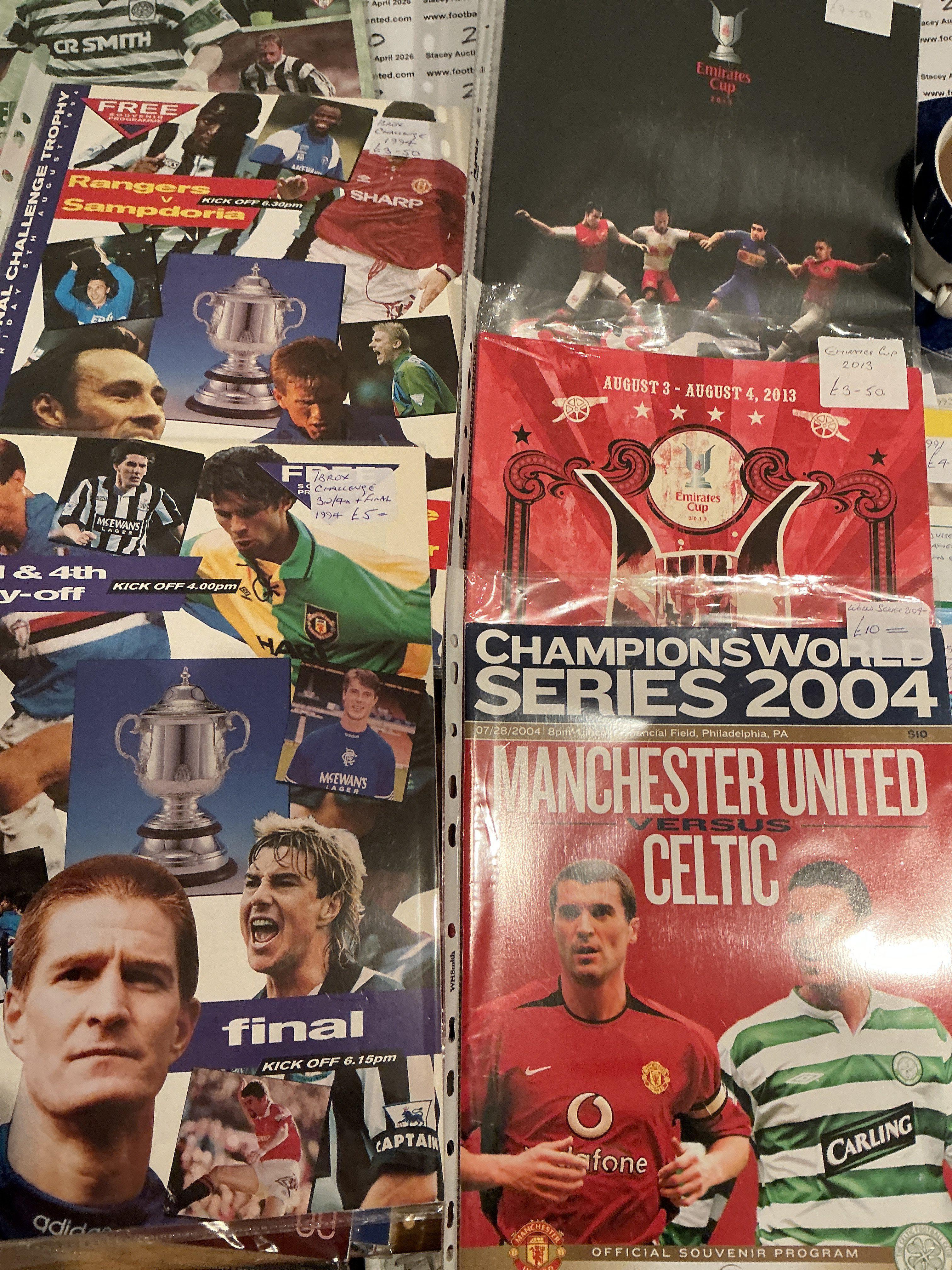 Tournament Football Programmes: Must view nearly all featuring British clubs with matches played in Dubai Germany Switzerland Holland Belgium USA and many more countries. Involves Manchester United Man City West Ham Arsenal Celtic Rangers and many more often pre season. Excellent with instructions to sell. (89)